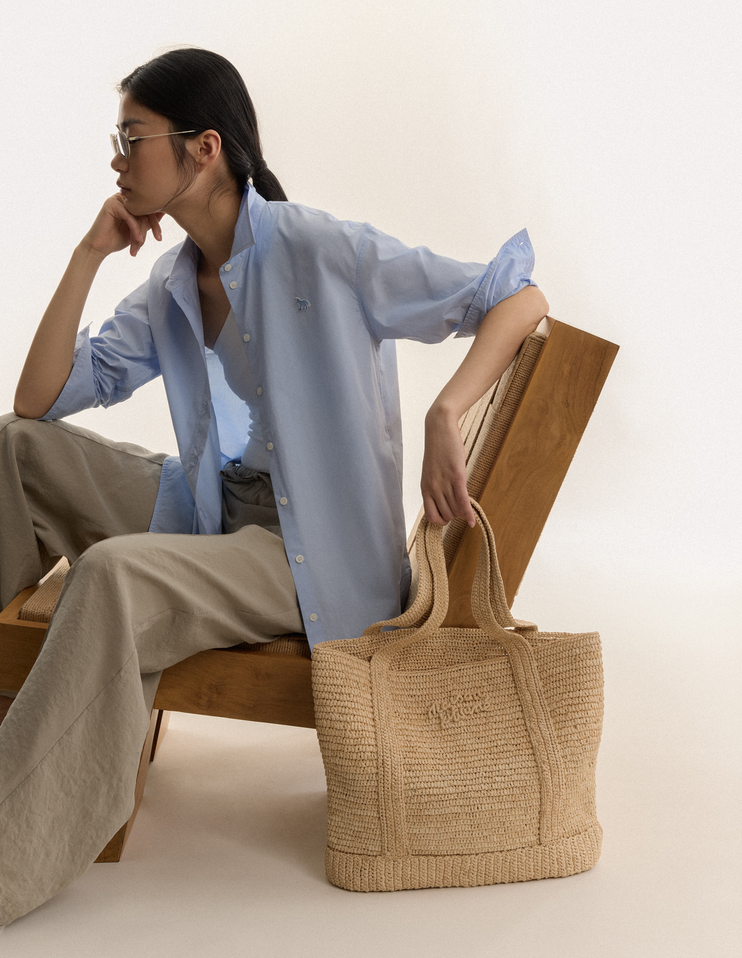 Chemise en popeline de coton. Coupe casual avec patch brodé Baby Fox brodé sur la poitrine.