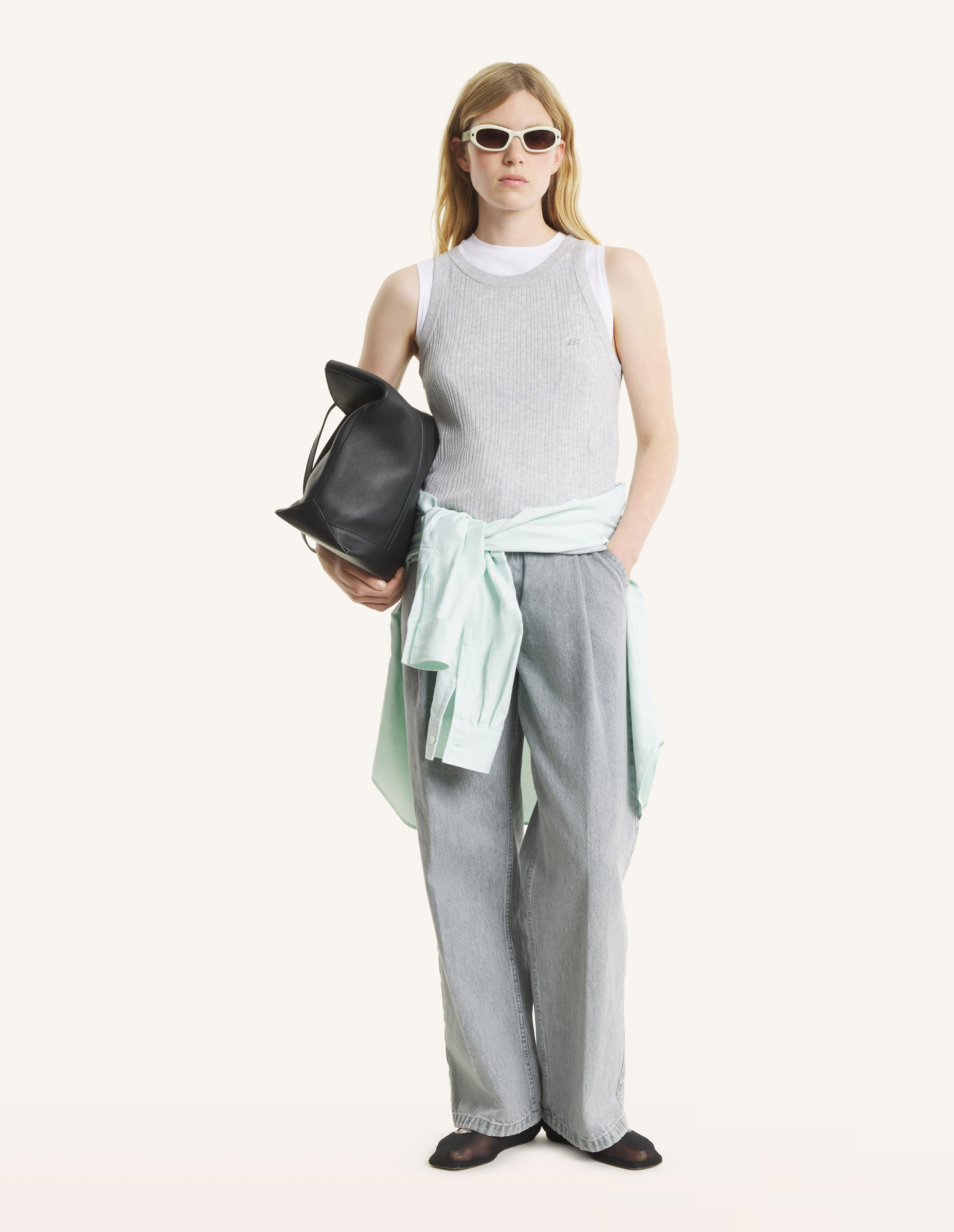 • Débardeur en coton mélangé à côtes fines
