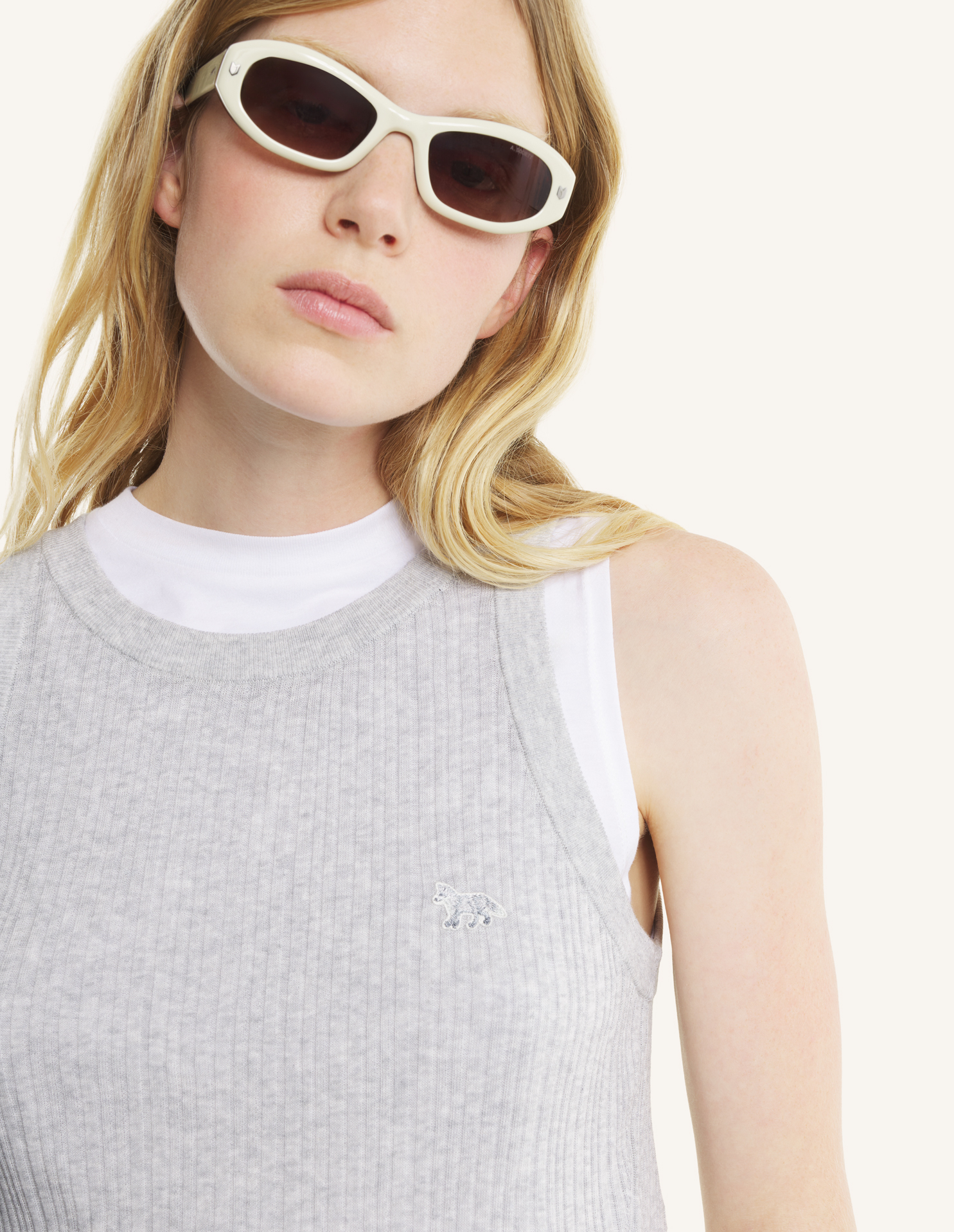 Débardeur en maille à côtes fines en coton mélangé. Coupe ajustée avec patch brodé Baby Fox sur la poitrine.