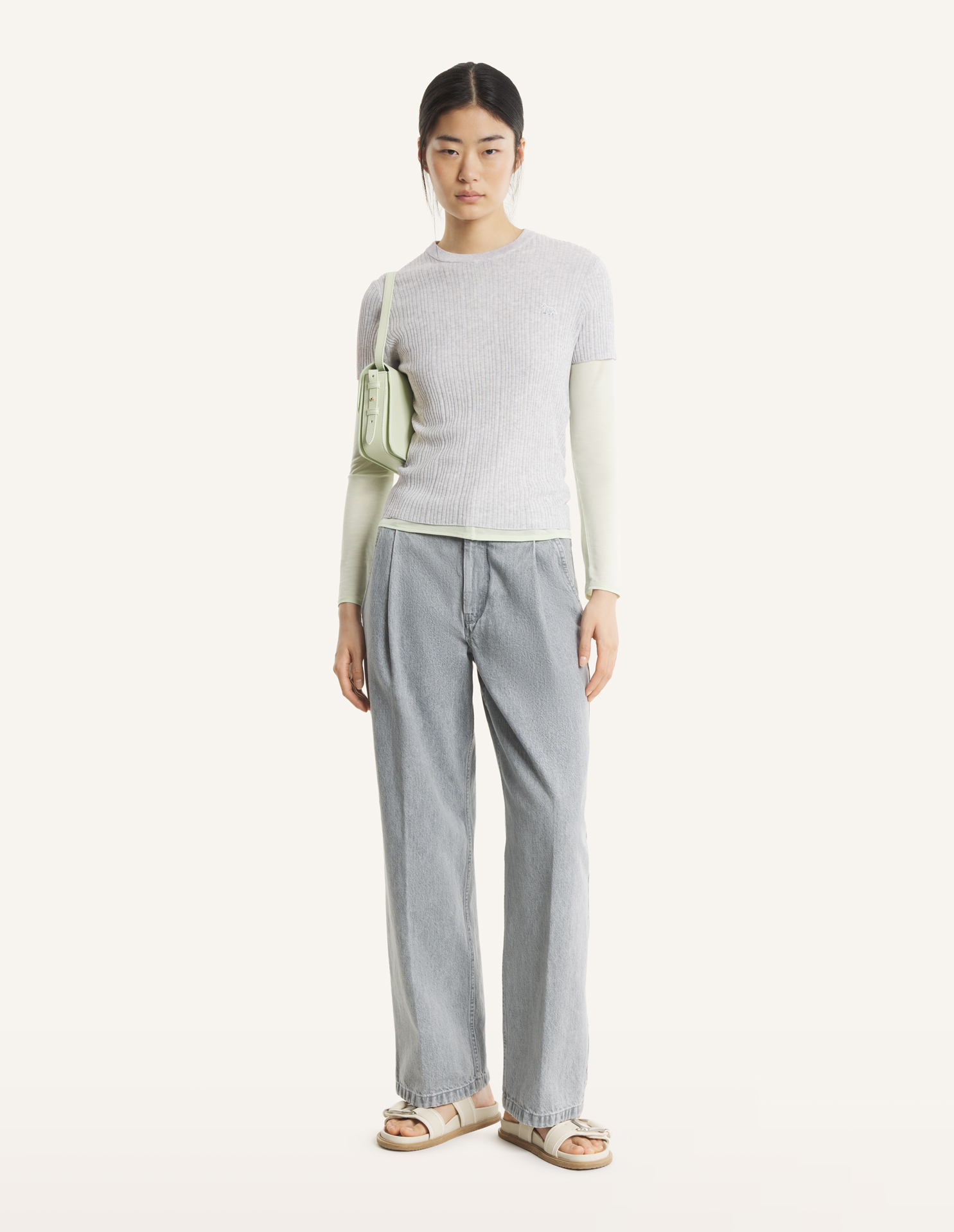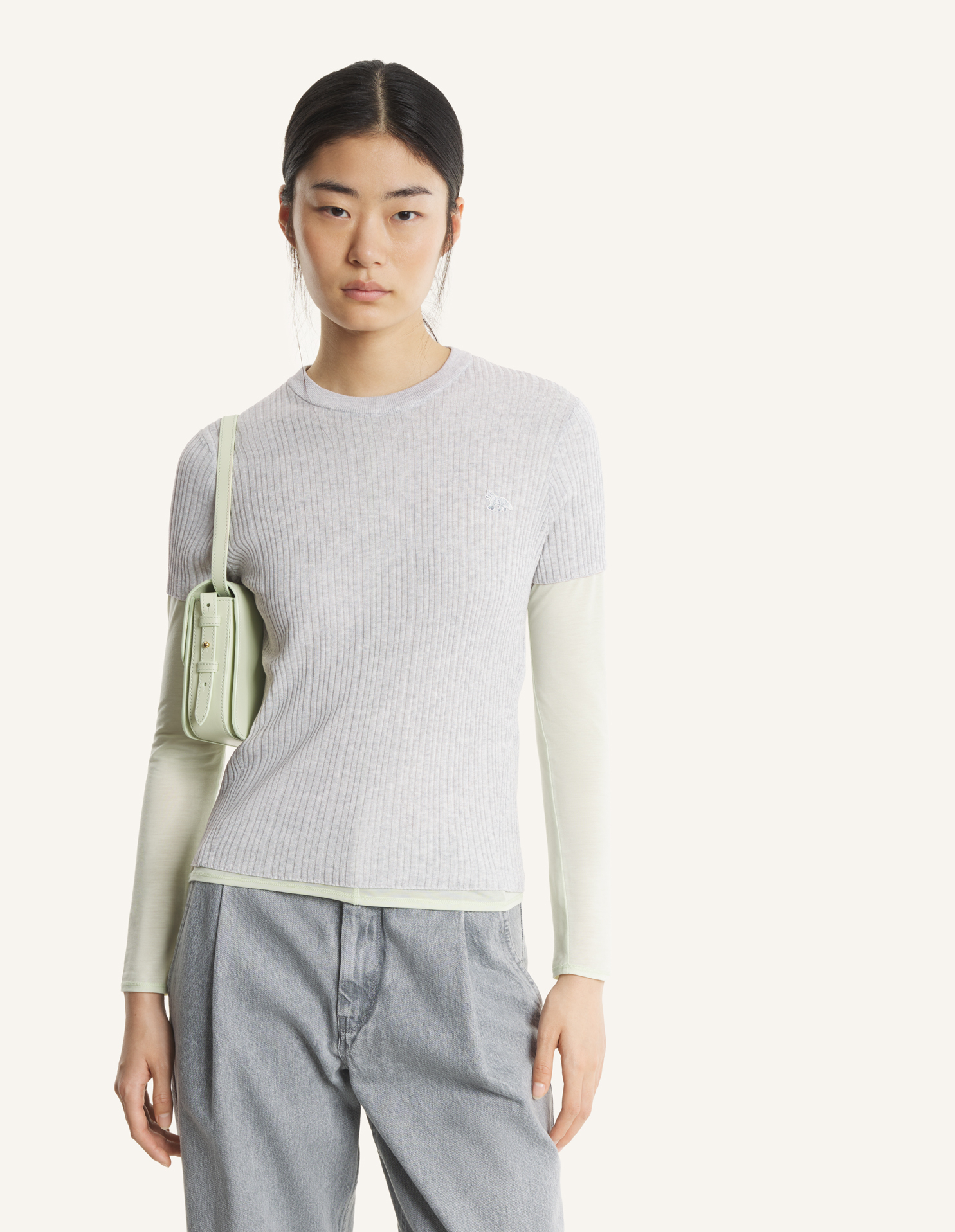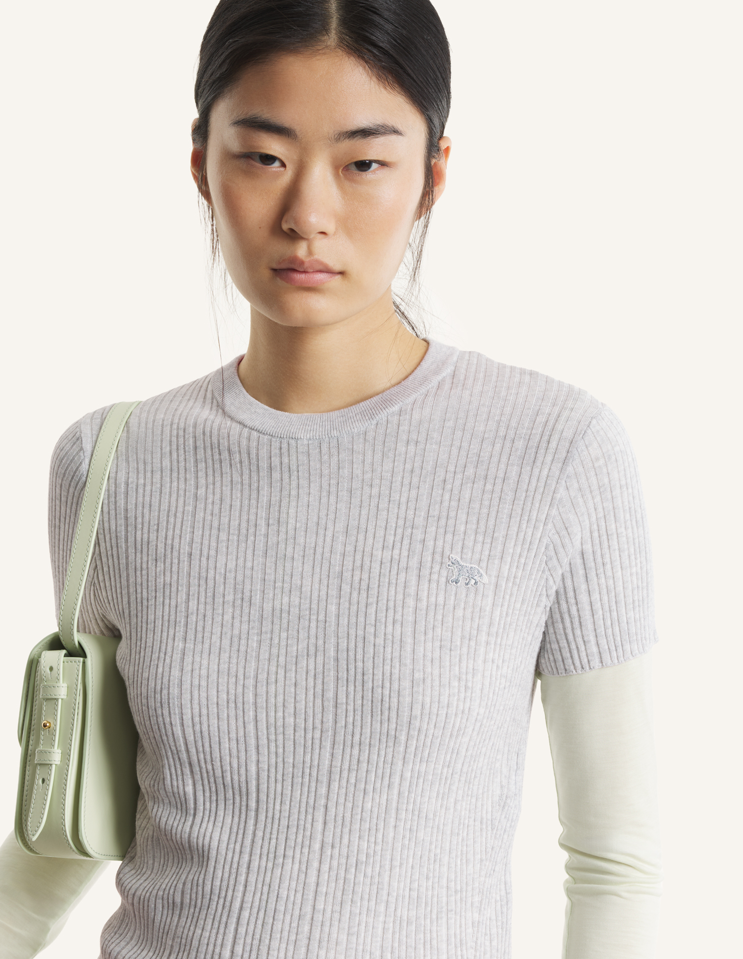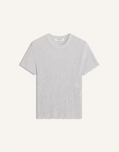 Tee-shirt en maille côtes fines en coton mélangé. Coupe ajustée avec patch brodé Baby Fox sur la poitrine.
