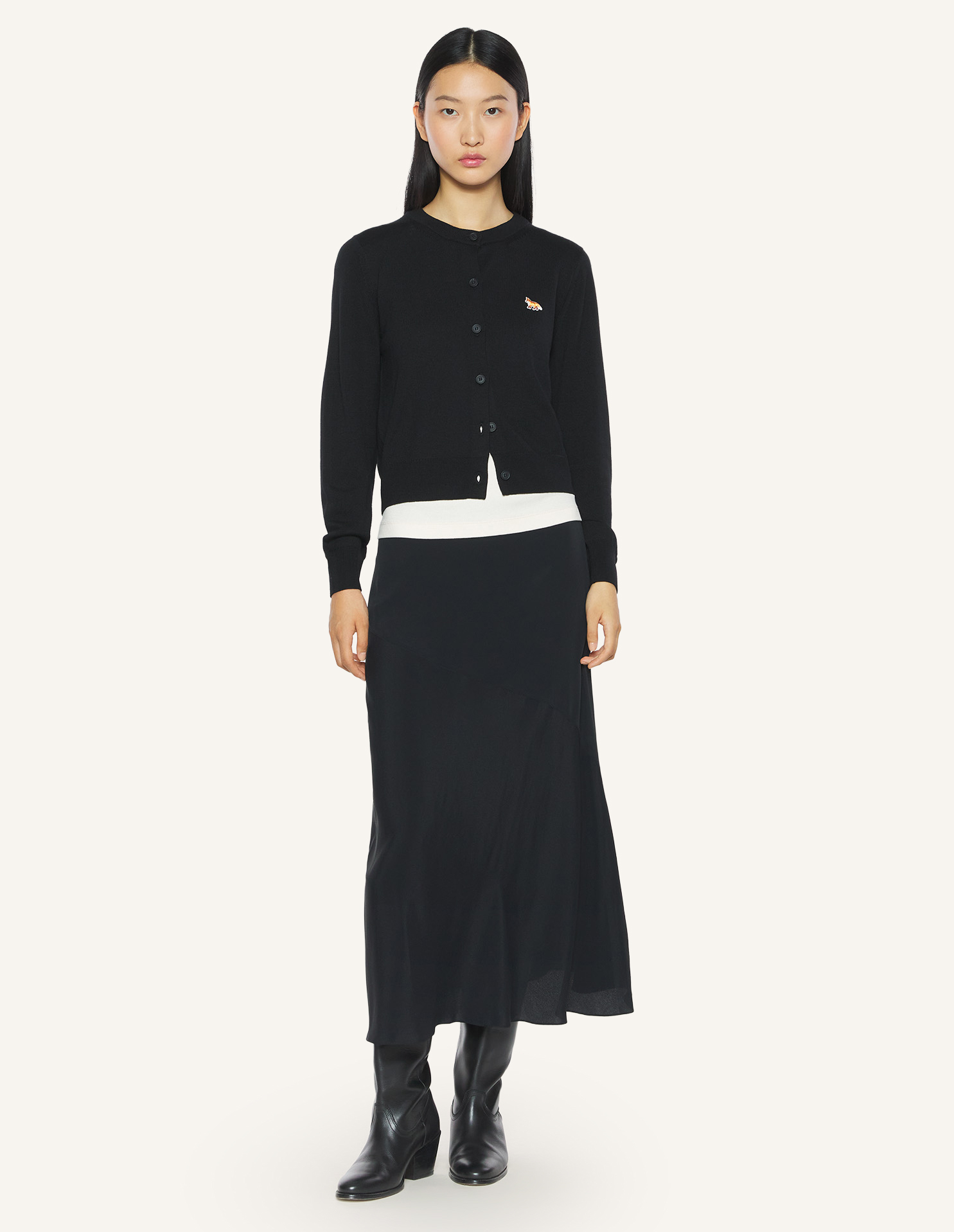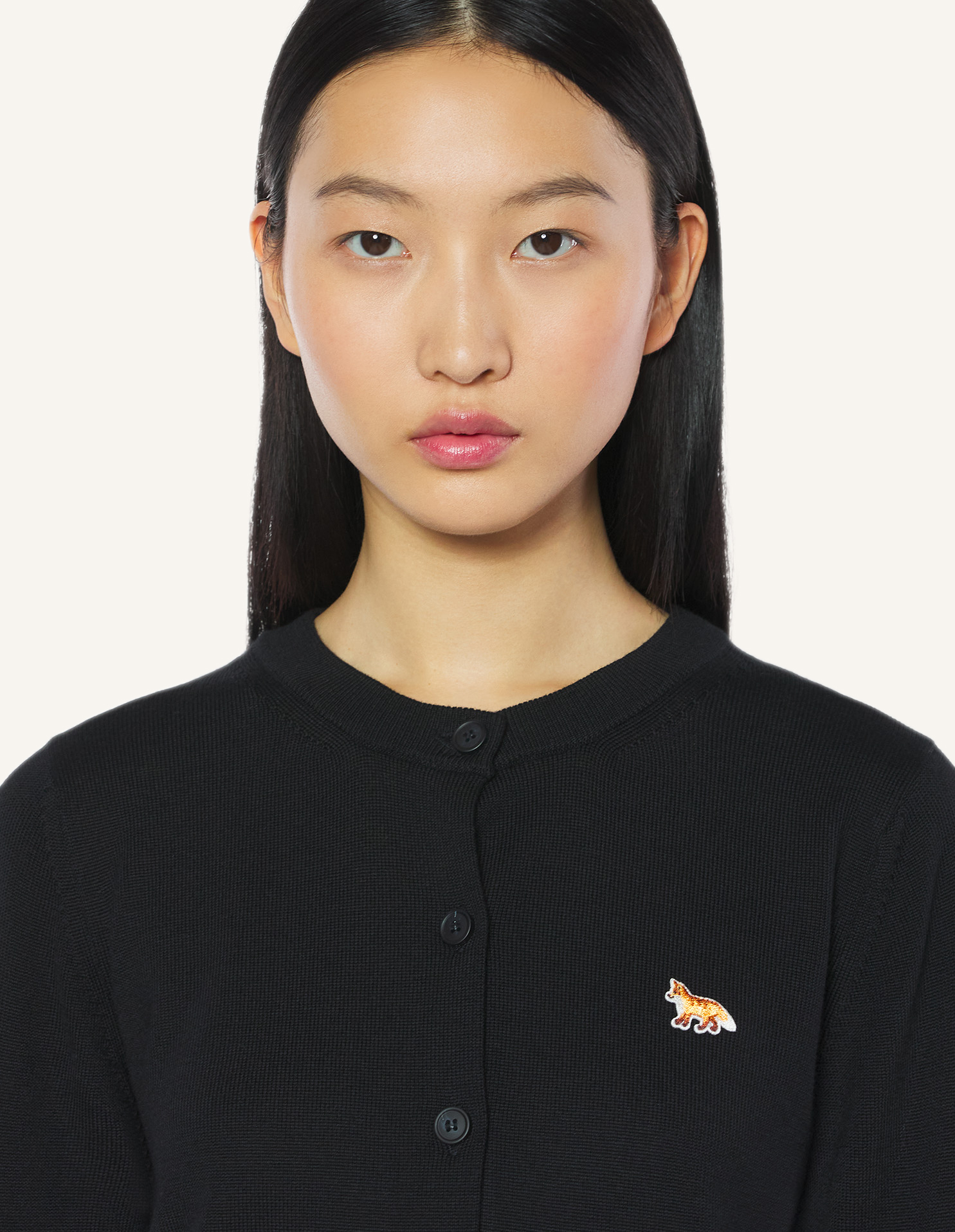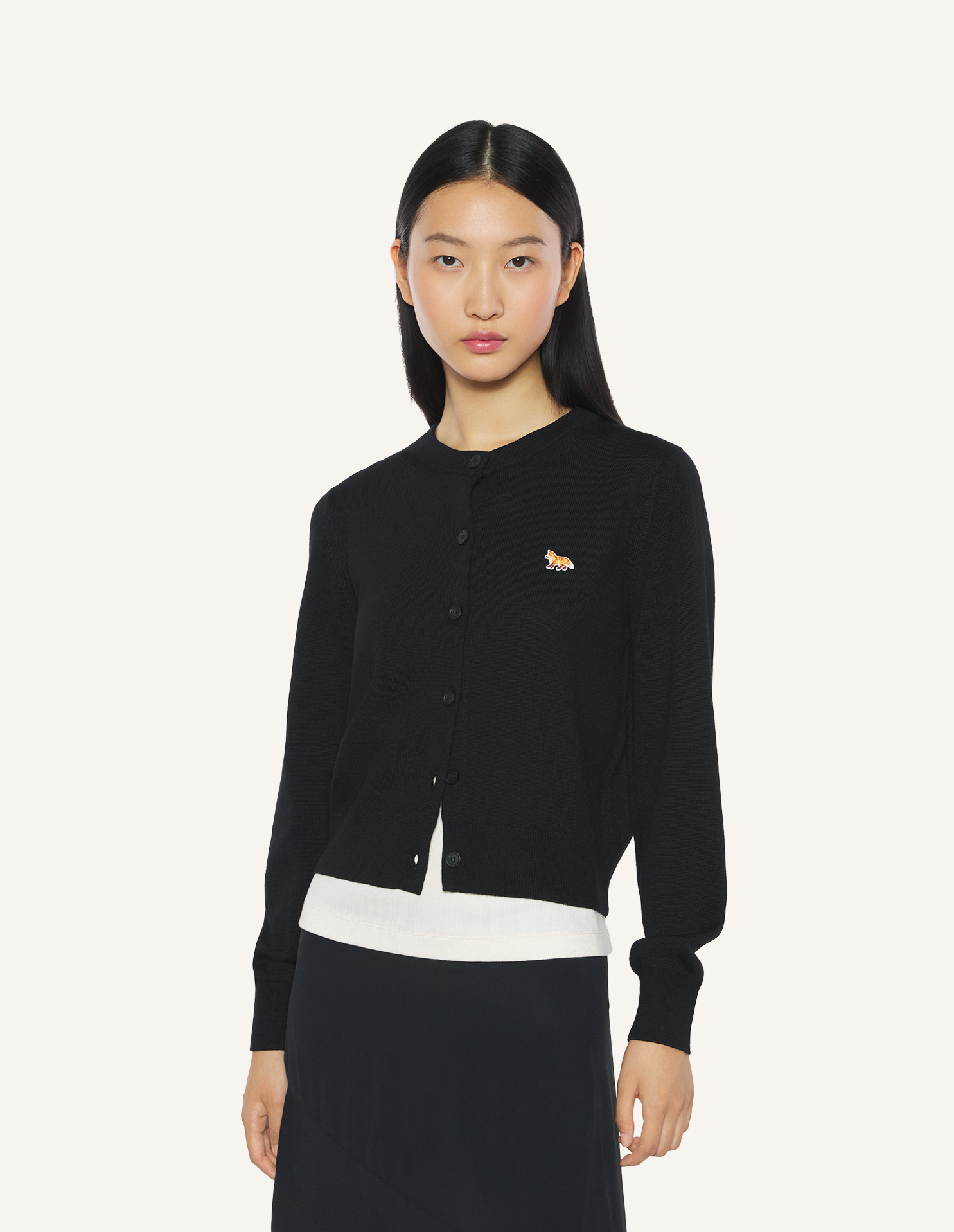 Cardigan en laine mérinos. Coupe regular avec patch brodé Baby Fox sur la poitrine.