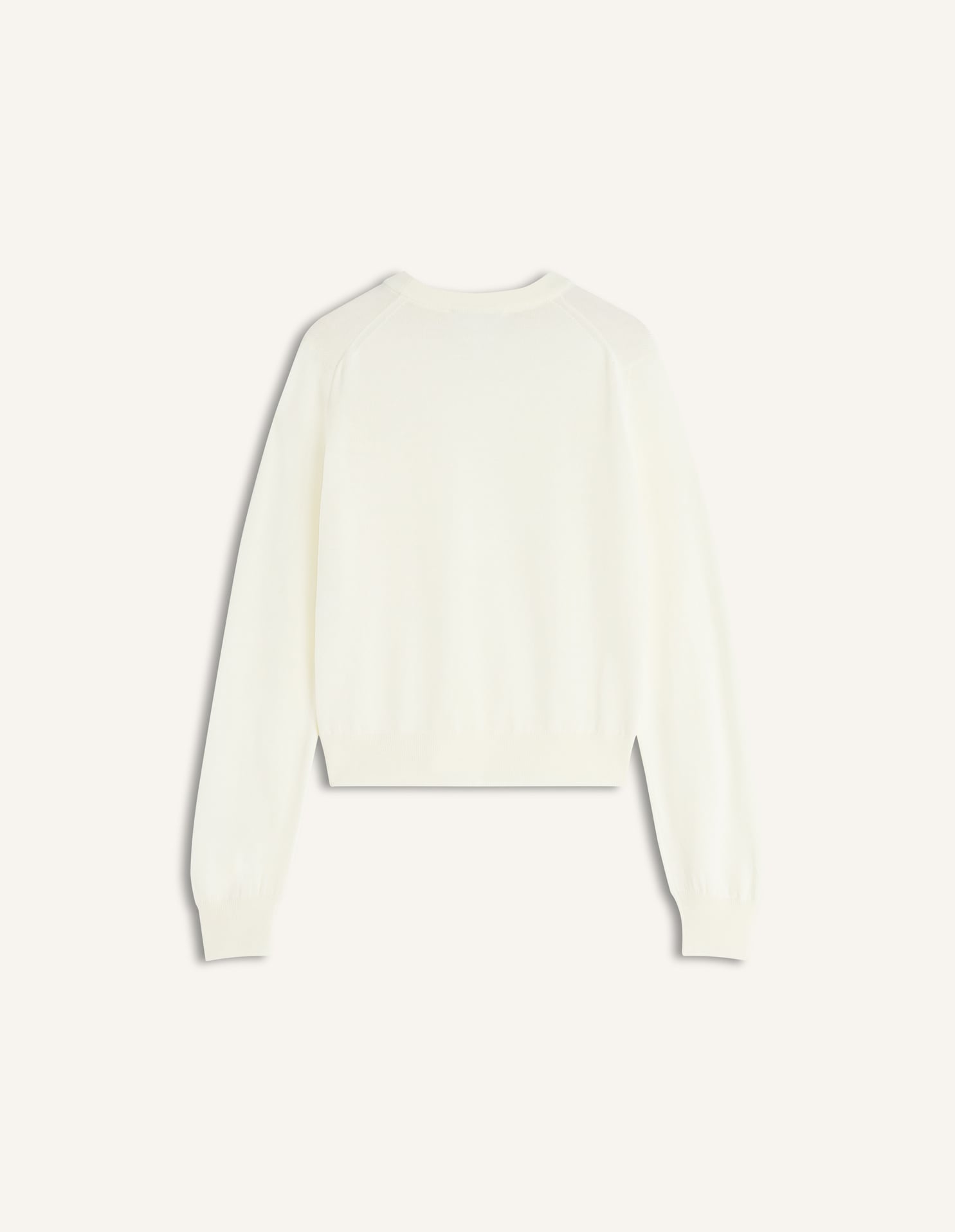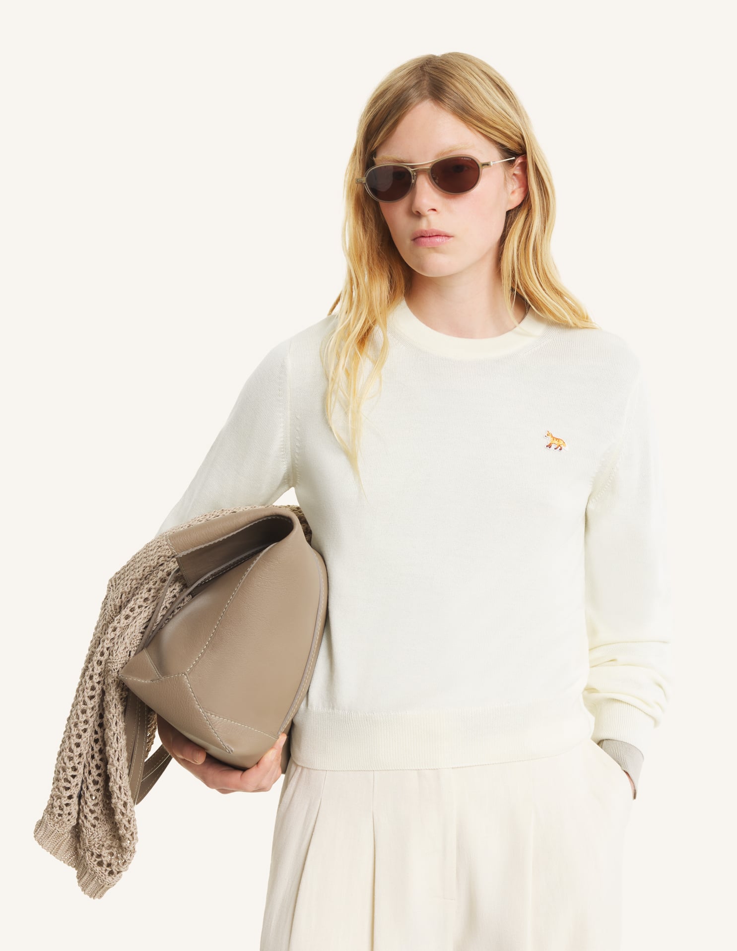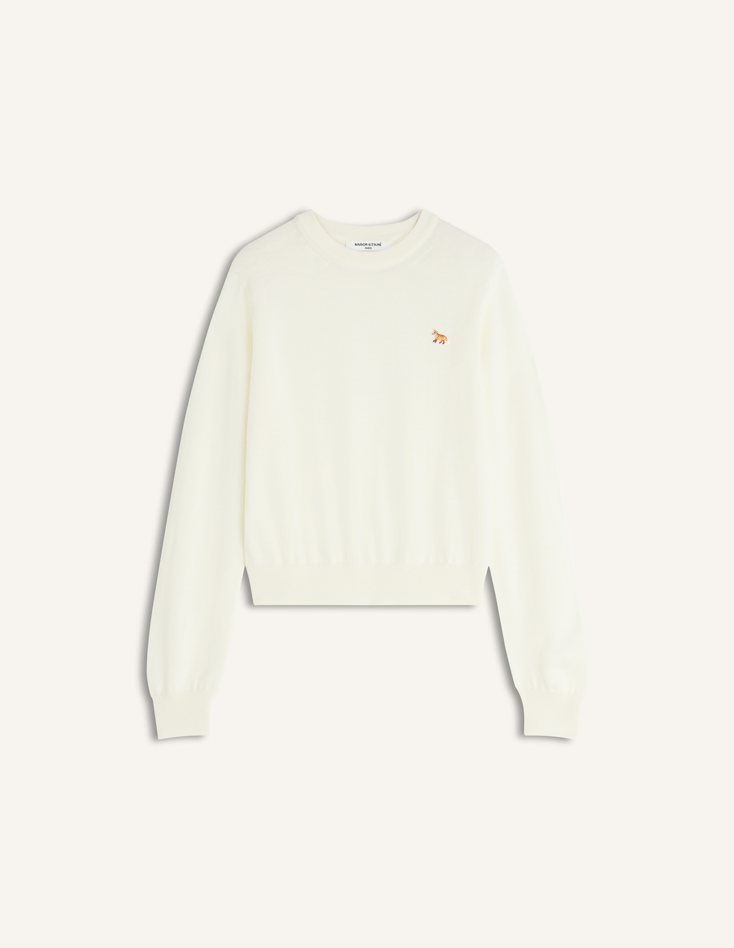 Pull en laine mérinos. Coupe regular avec patch brodé Baby Fox sur la poitrine.