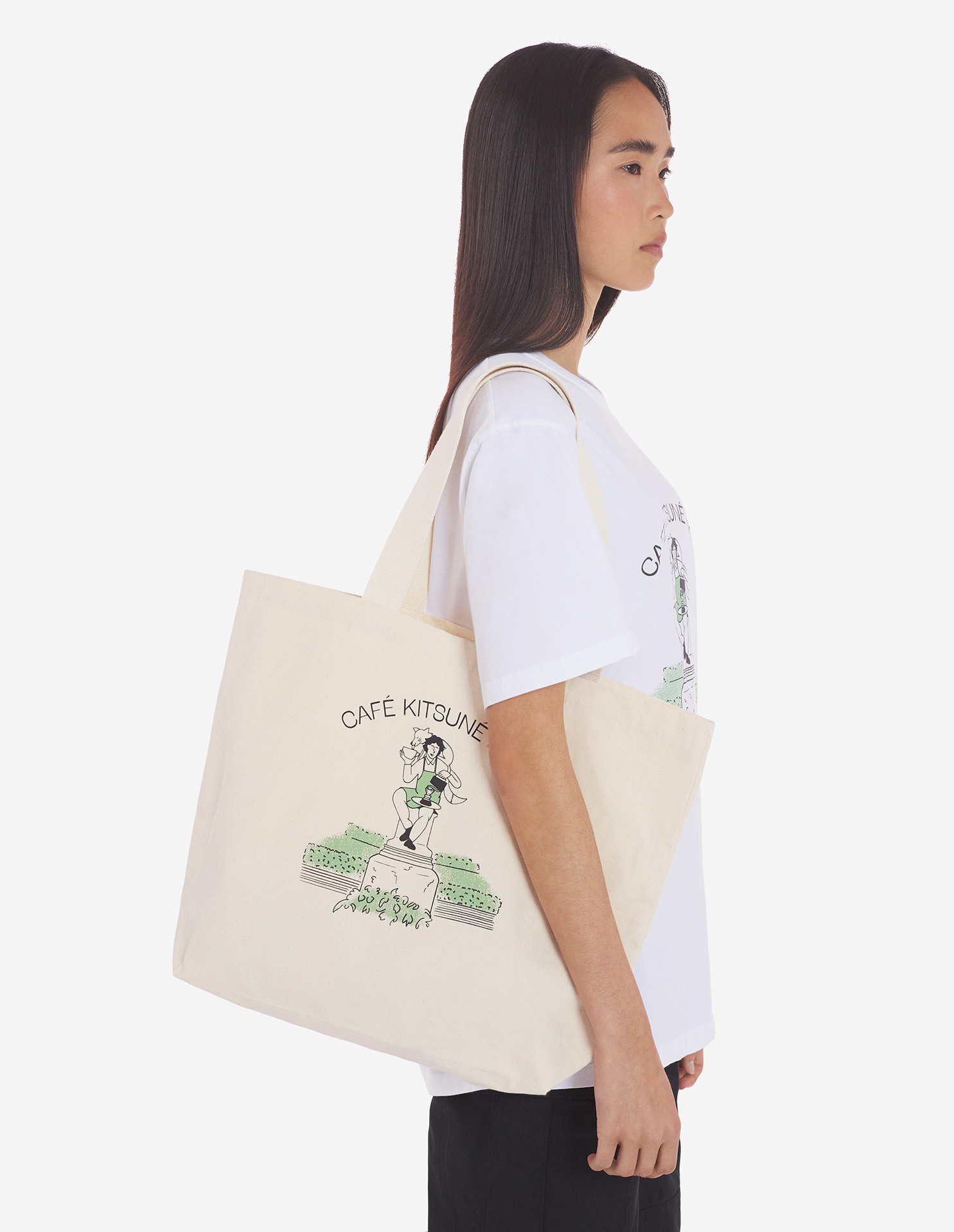 Collection capsule Palais Royal Café Kitsuné. Tote bag en toile de coton avec impression Palais Royal.