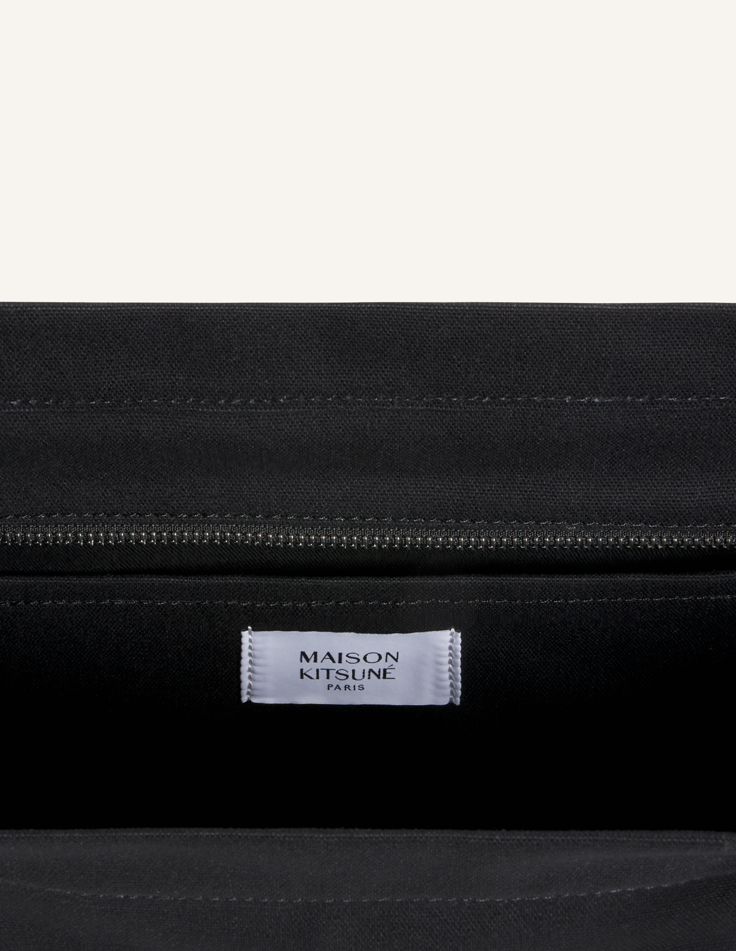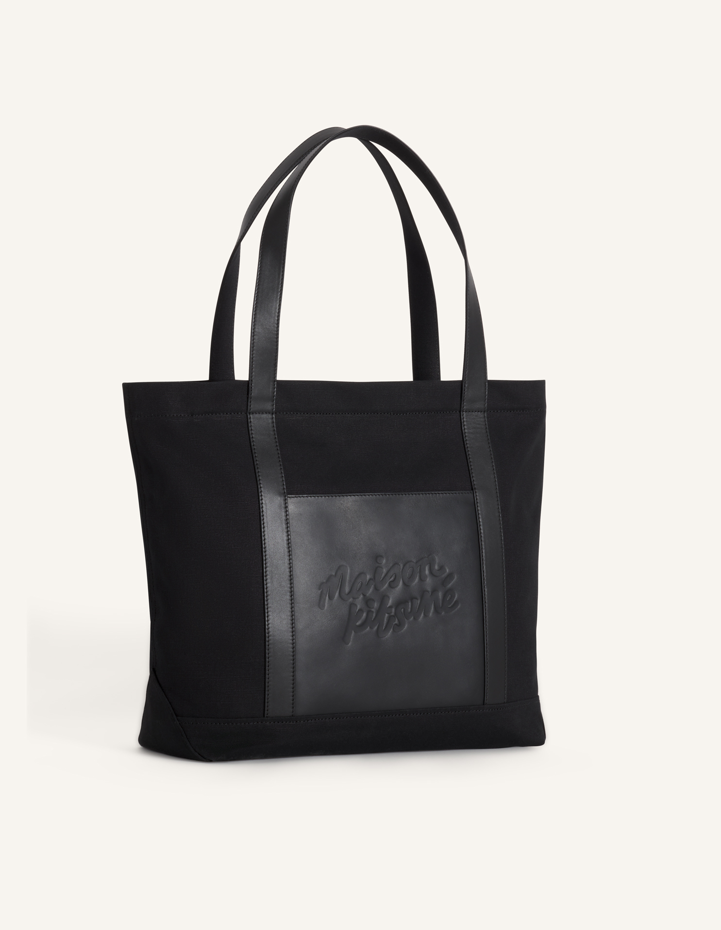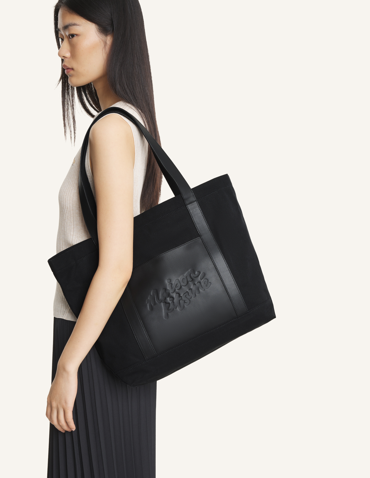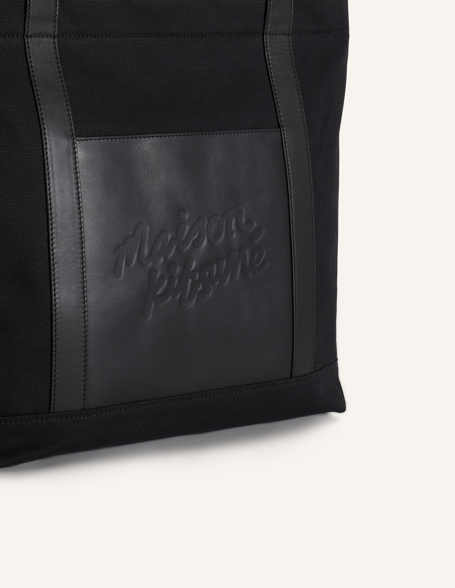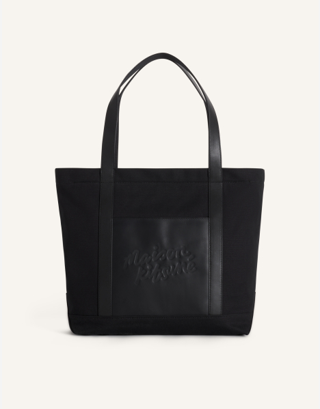 Grand tote bag en toile et cuir. Maison Kitsuné Handwriting embossé sur le devant.
