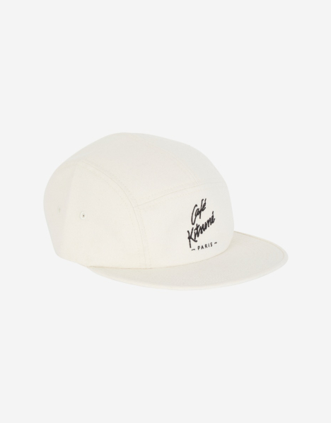 • La casquette 5 panels CAFÉ KITSUNÉ a été confectionnée en coton rehaussé d'une broderie contrastée "Café Kitsuné Paris" sur le devant. Le modèle est doté d'une visière finement courbée ainsi que de quatre œillets sur les côtés. Portez la casquette avec un jean court et des mocassins pour un look minimaliste!