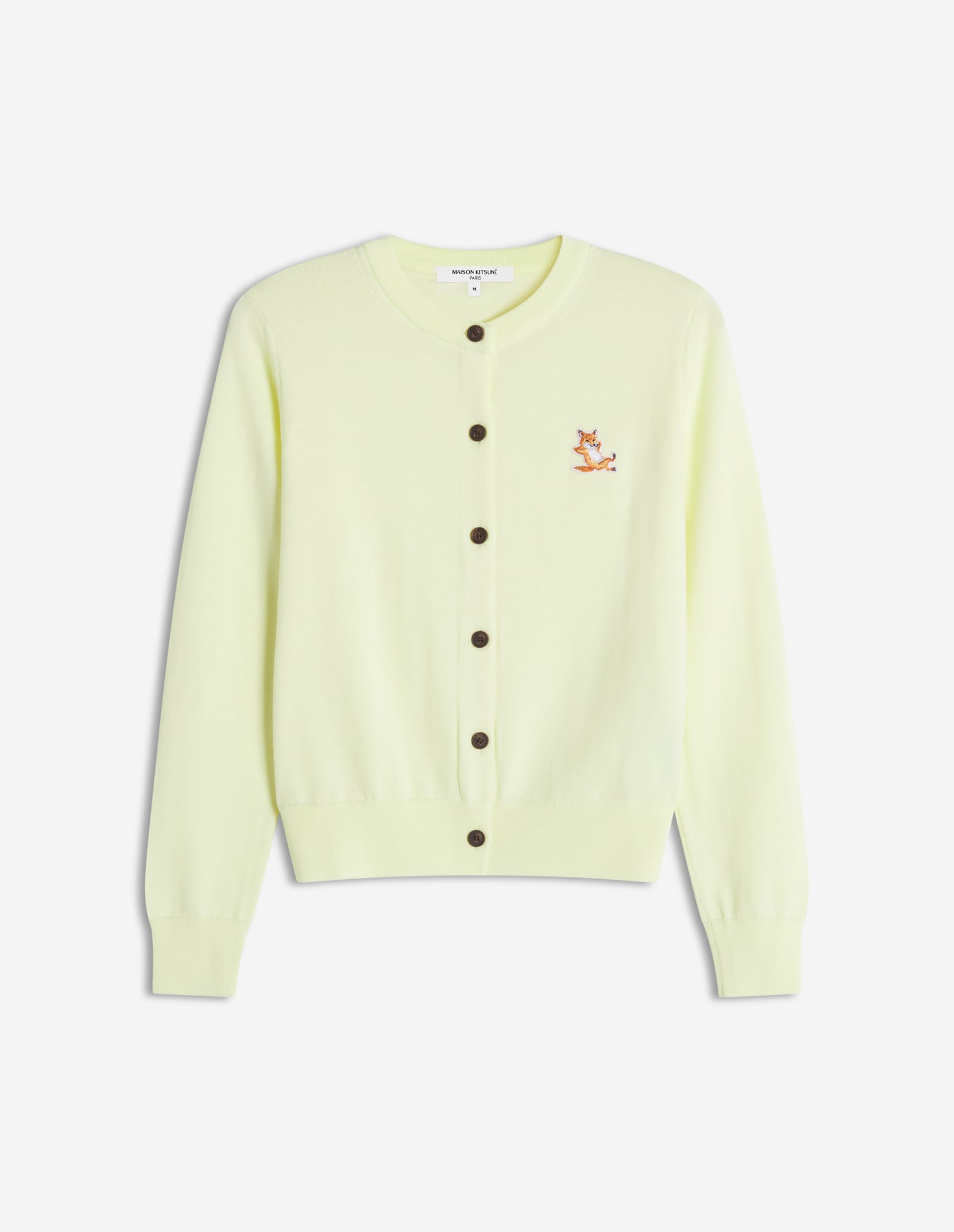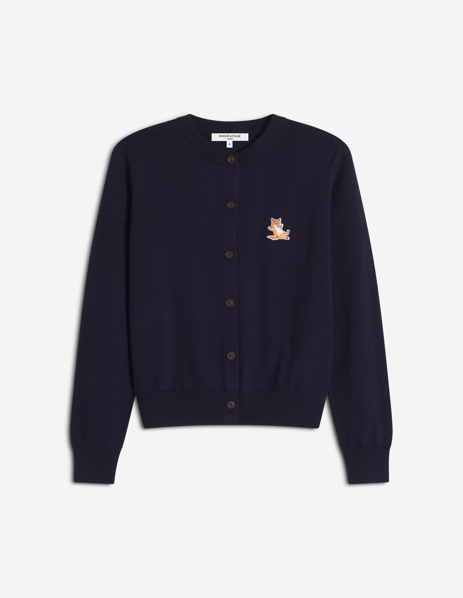 Cardigan en laine mérinos fine. Coupe regular avec patch Chillax Fox brodé.