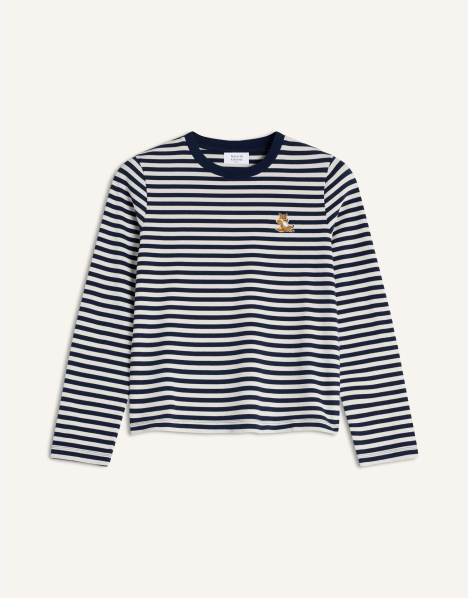 Tee-shirt à manches longues en jersey de coton rayé. Coupe regular avec patch brodé Chillax sur la poitrine.