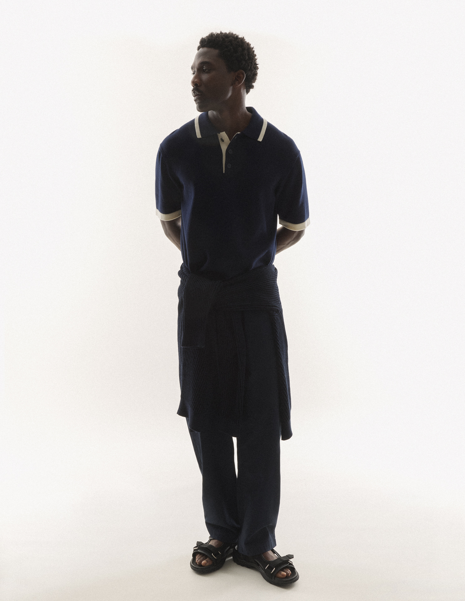 Bords côtes contrastés à l'encolure et aux emmanchures