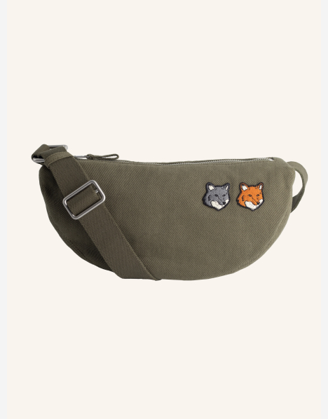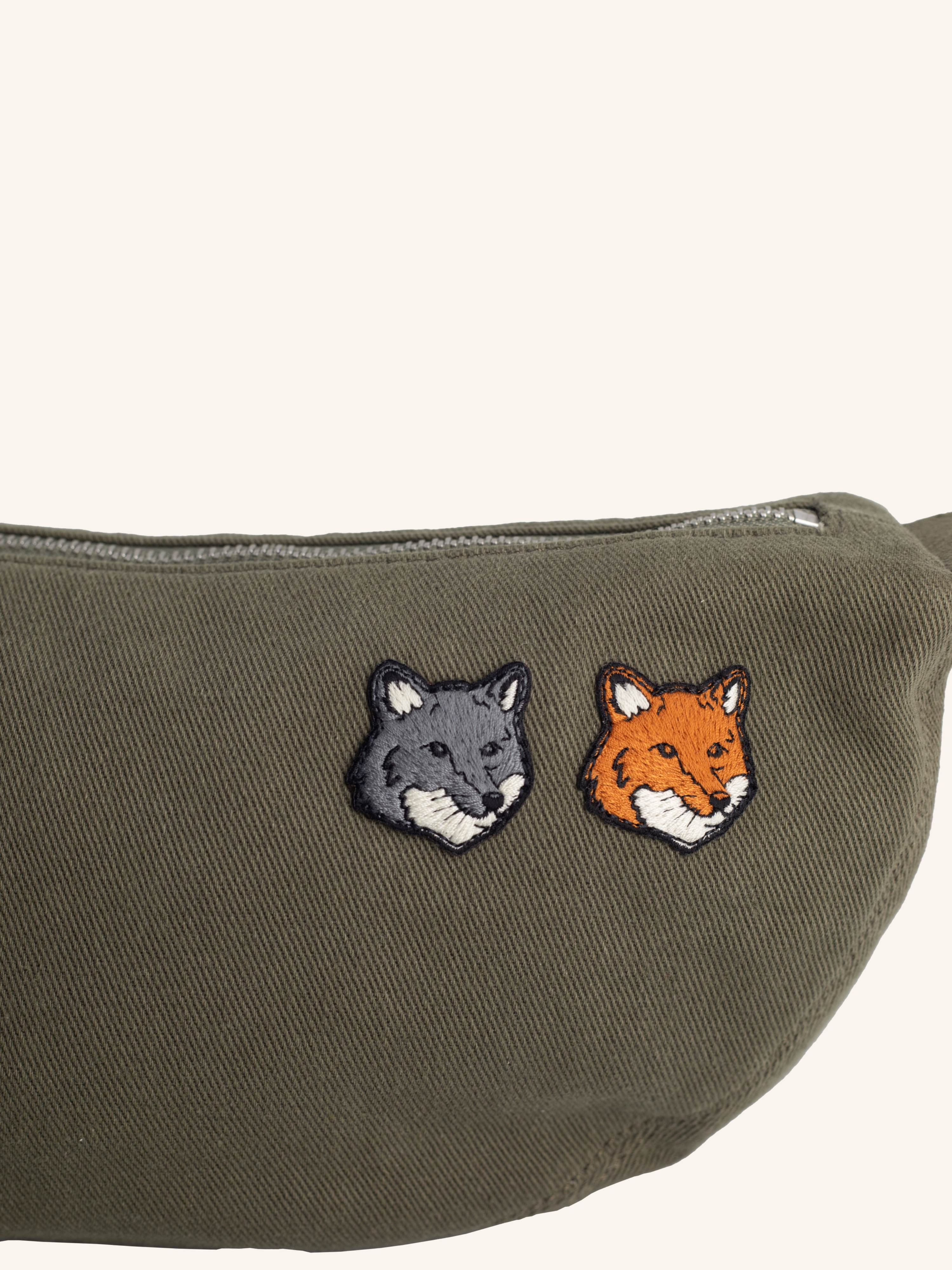 Sac banane en toile de coton délavée. Patchs brodés Double Fox Head sur le devant.