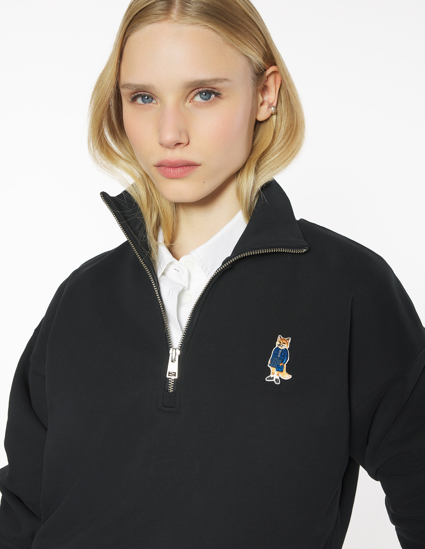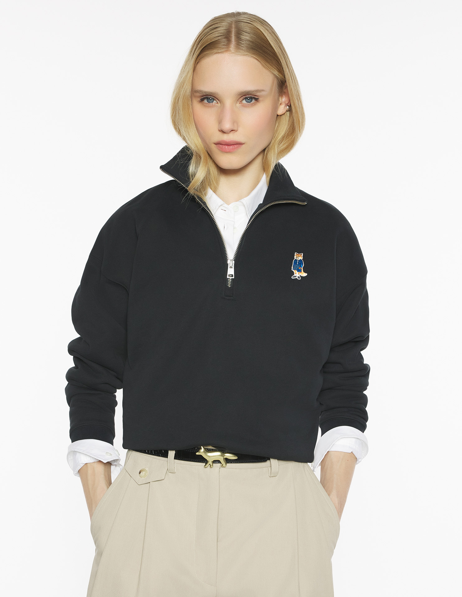 Sweatshirt à col montant zippé en molleton. Coupe confort avec patch brodé Dressed Fox sur la poitrine.