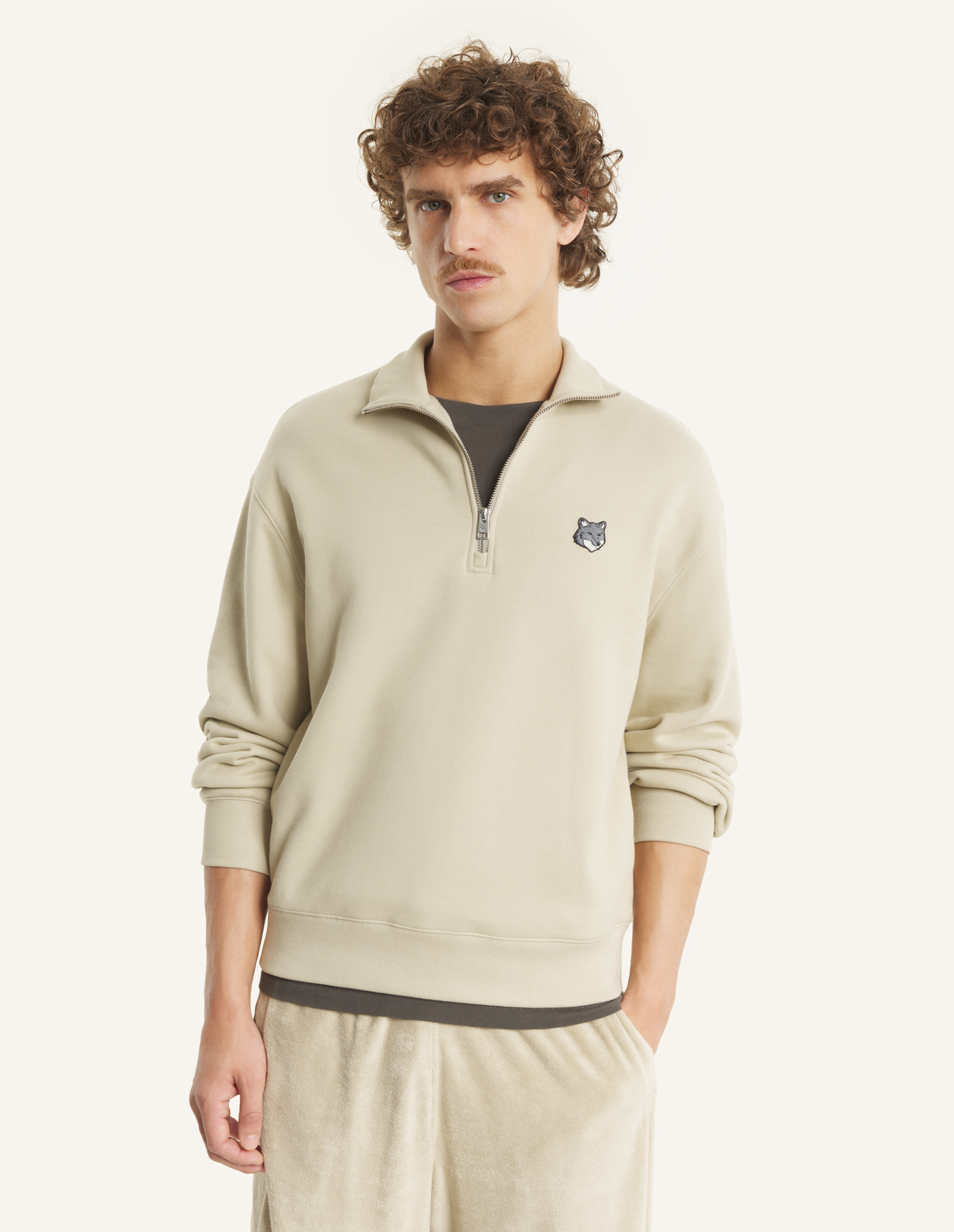 • Sweatshirt à col zippé Fox Head en molleton de coton décontracté (440g)
