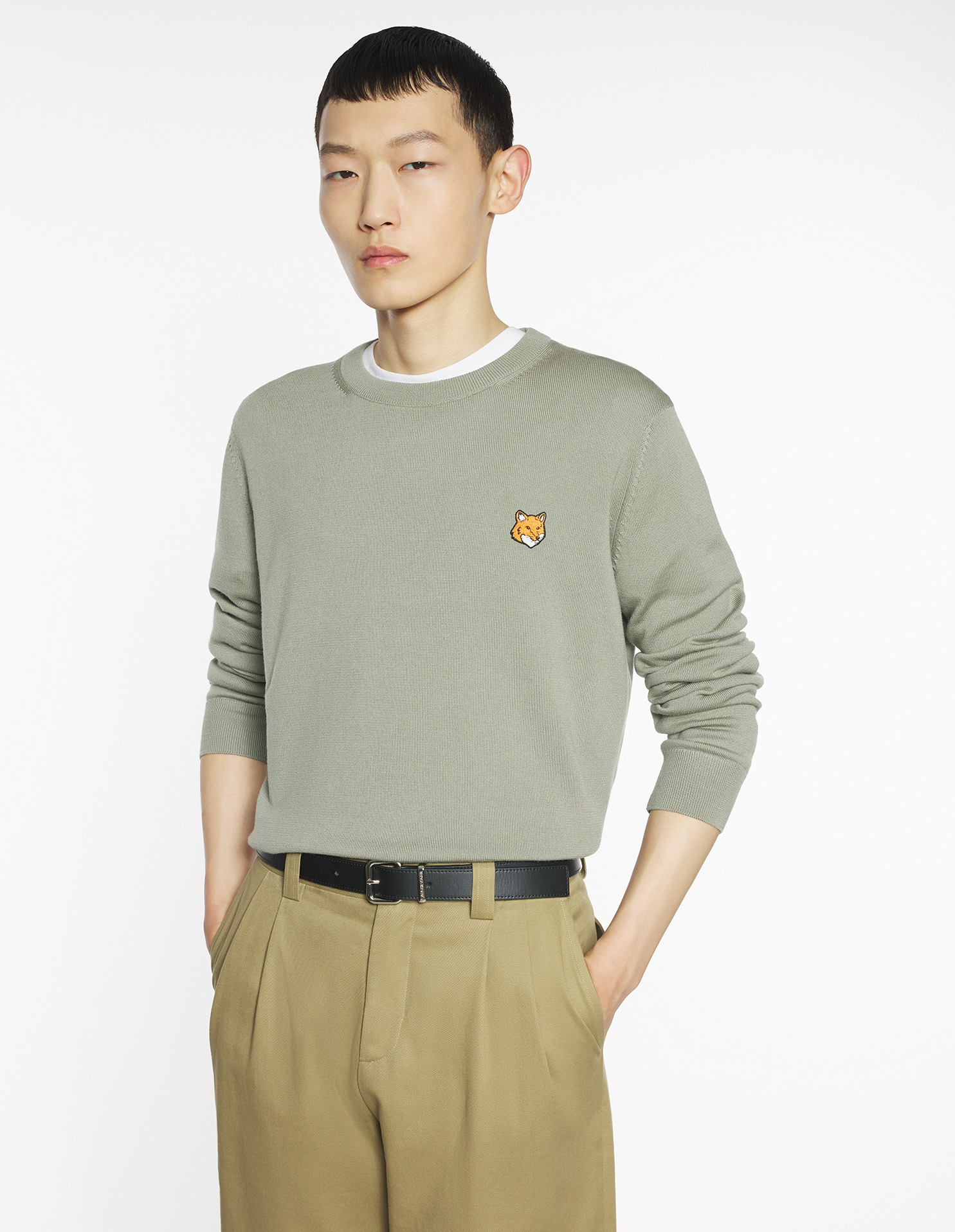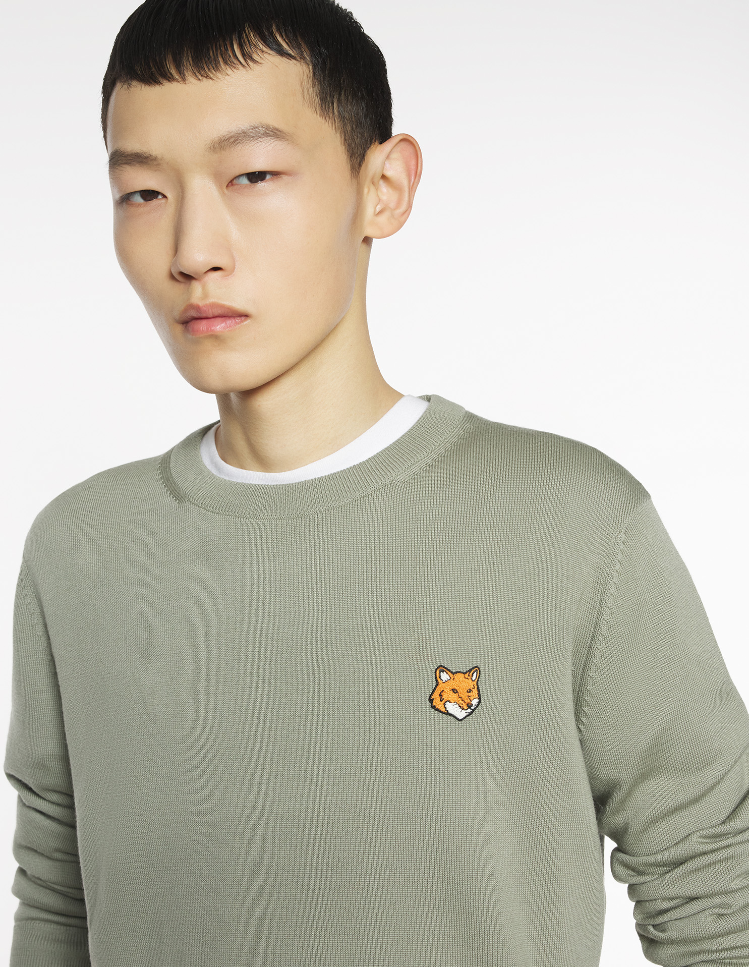 Pull en laine mérinos extra-fine à manches longues, coupe regular, patch brodé Fox Head.