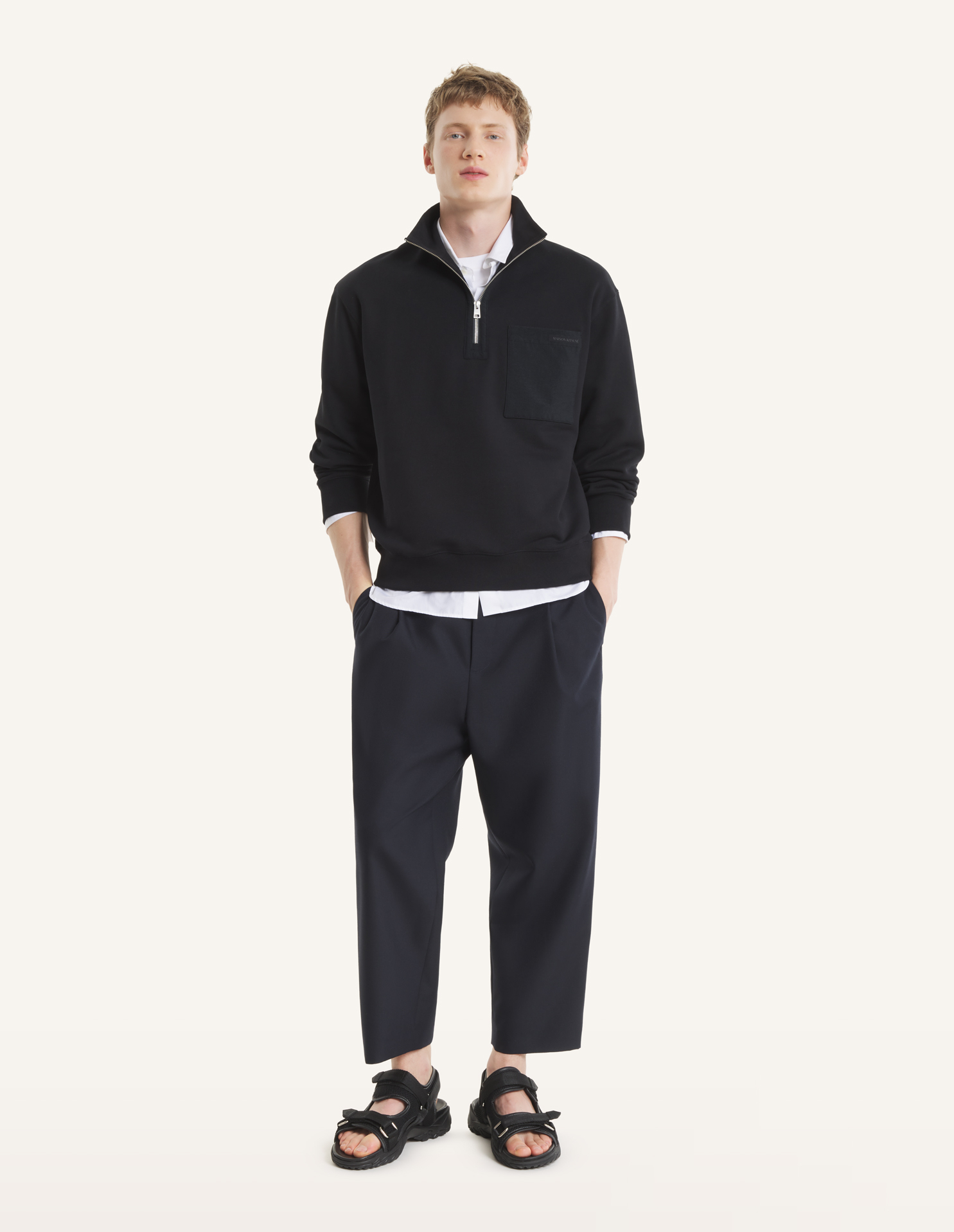 Sweatshirt à col zippé en molleton de coton. Coupe confort avec patch en silicone Maison Kitsuné Paris sur la poche avant.