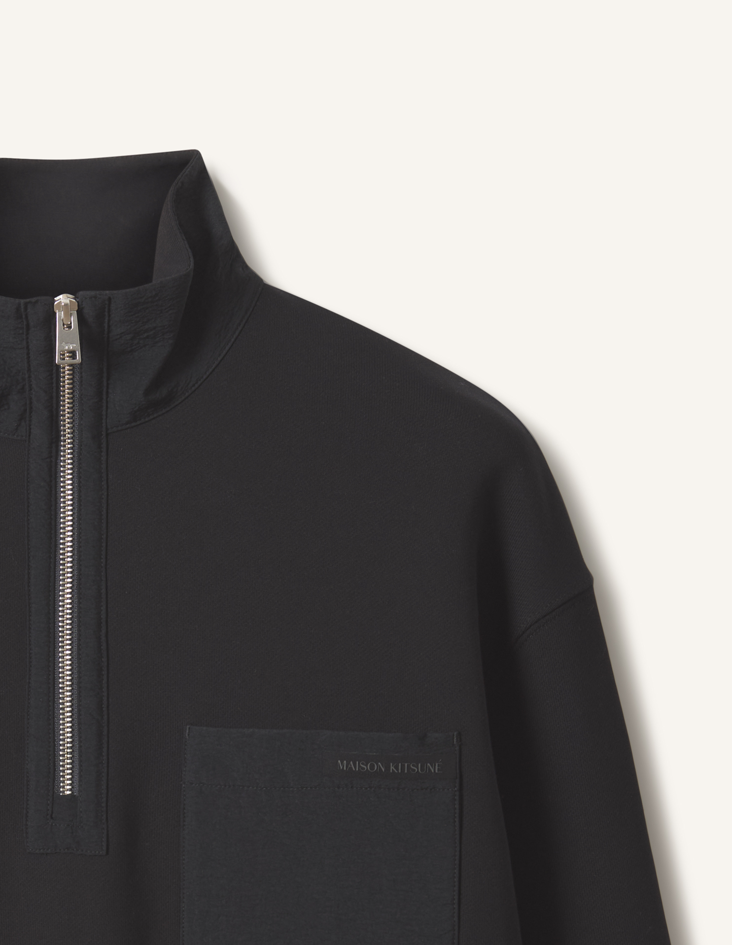 HALF-ZIP NYLON POCKET SWEATSHIRT