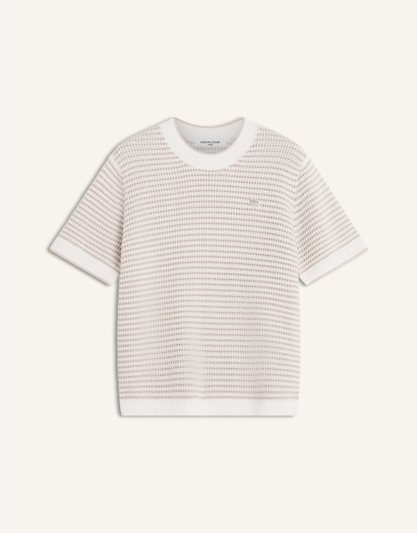 • Pull à manches courtes en coton pointelle rayé