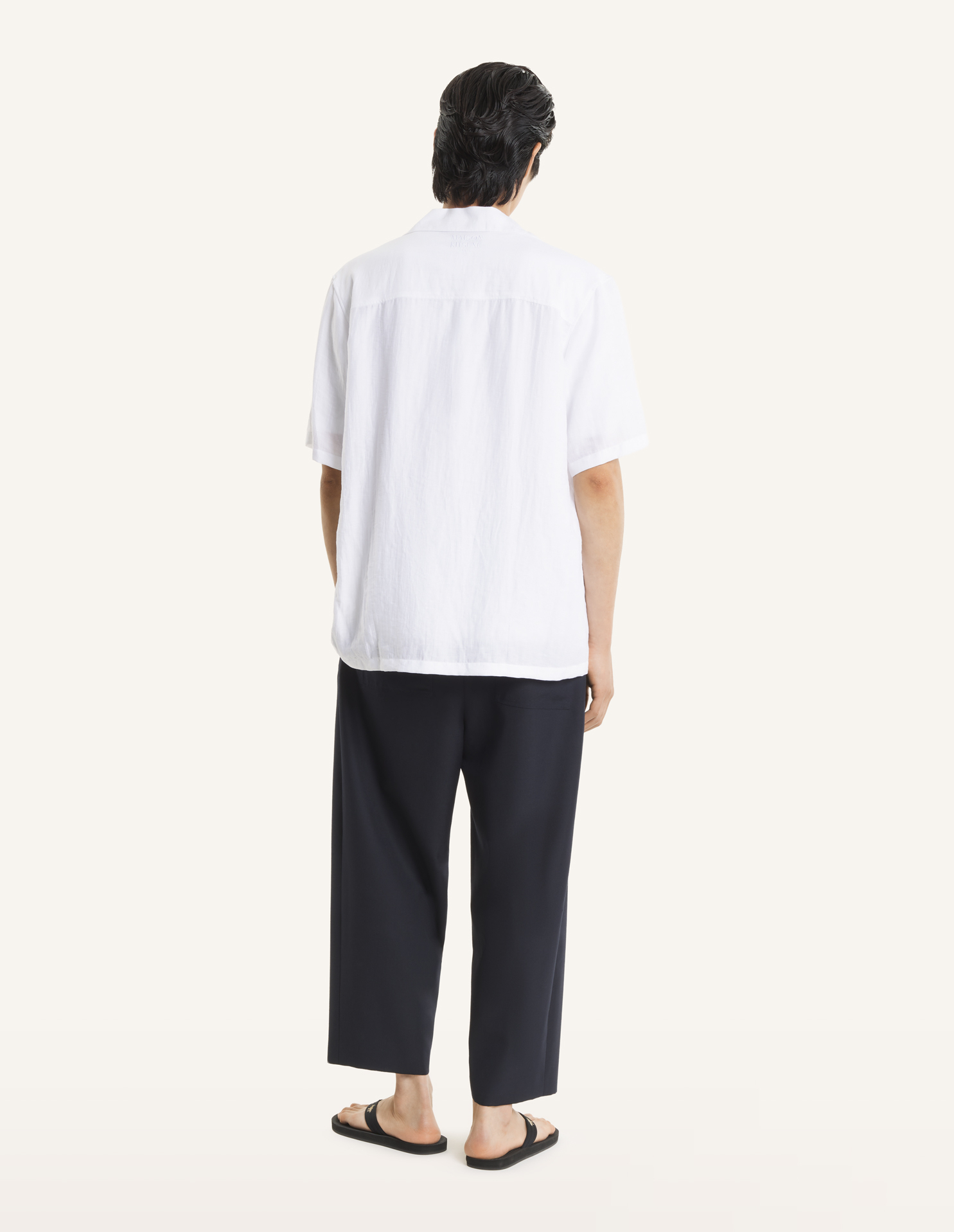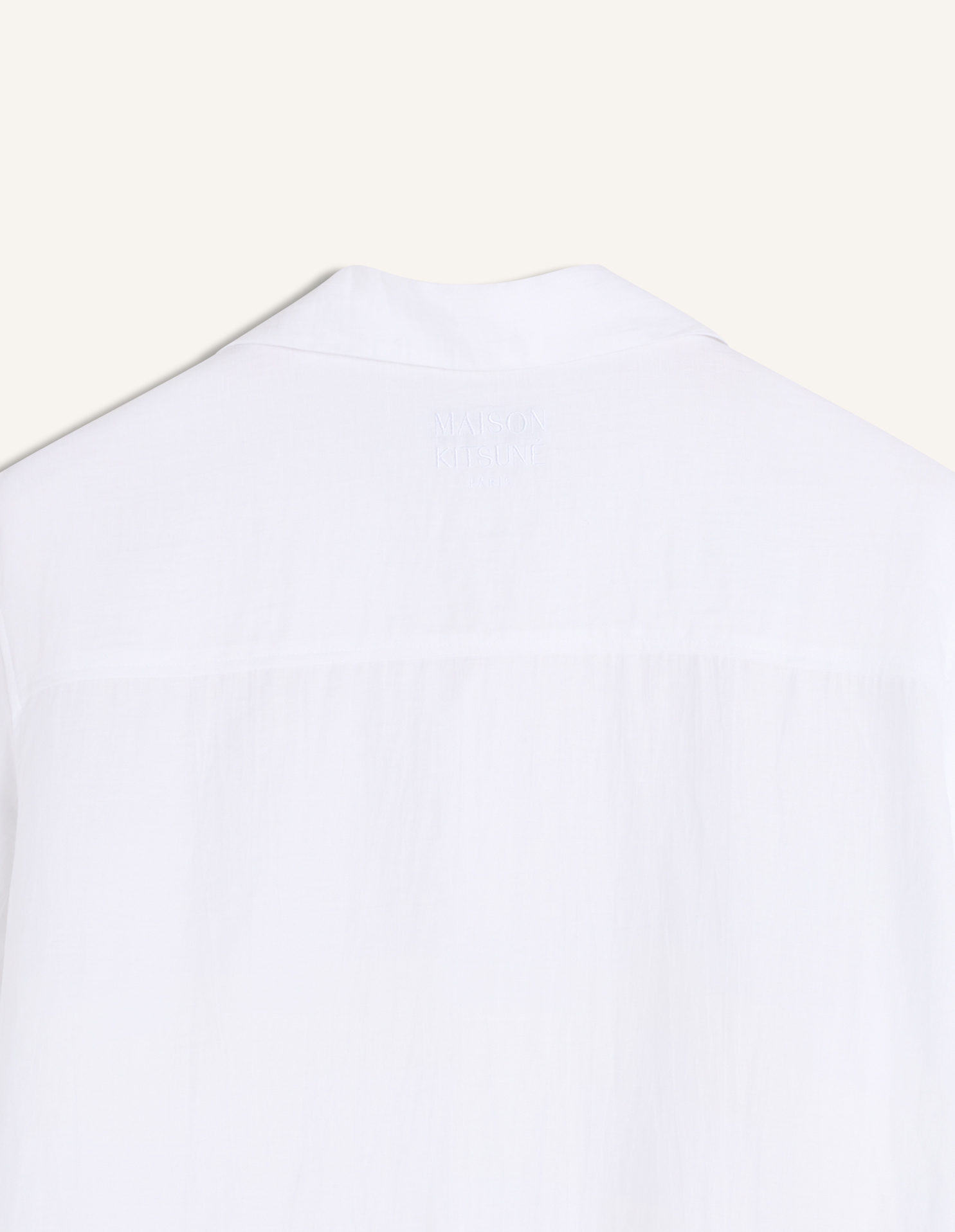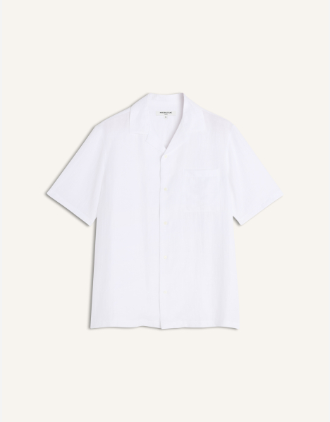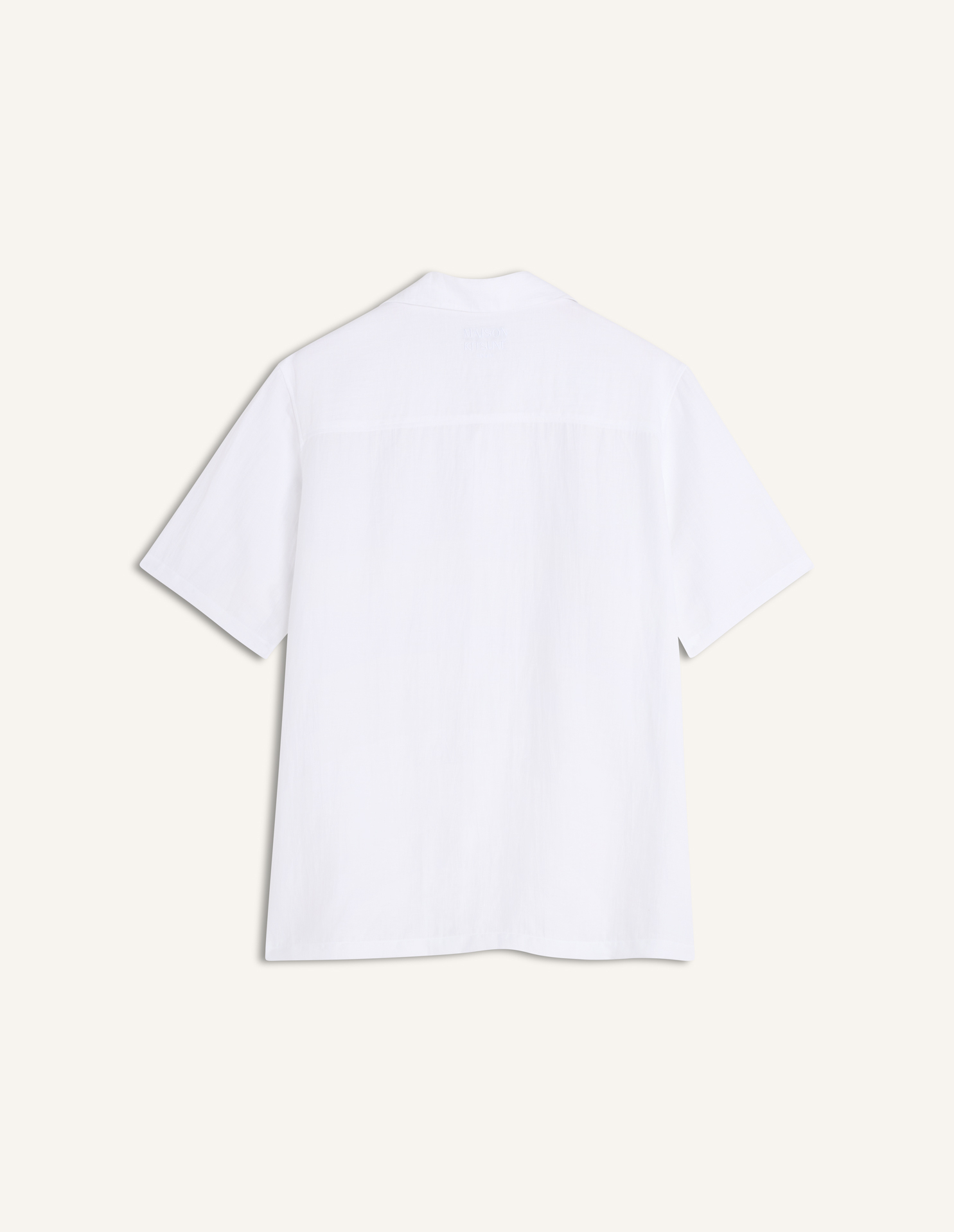 Chemise resort en lin mélangé. Étiquette tissée Maison Kitsuné sur la poitrine.