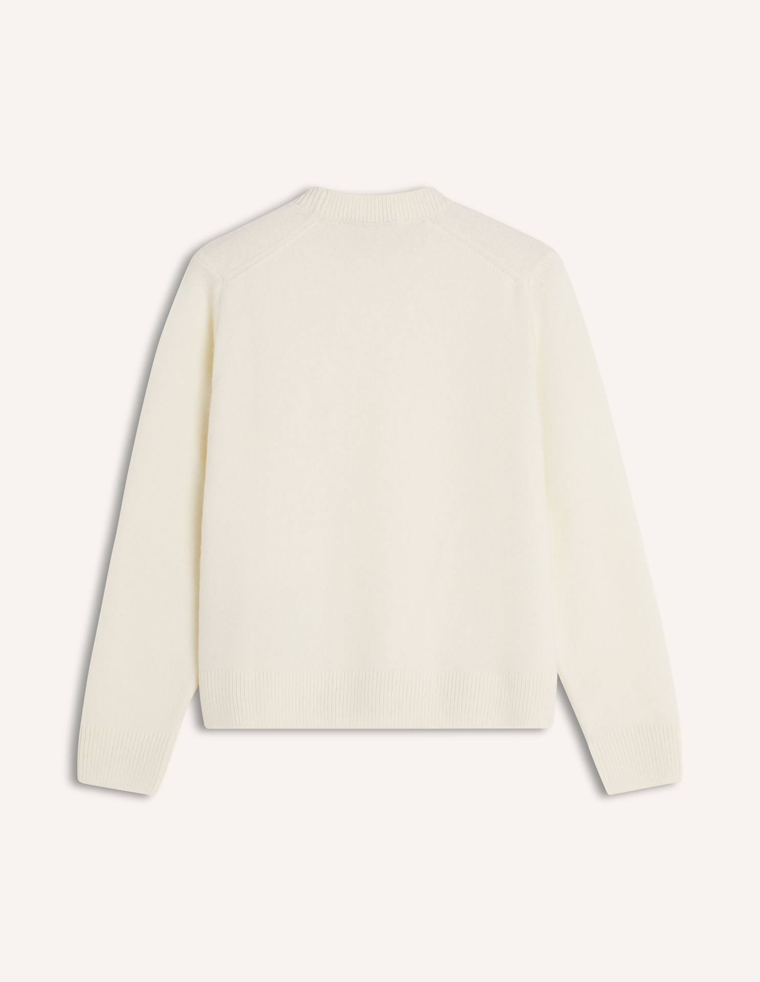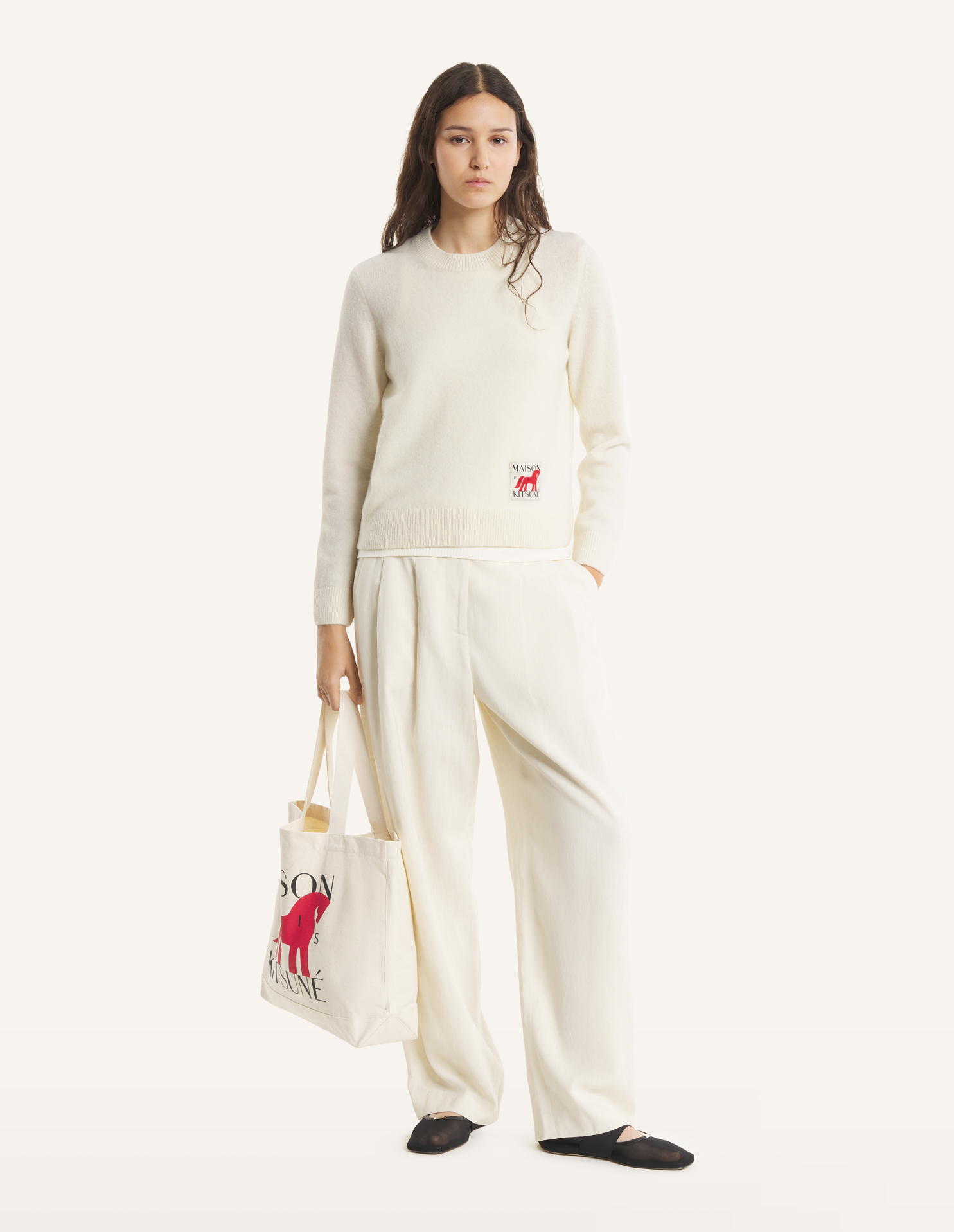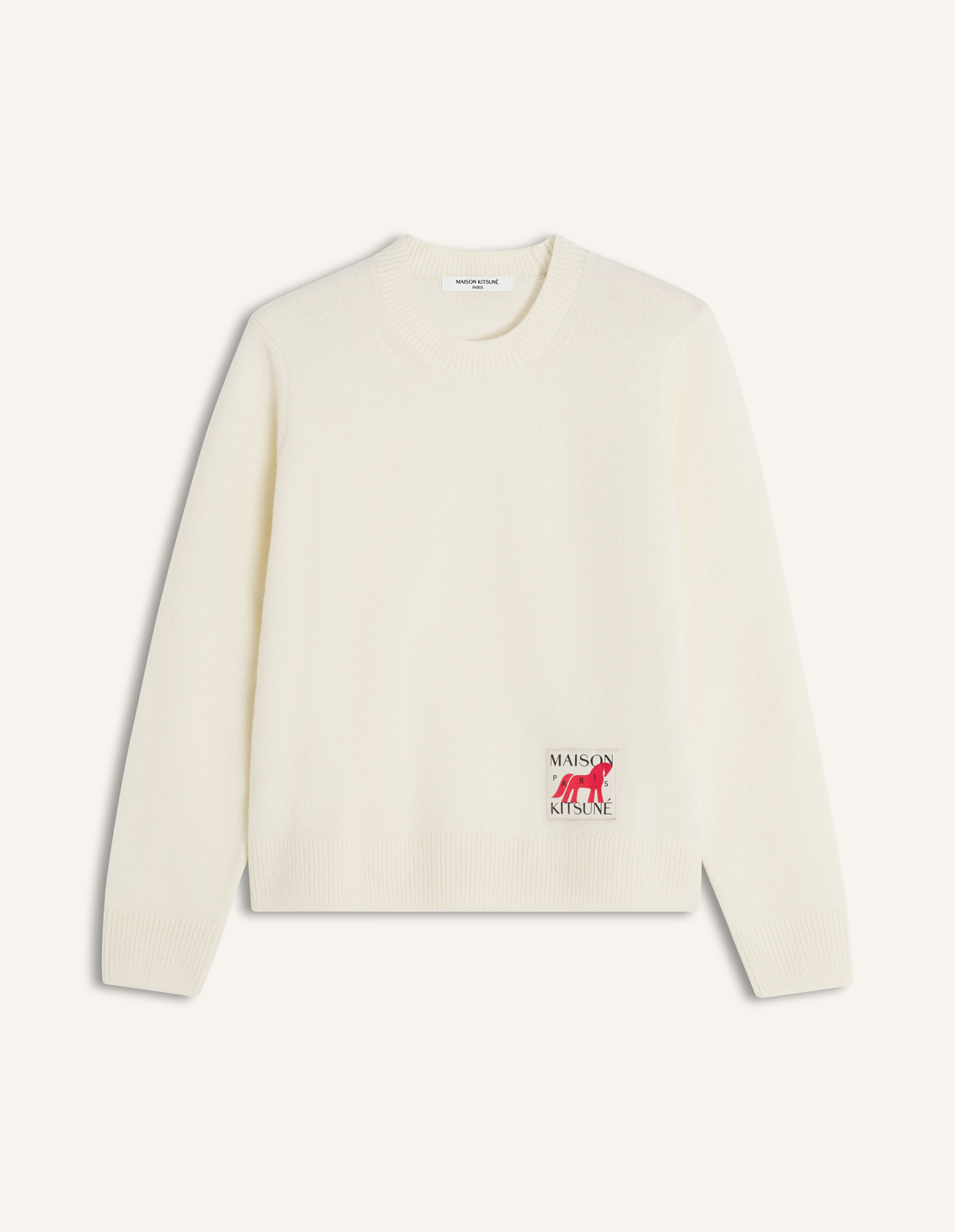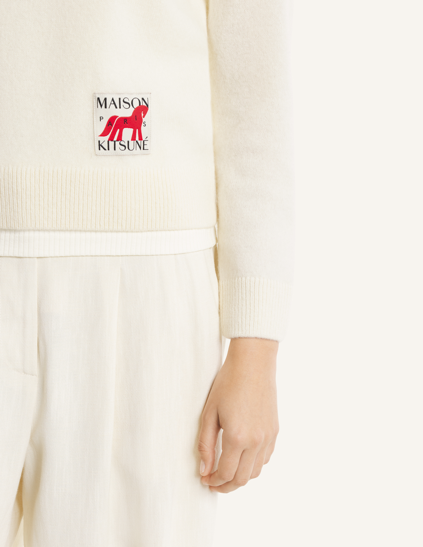 Pull en laine d'agneau. Coupe confort avec étiquette tissée Year of the Horse en bas à gauche.
