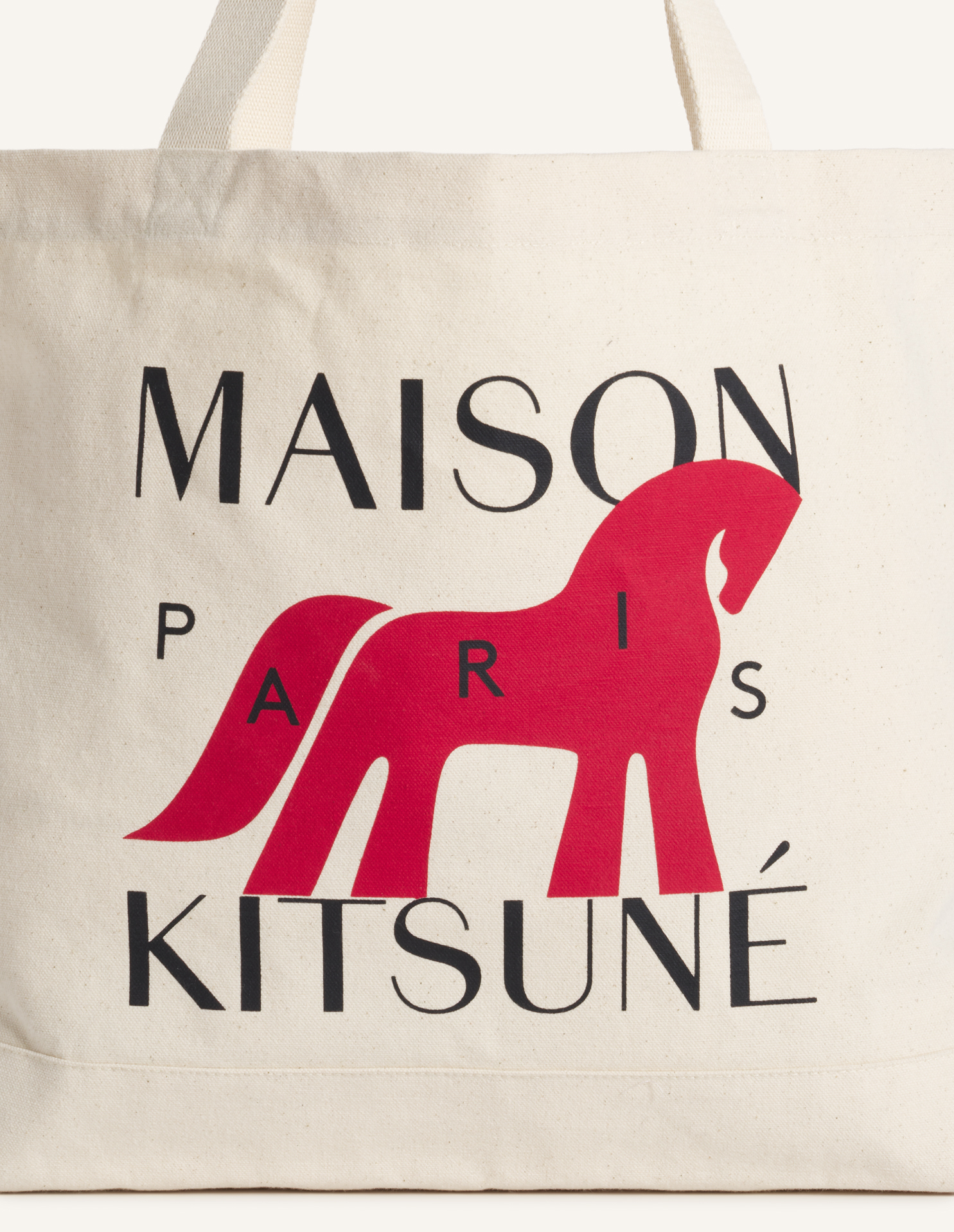 Tote bag en toile. Imprimé Année du Cheval sur le devant.