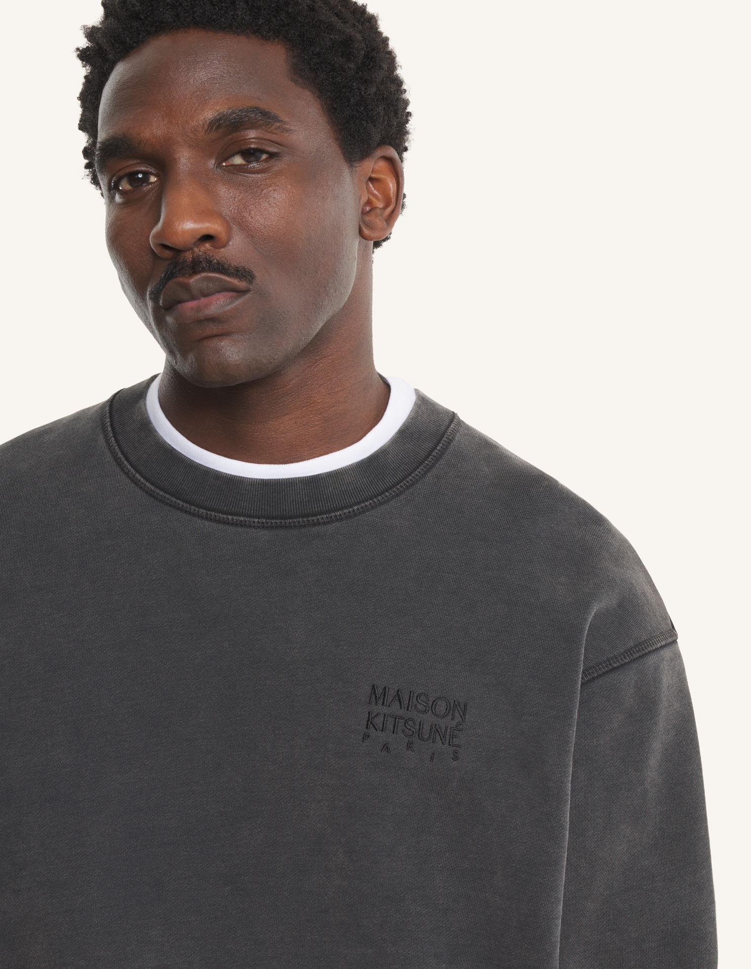 Sweatshirt en molleton de coton délavé. Coupe décontractée avec broderie Maison Kitsuné Paris Litery sur la poitrine.