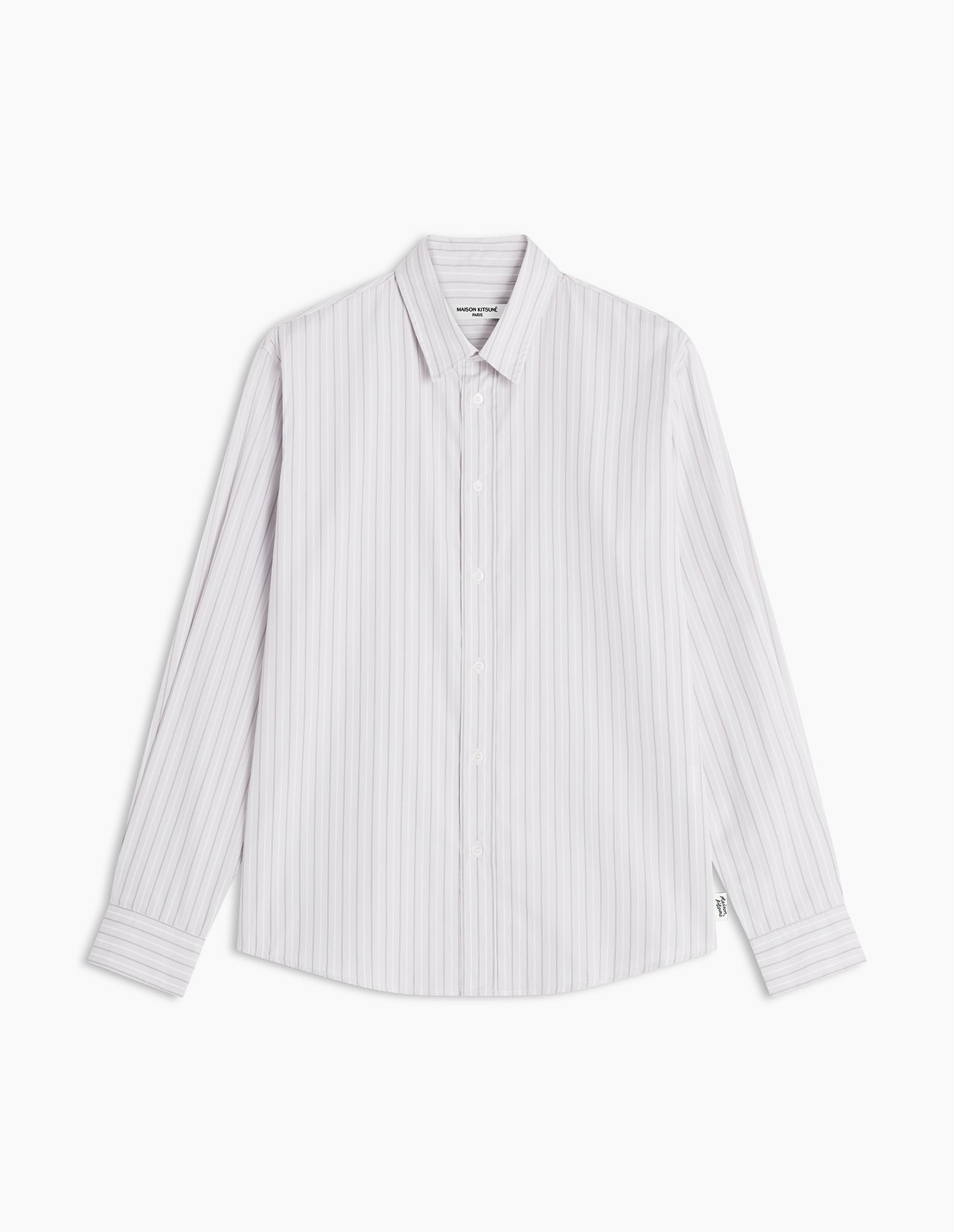 Chemise casual en popeline de coton à fines rayures. Coupe confort avec signature Maison Kitsuné Handwriting brodée.
