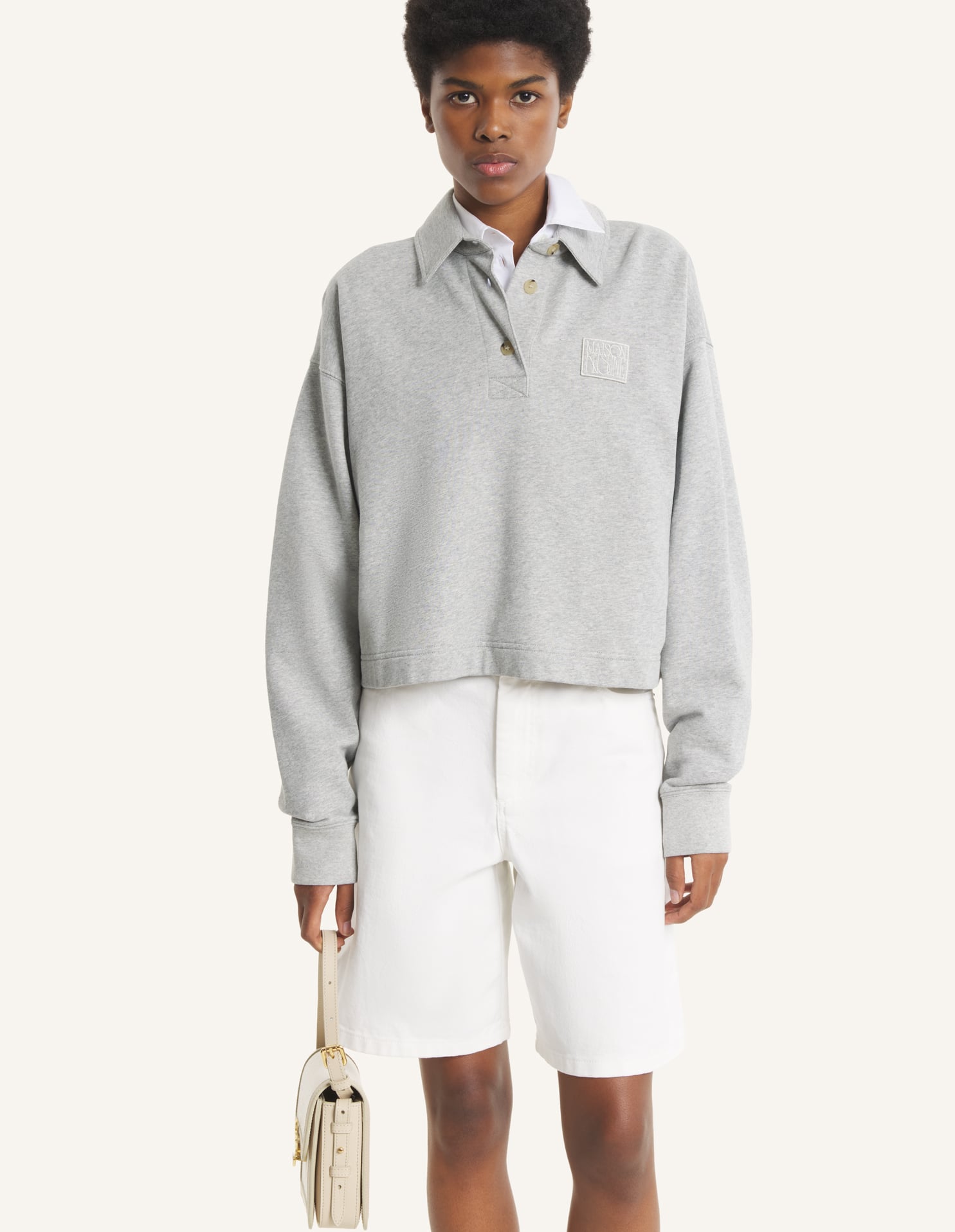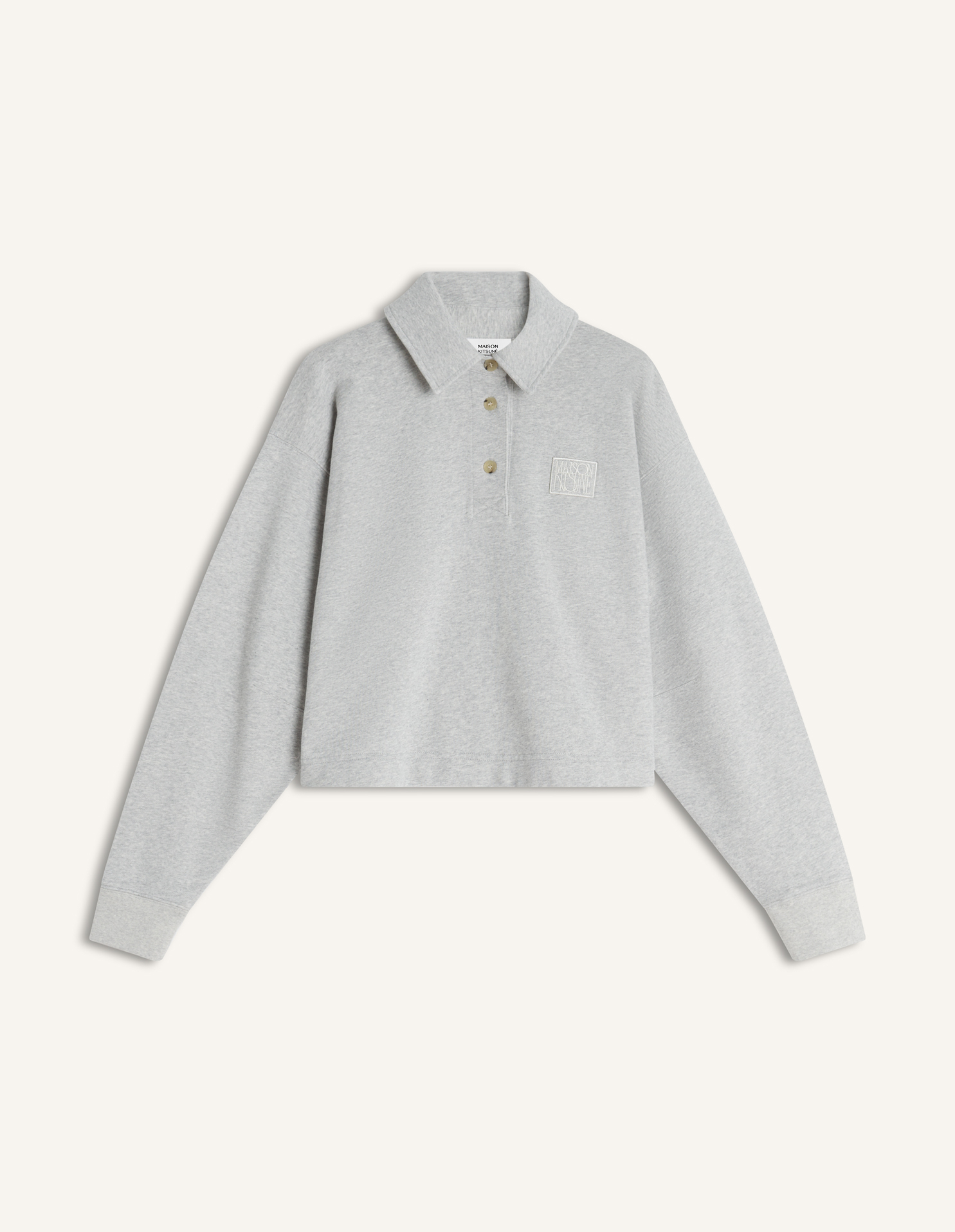 Sweatshirt polo en molleton de coton léger. Coupe cropped avec Maison Kitsuné Stamp imprimé sur la poitrine.