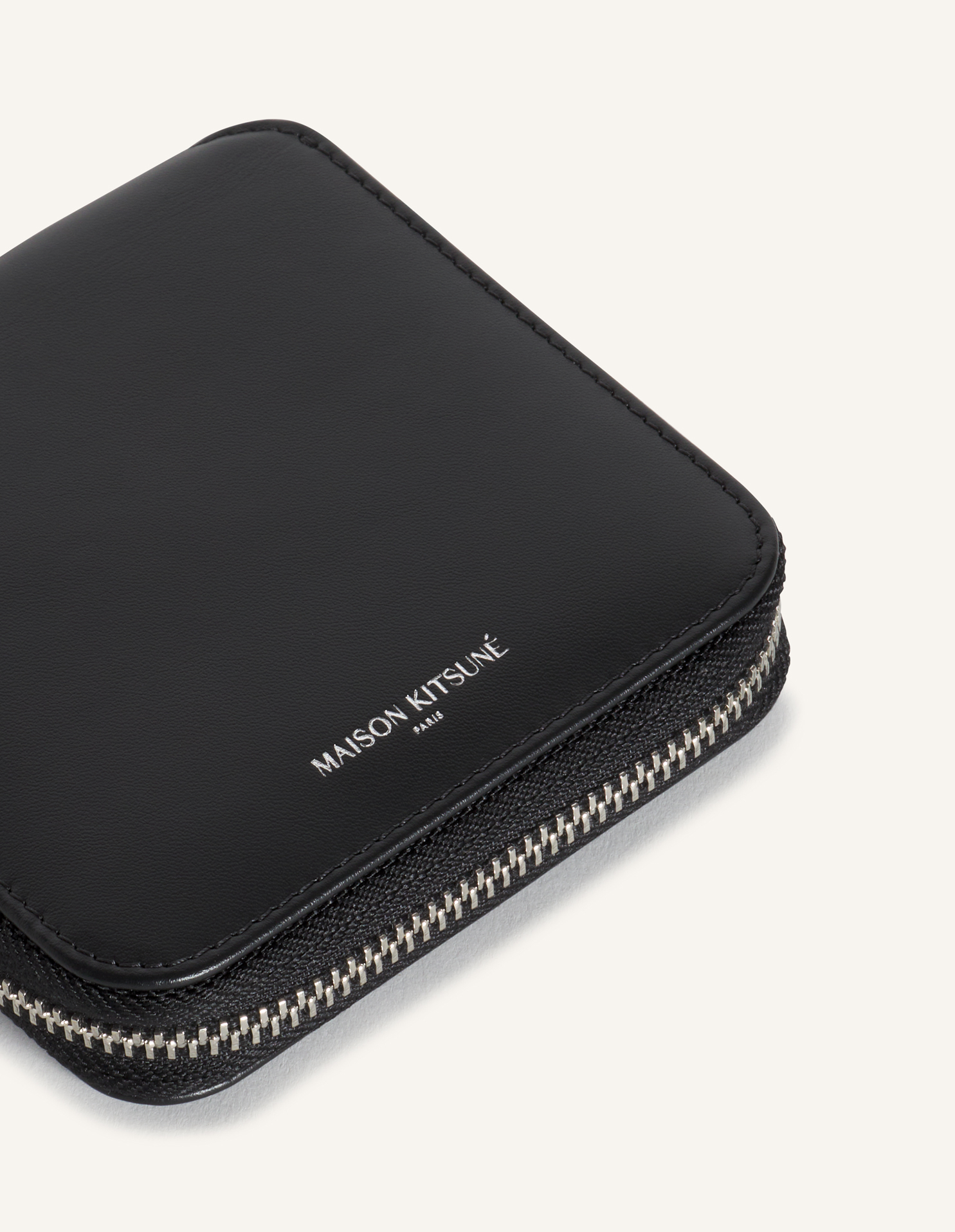 Portefeuille en cuir grainé souple. Maison Kitsuné Paris embossé sur le devant.