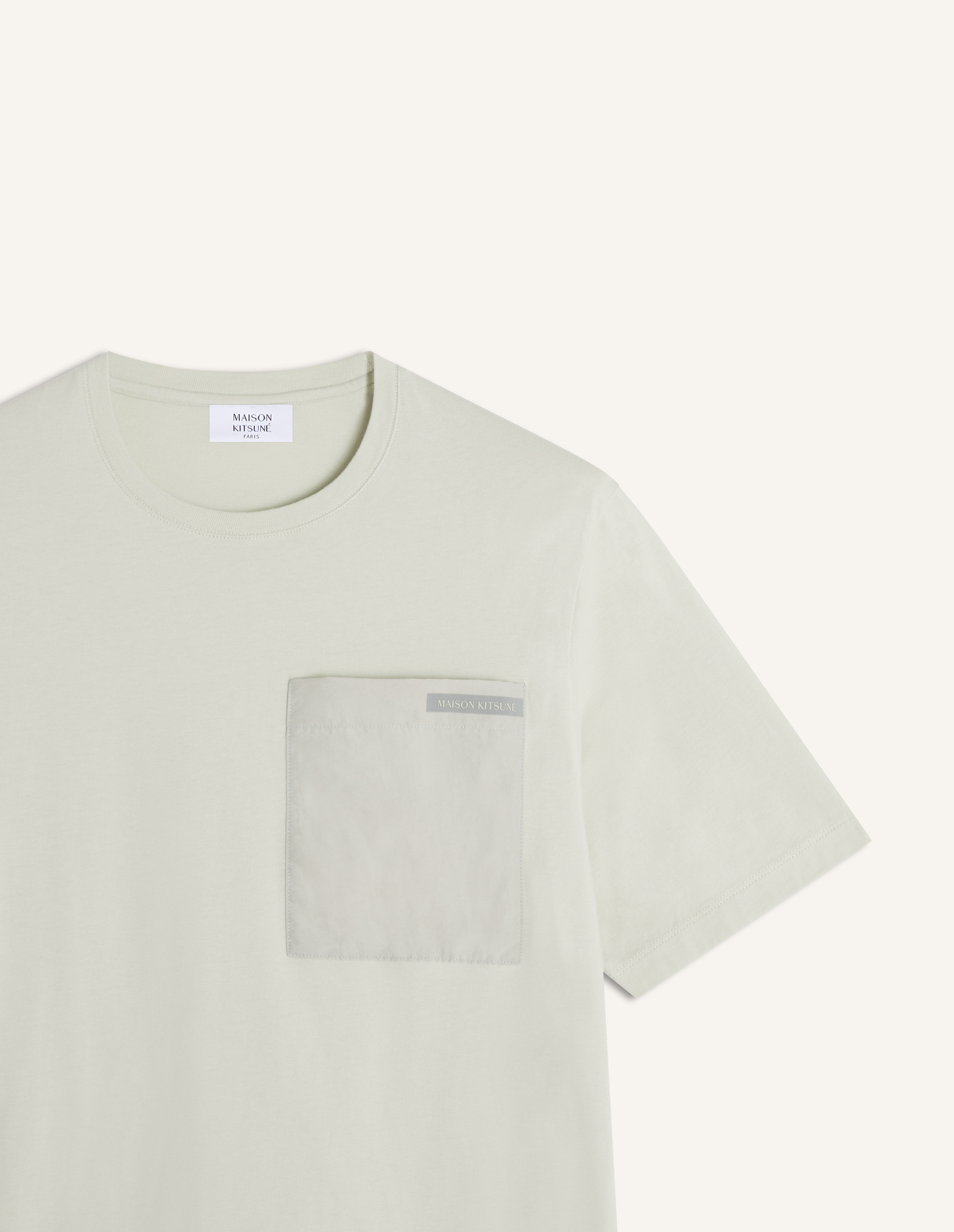 Tee-shirt en jersey de coton (180g). Coupe regular avec étiquette en silicone Maison Kitsuné sur la poche avant.