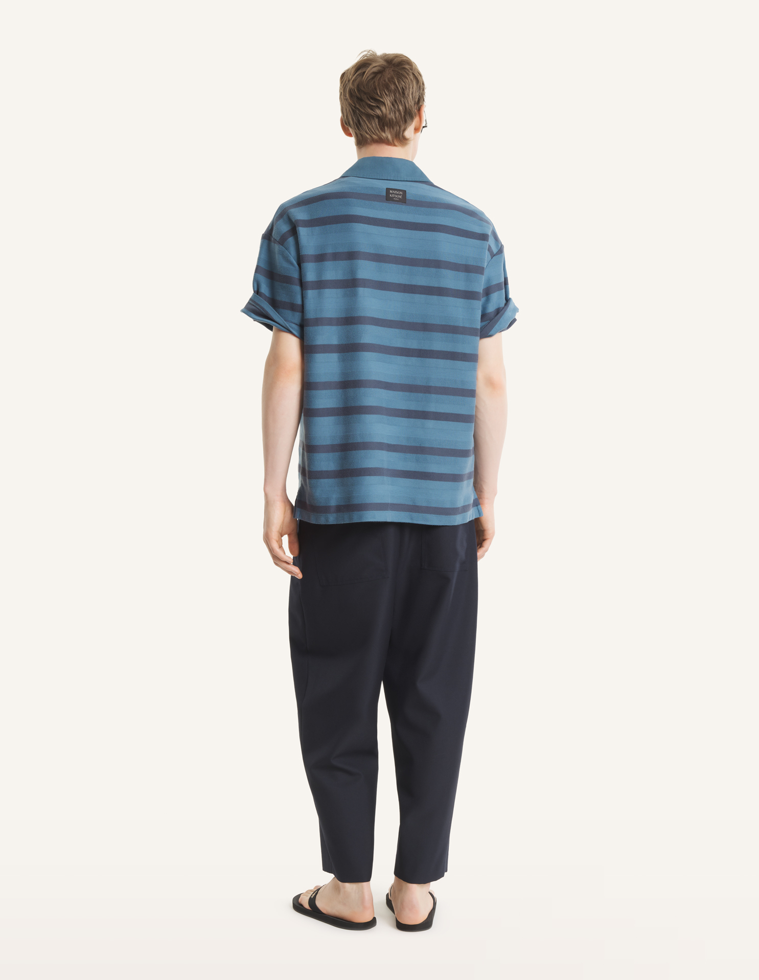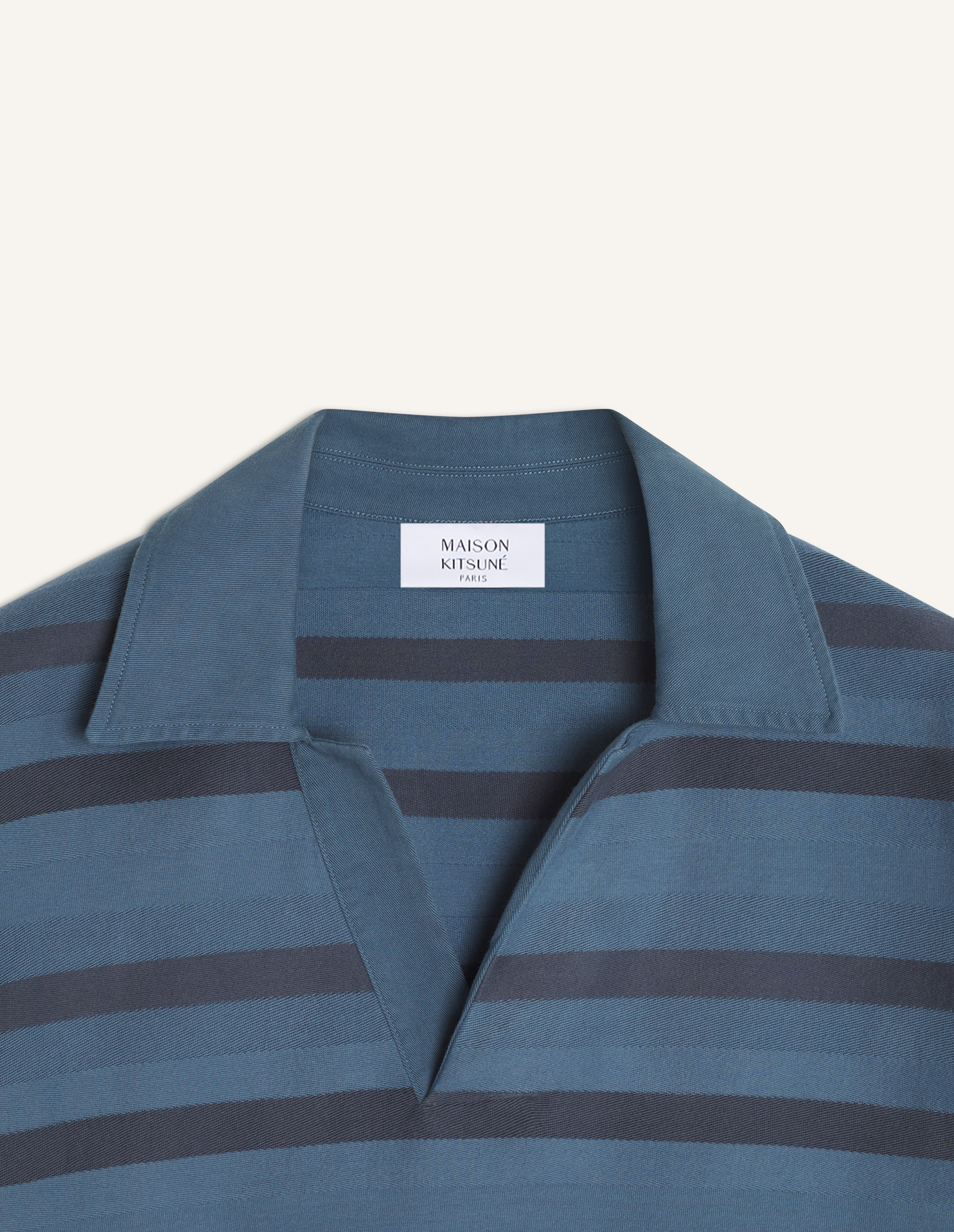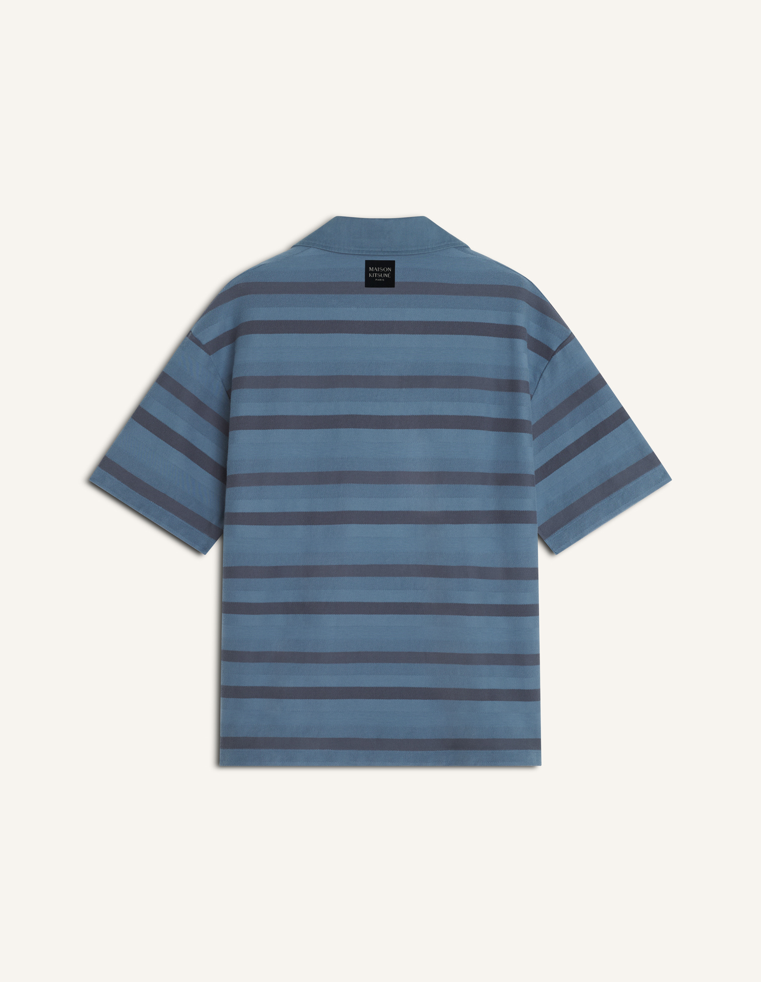 Polo oversize rayé en jacquard de coton. Coupe oversize avec étiquette tissée Maison Kitsuné Paris à lencolure dos.