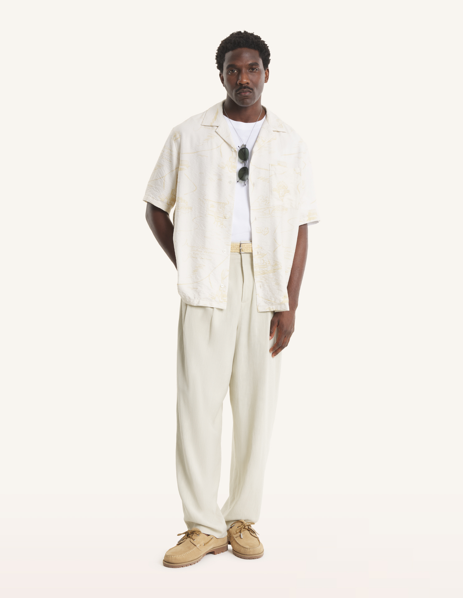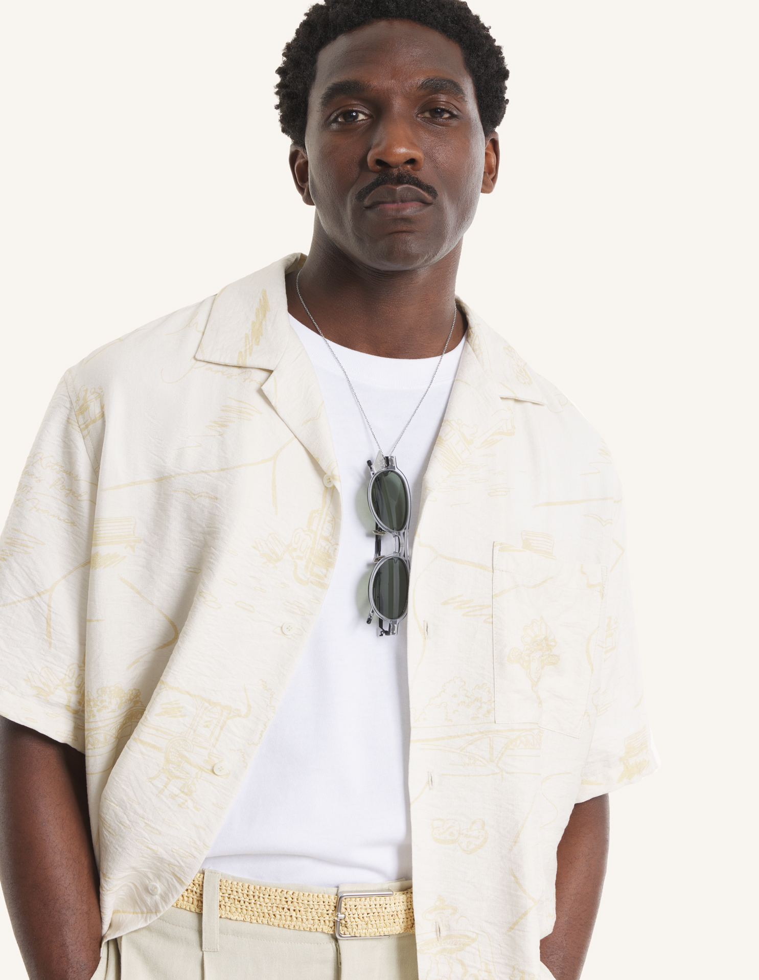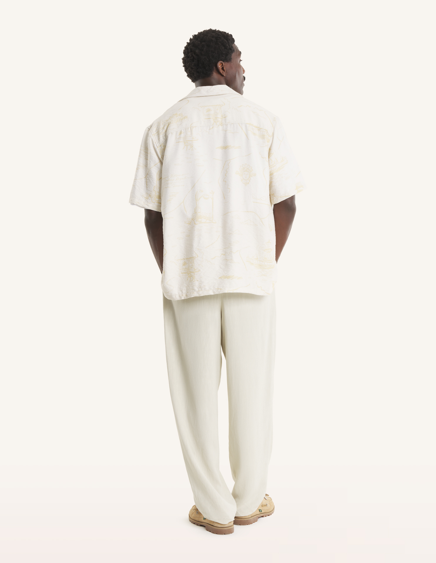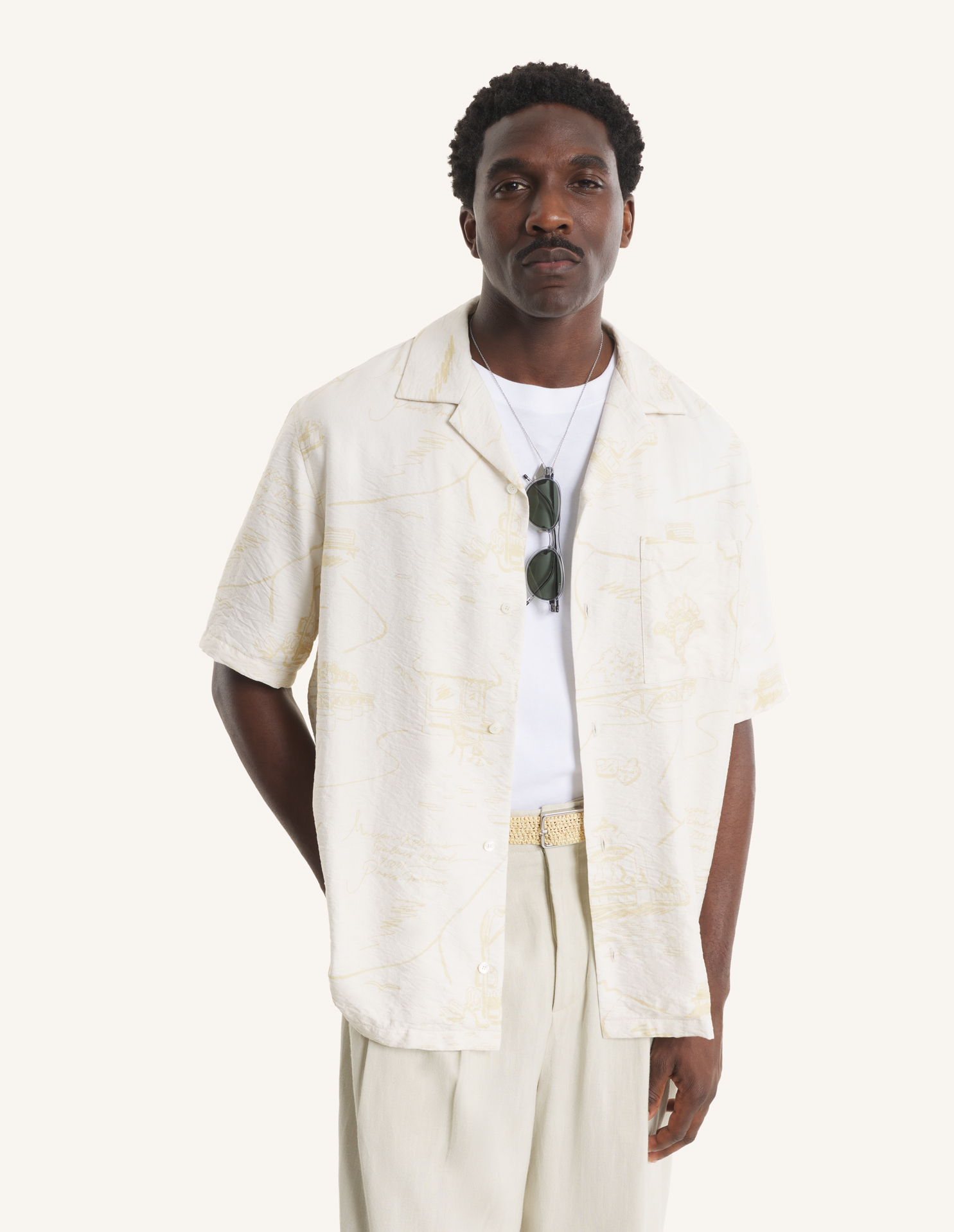 Chemise resort en viscose texturée. Imprimé Parisian Map all-over.
