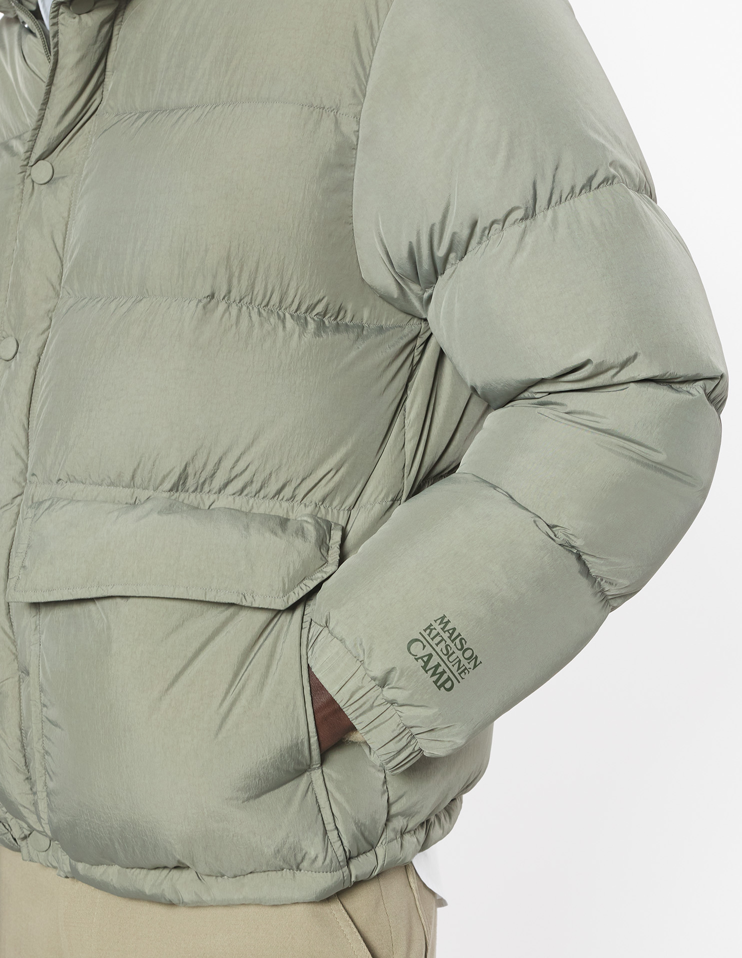 Doudoune matelassée en nylon léger. Coupe confort et signature Maison Kitsuné Camp au dos.