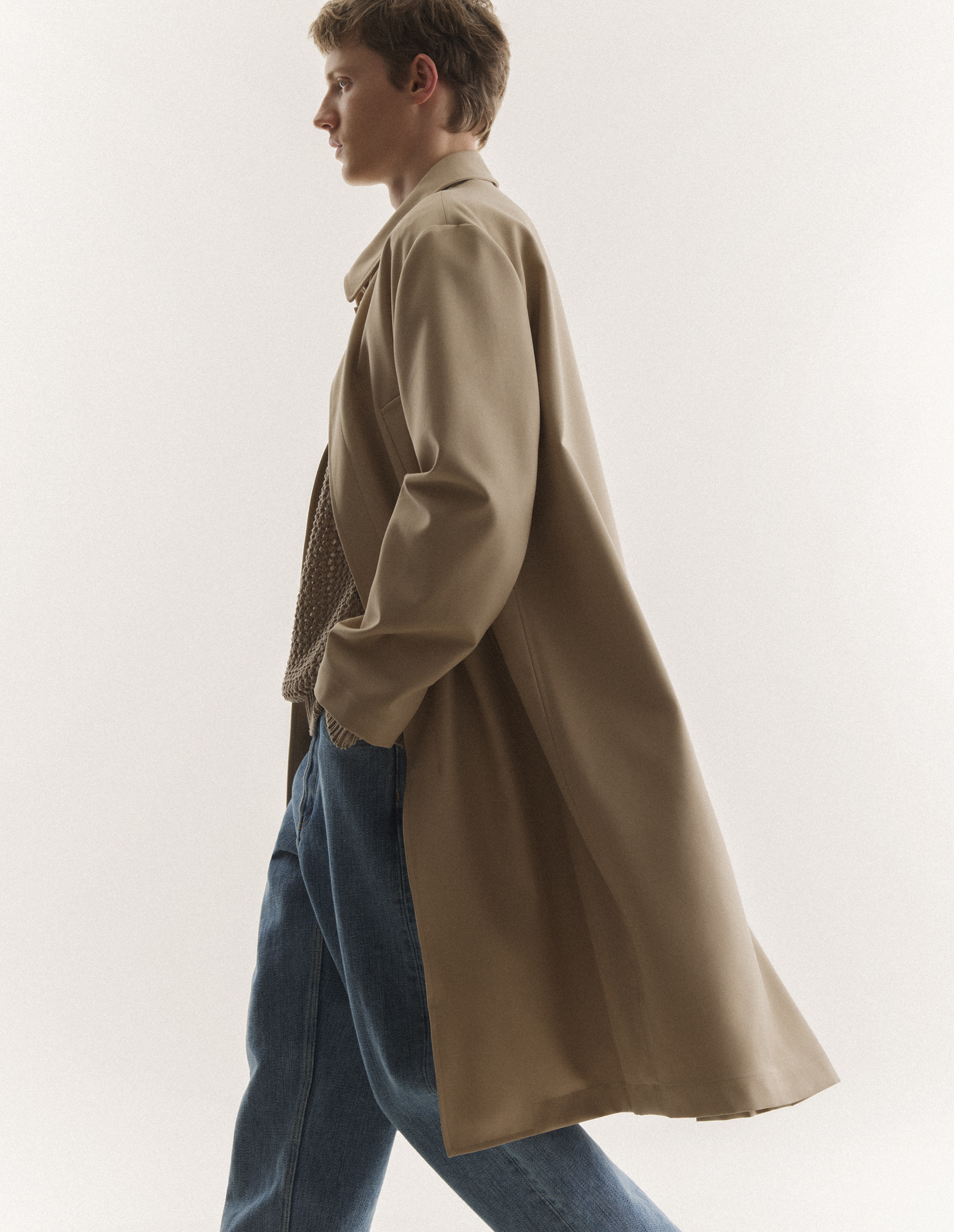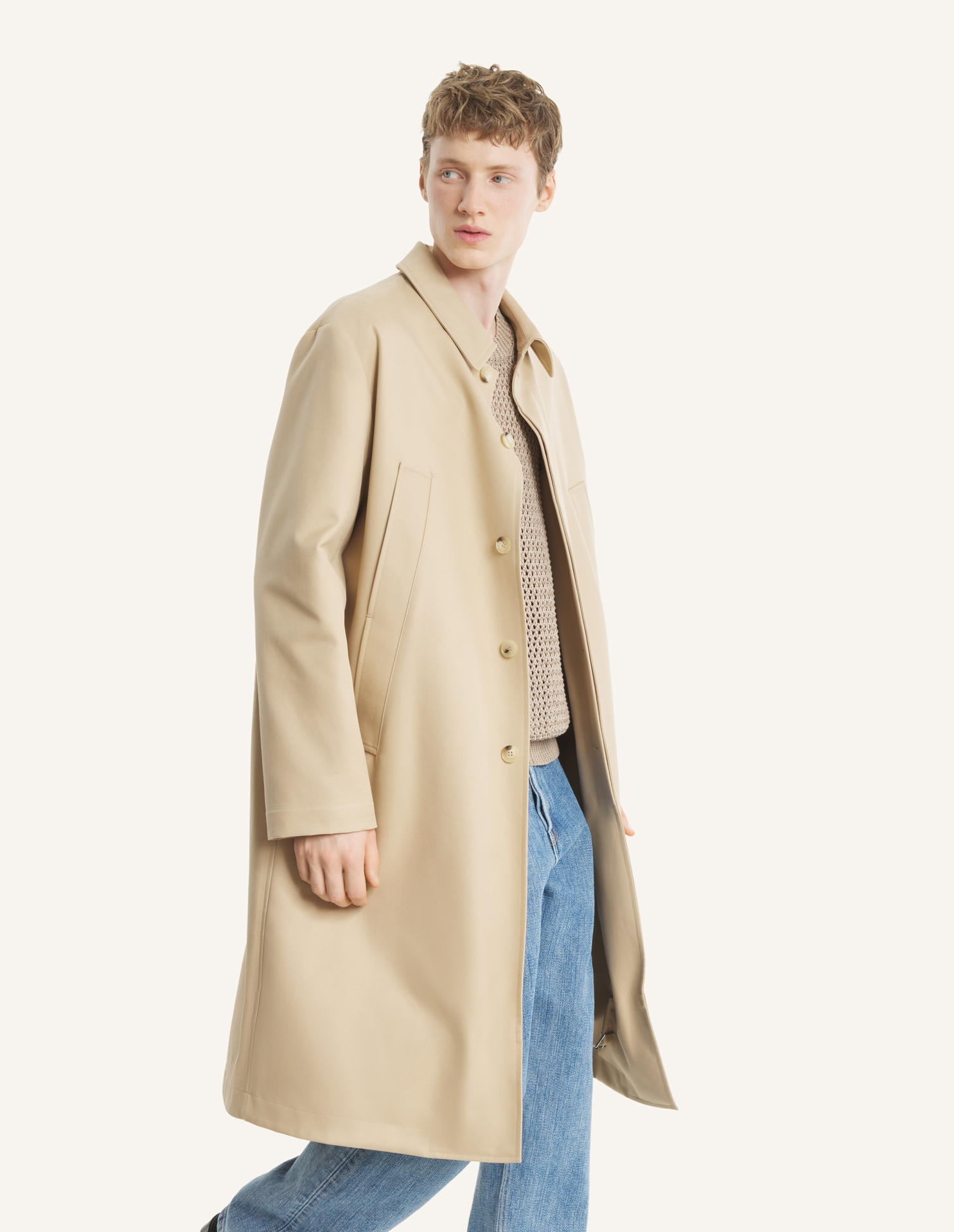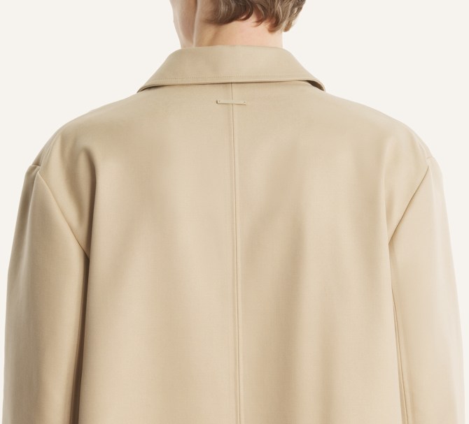 Confectionné dans un mélange de coton et soie déperlant, issu de l’un des plus prestigieux fabricants de tissus italiens, ce car coat double face se distingue par de multiples détails dissimulés qui viennent sublimer sa fonction.