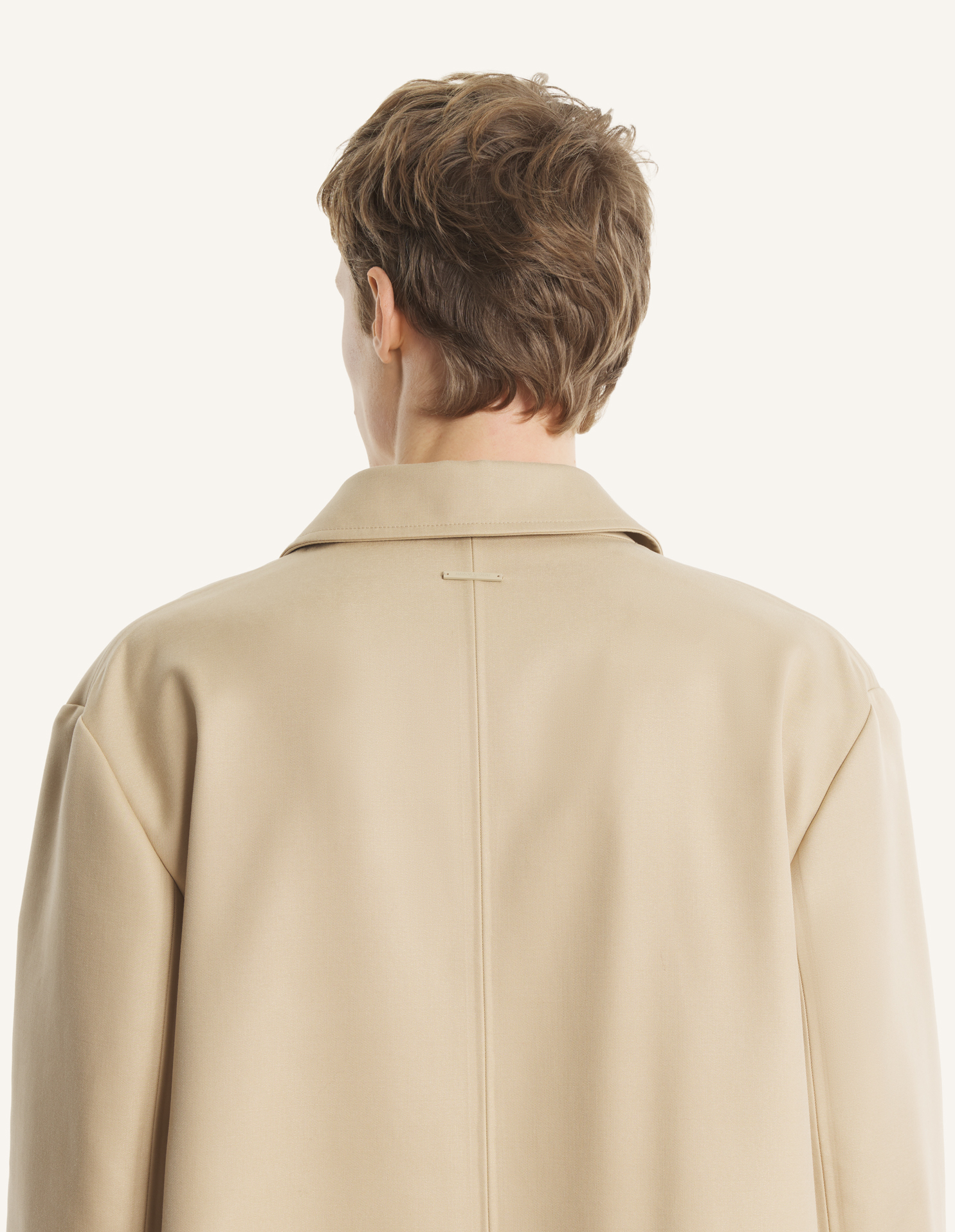 Car coat en sergé double face de soie mélangée. Coupe décontractée avec rivet en métal gravé Maison Kitsuné Paris à l'encolure dos.