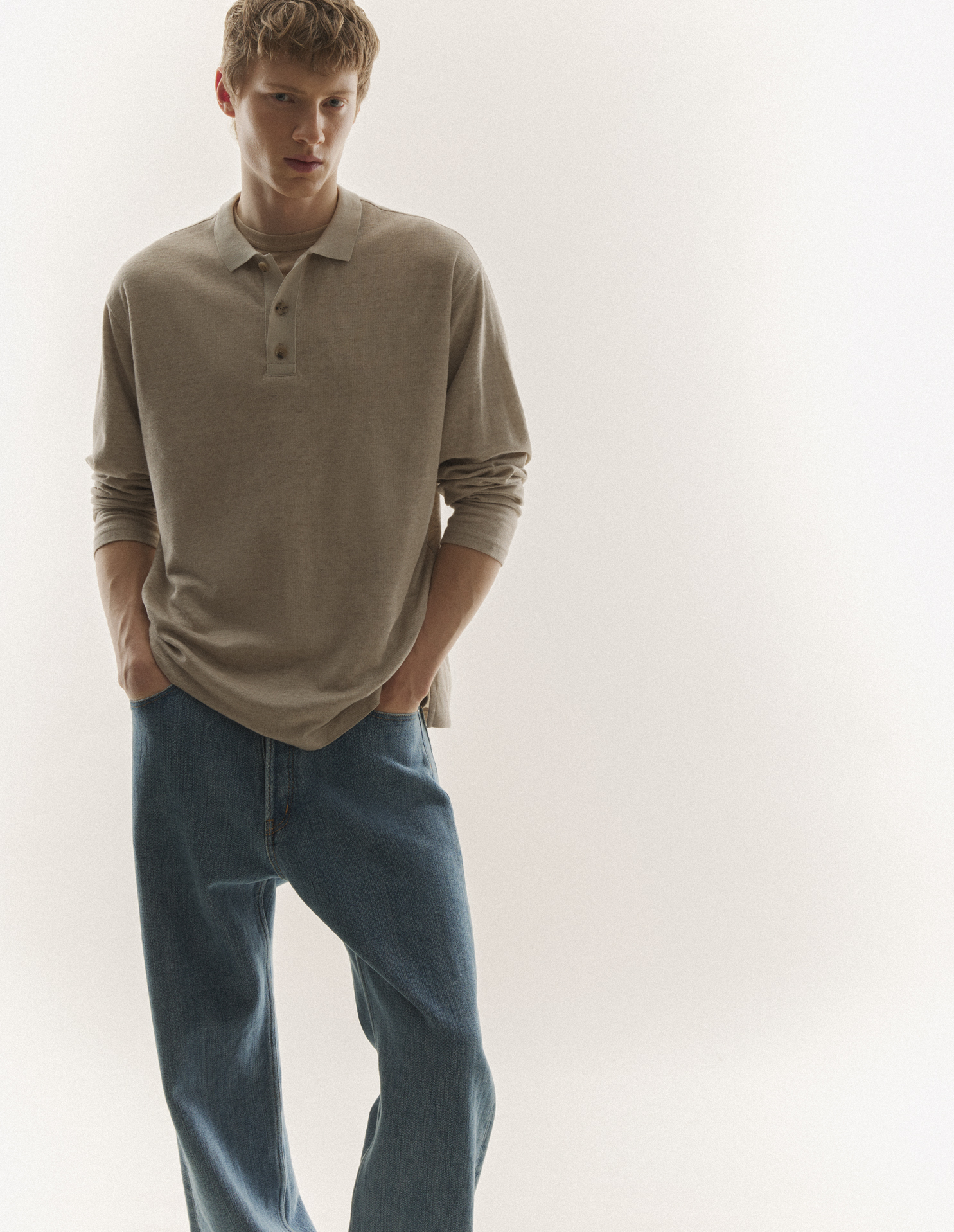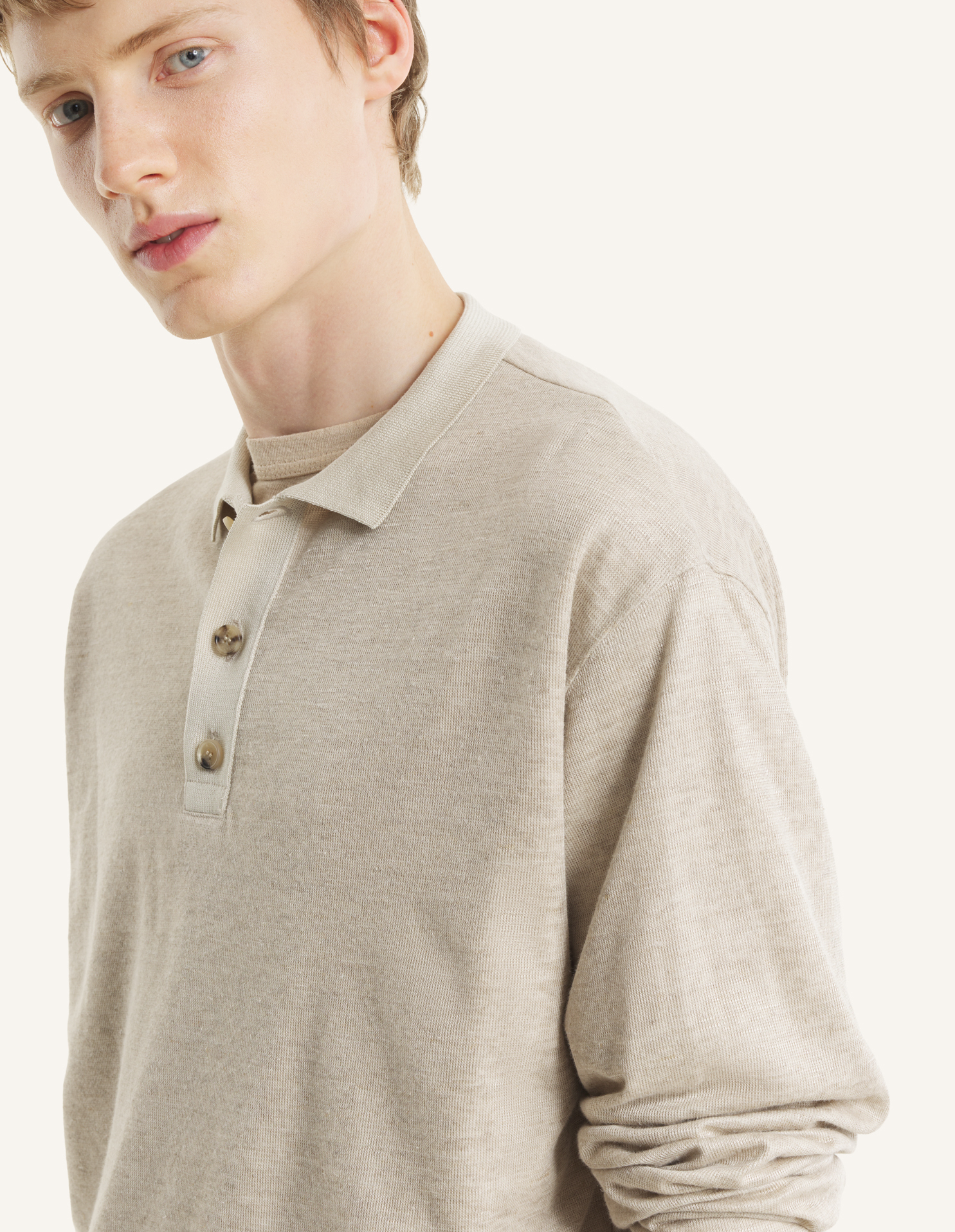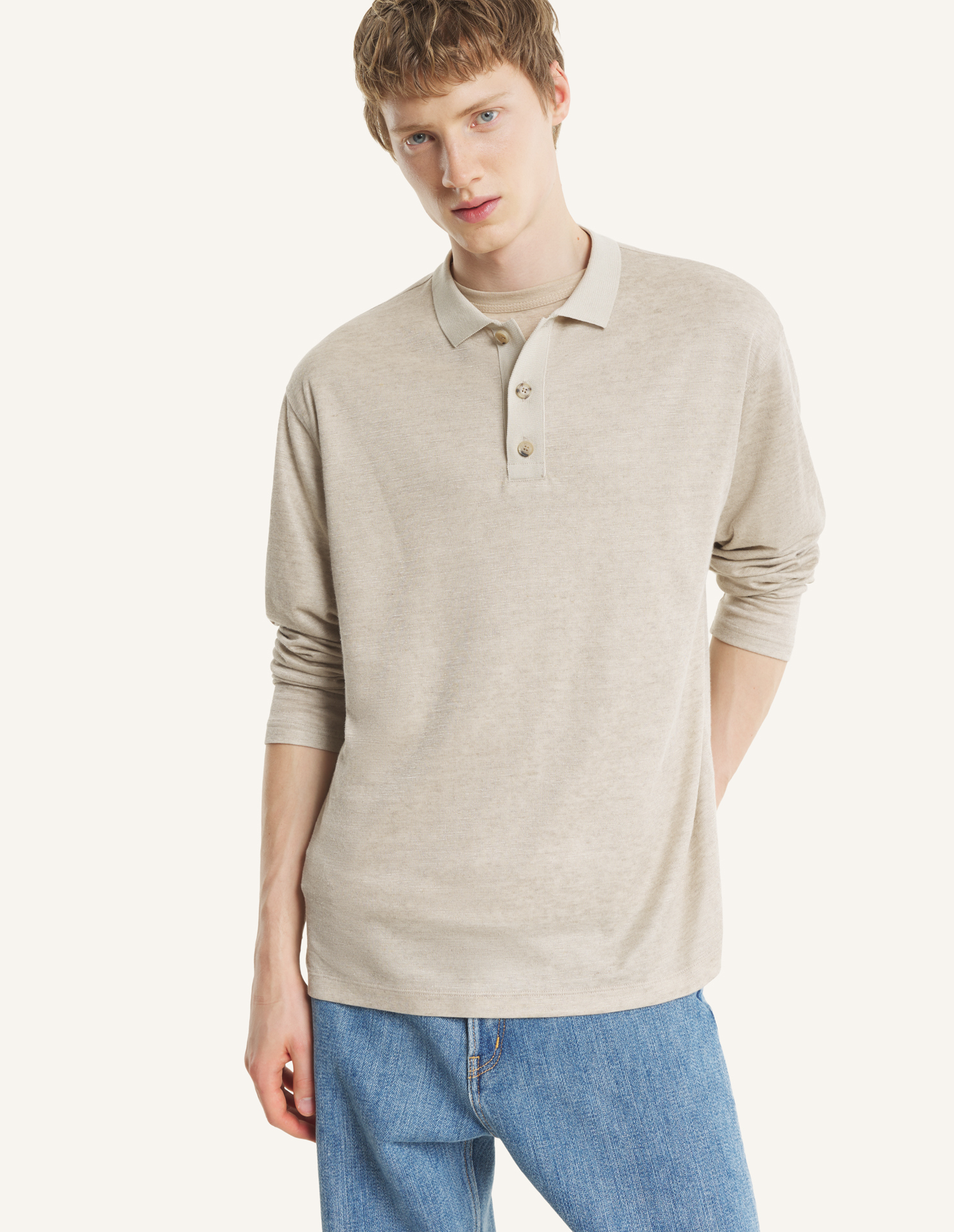 Sweatshirt polo en jersey double face de coton mercerisé et lin. Coupe oversize.