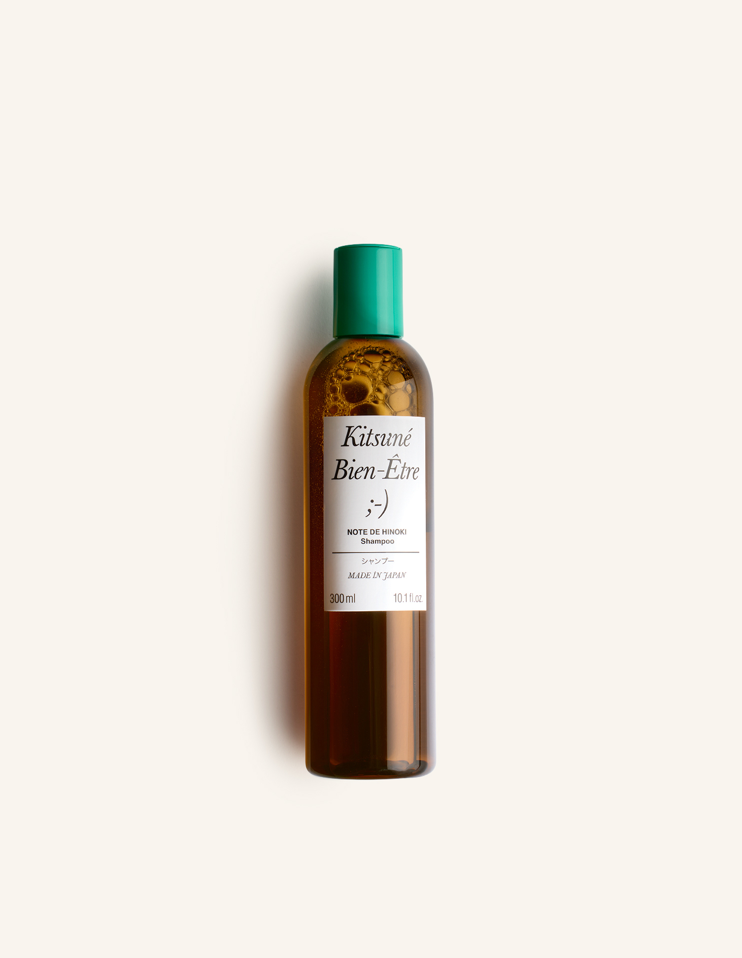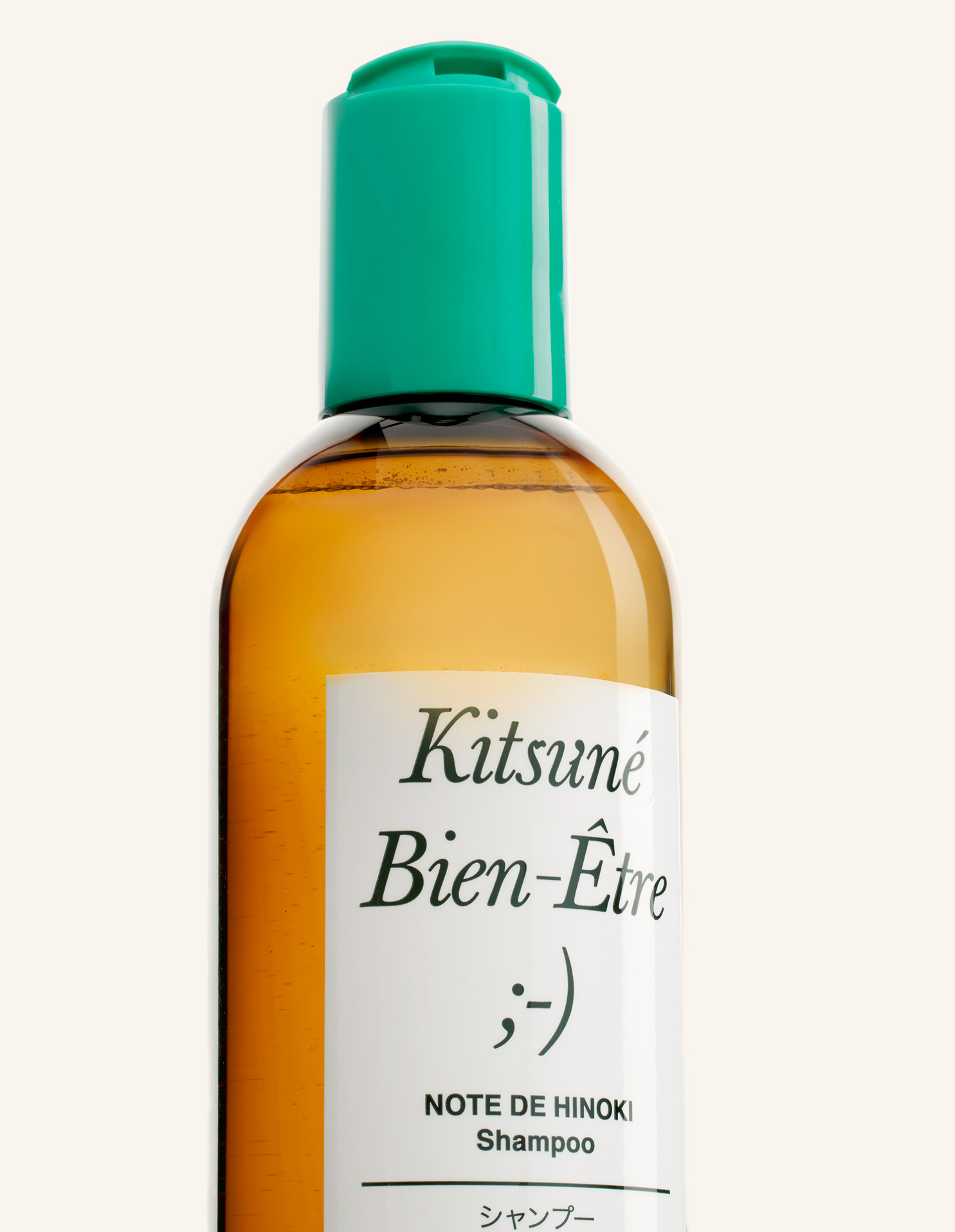 Kitsuné Bien-Être allie l'expertise japonaise en matière de soins de la peau et l'art français du parfum pour offrir une expérience sensorielle unique. Chaque produit est parfumé avec la signature olfactive Note de Hinoki, créée par le parfumeur Barnabé Fillion. Découvrez le shampoing revitalisant qui redonne éclat et douceur à vos cheveux. Sa formule unique nettoie en douceur tout en imprégnant les mèches du parfum élégant Note de Hinoki.