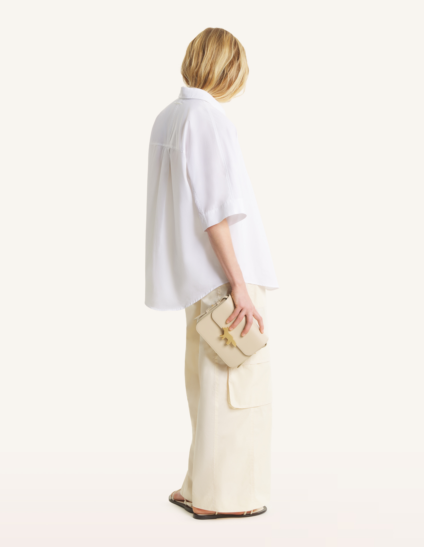 Chemise à manches courtes en popeline de coton. Étiquette tissée Maison Kitsuné Paris à lencolure dos.