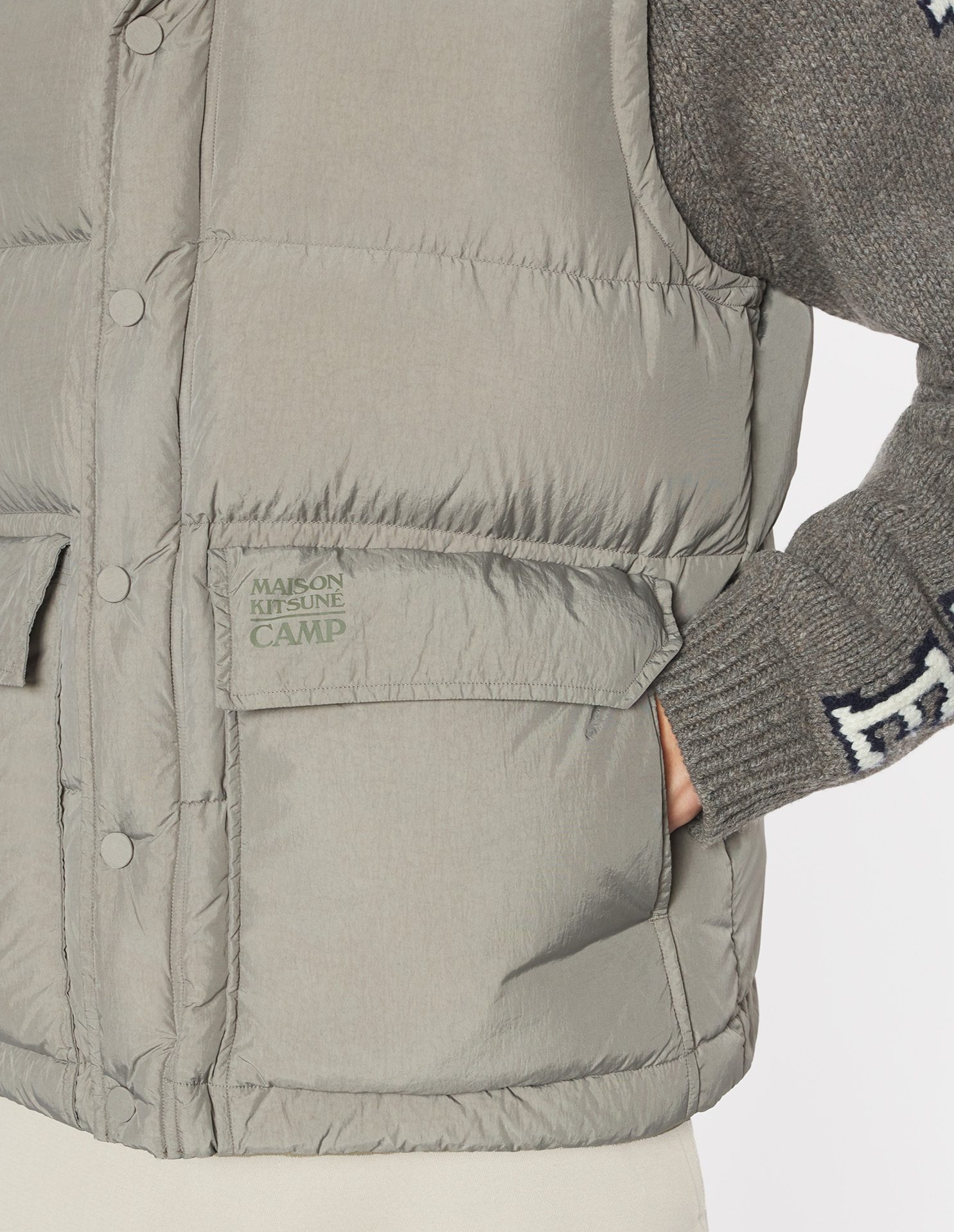 Doudoune sans manches en nylon léger. Coupe confort et signature Maison Kitsuné Camp.