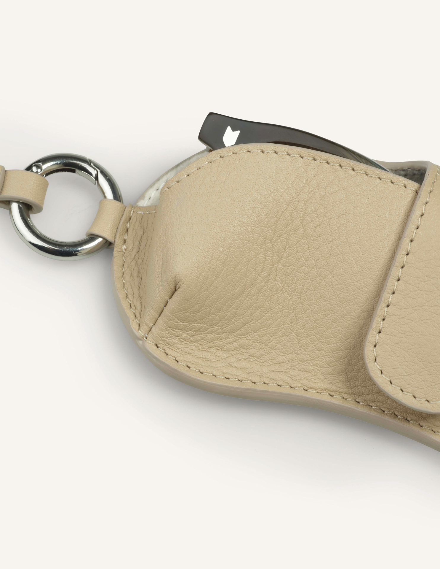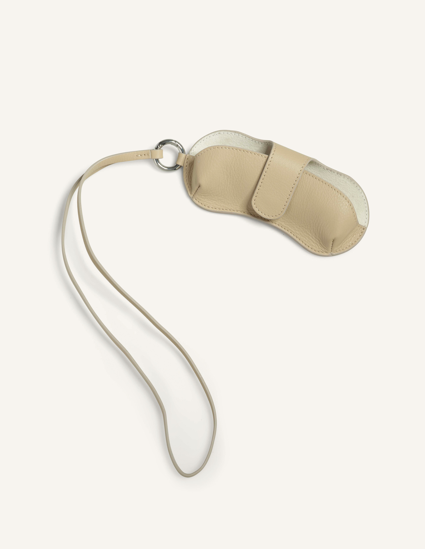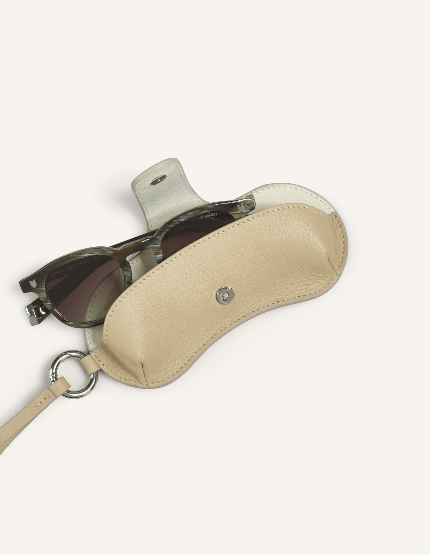 Etui pour lunettes de soleil en cuir lisse. Maison Kitsuné Paris embossé à l'arrière.