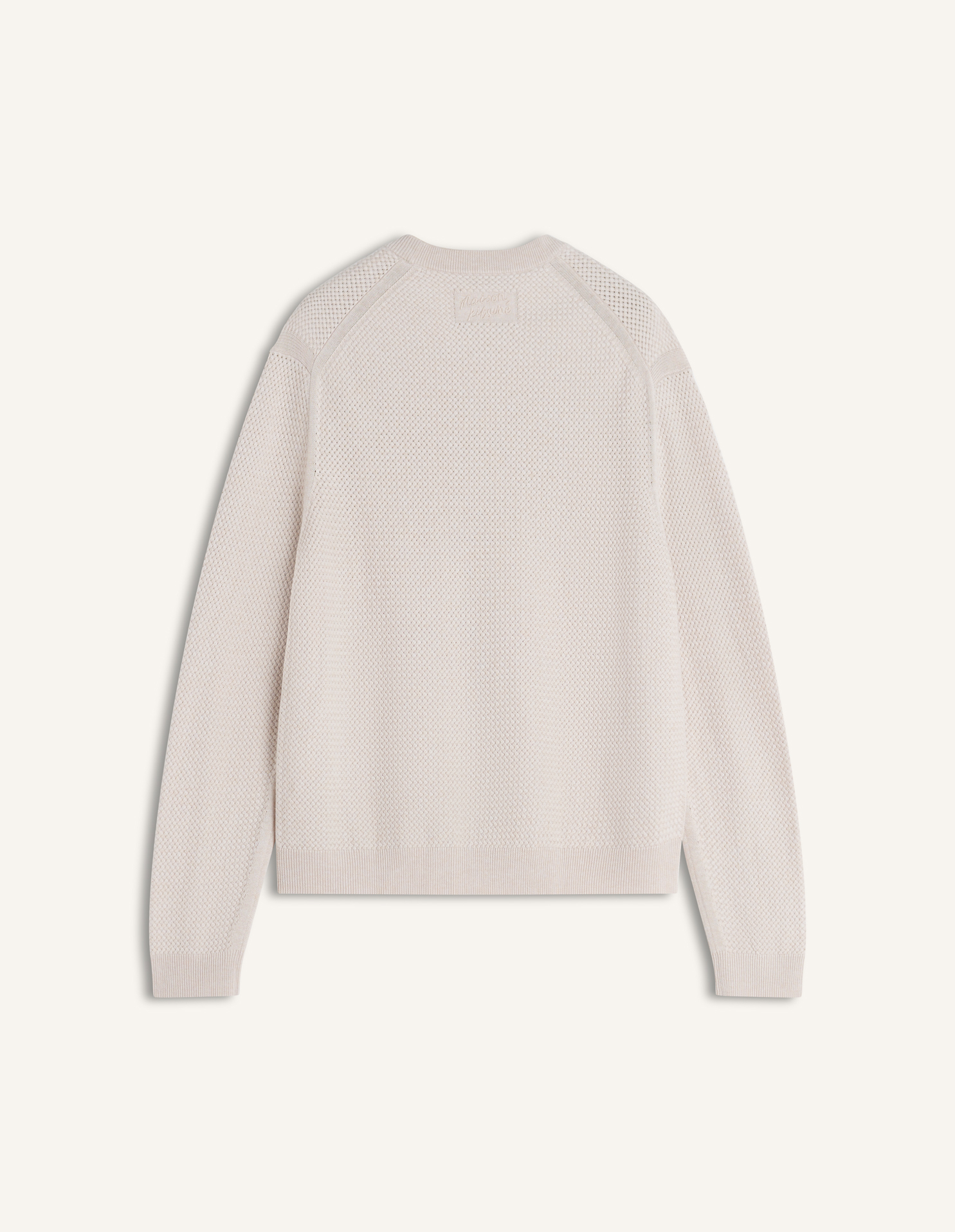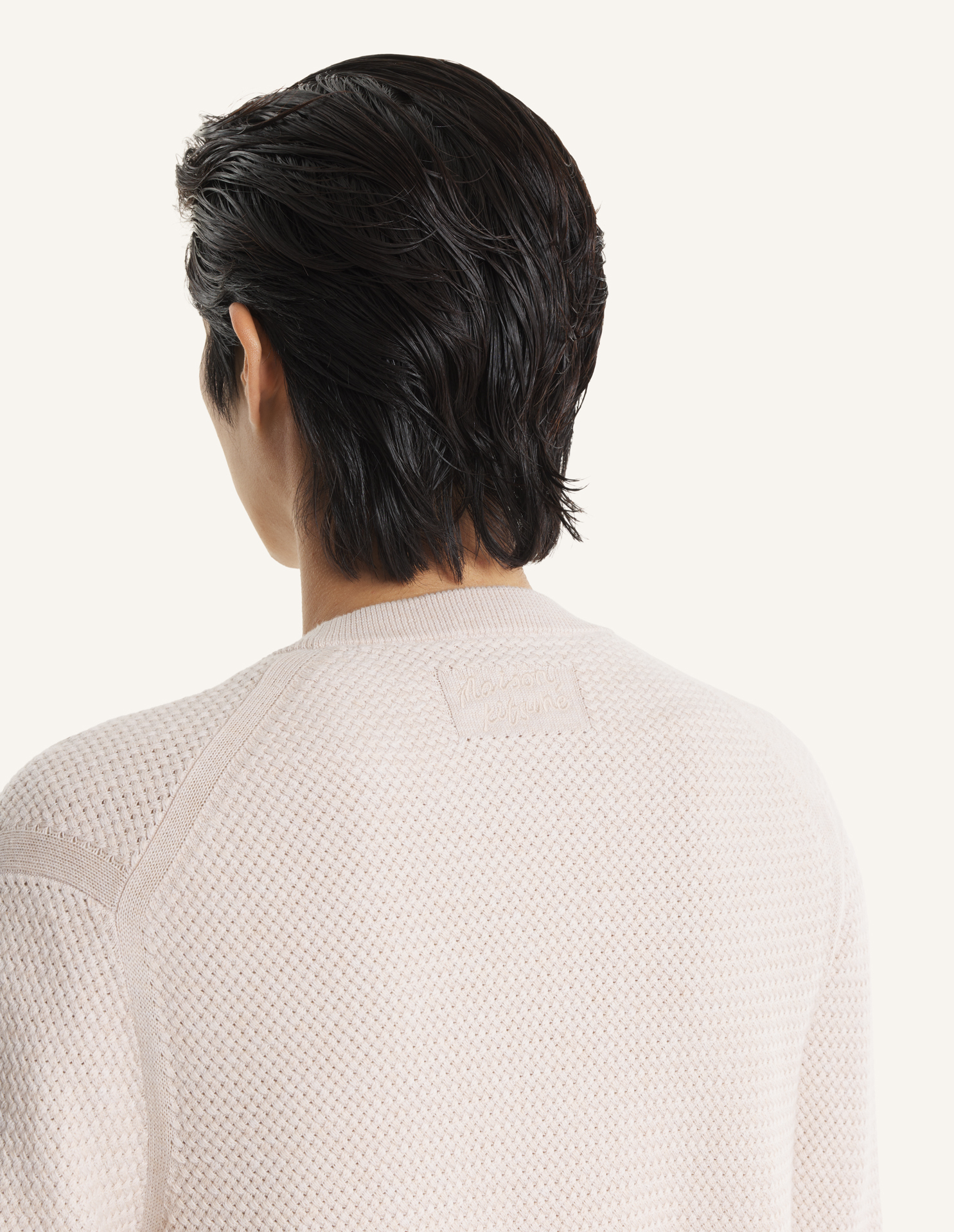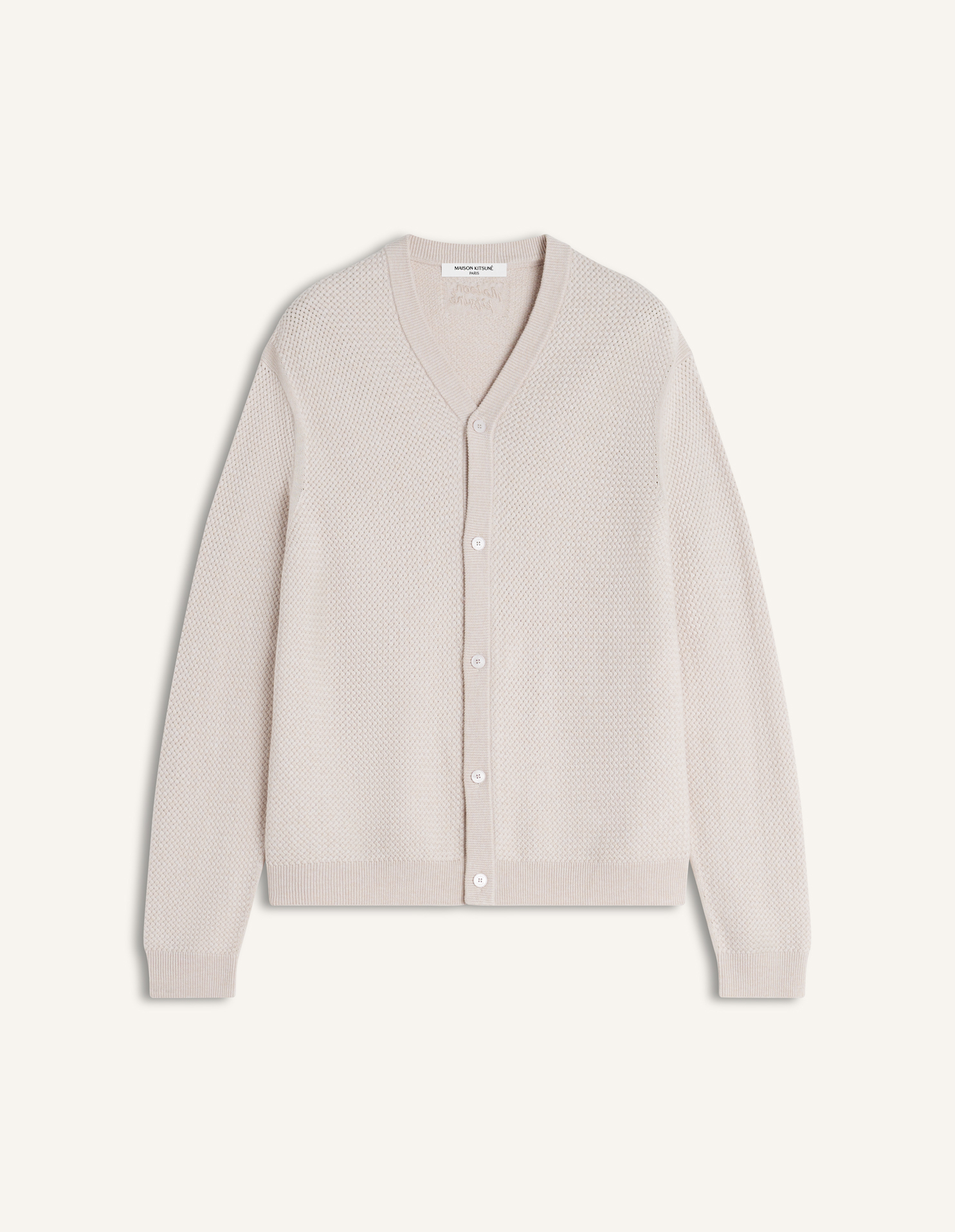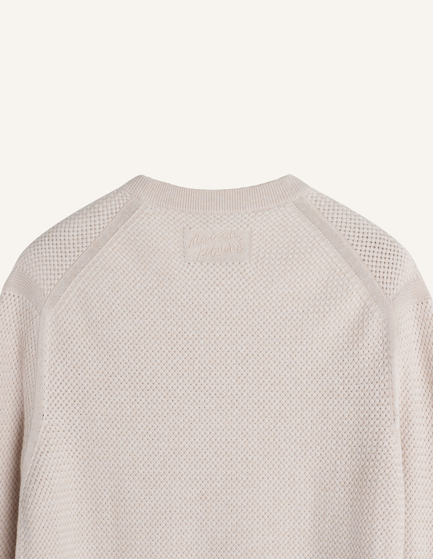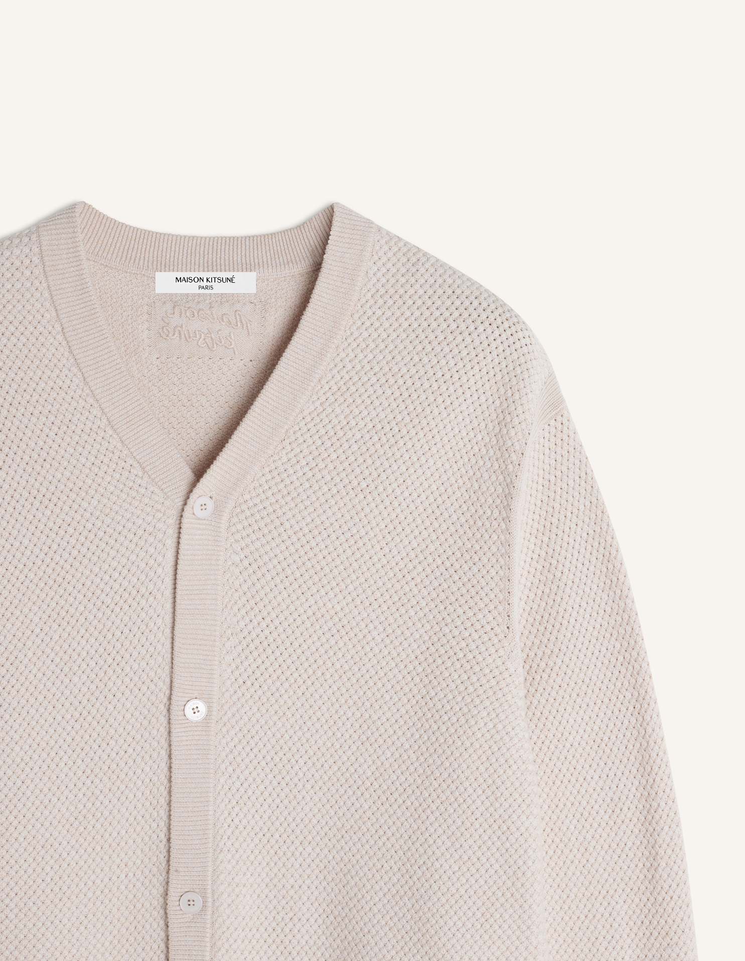 Cardigan en coton et laine mérinos texturés. Coupe confort avec broderie Maison Kitsuné Handwriting à l'encolure dos.