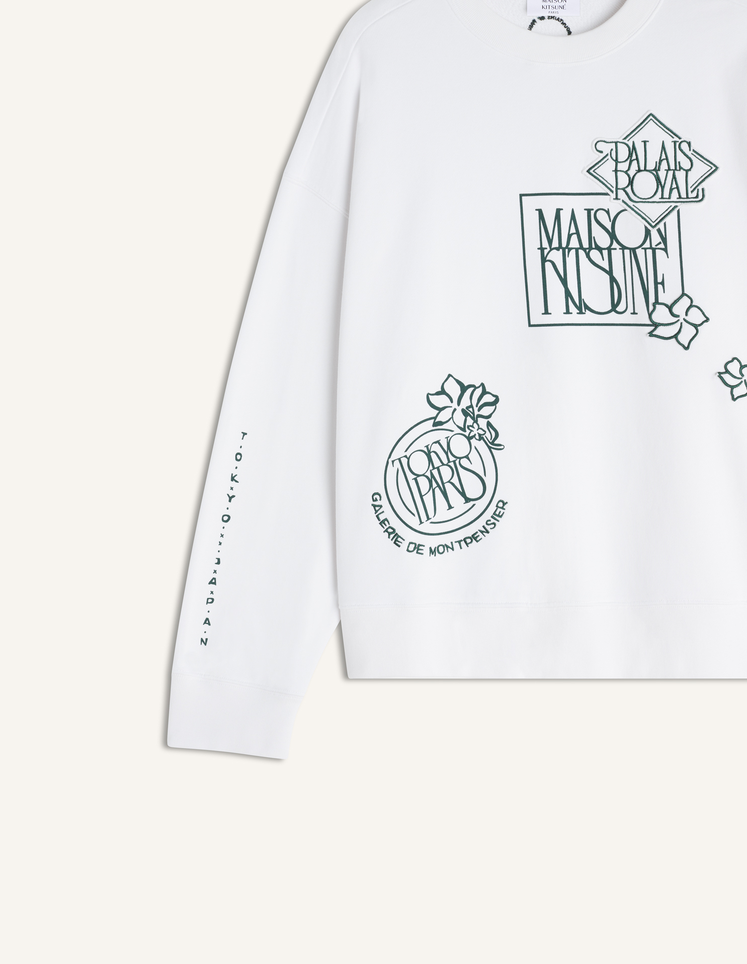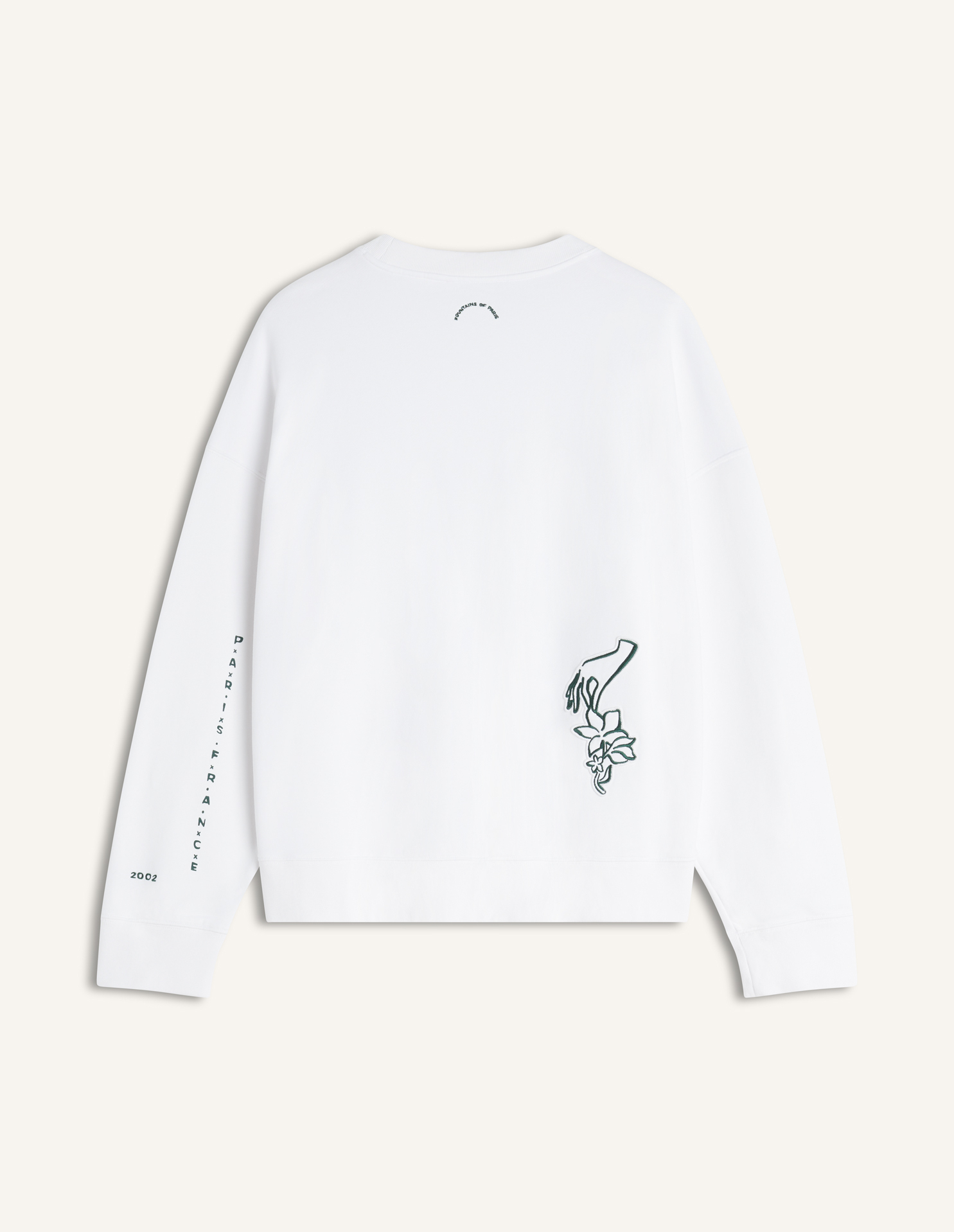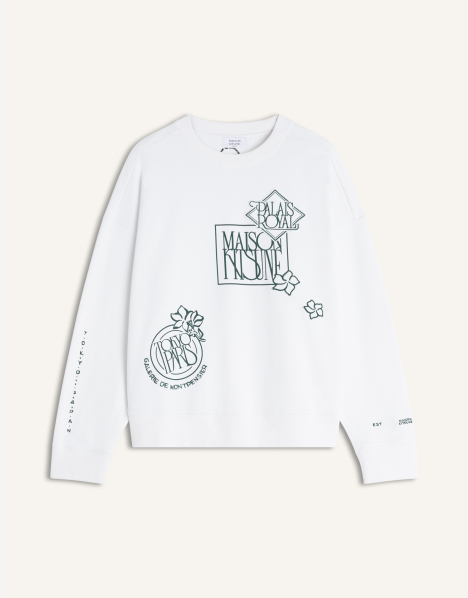 Oversize sweatshirt in cotton fleece. Art Nouveau Stamps embroidered and printed on the front and back.