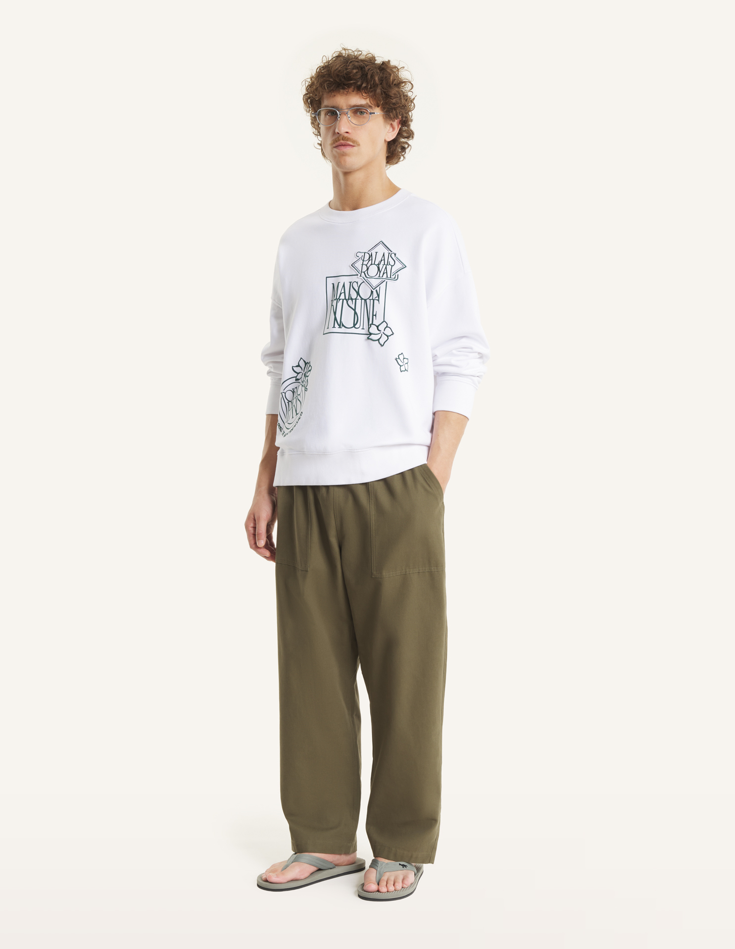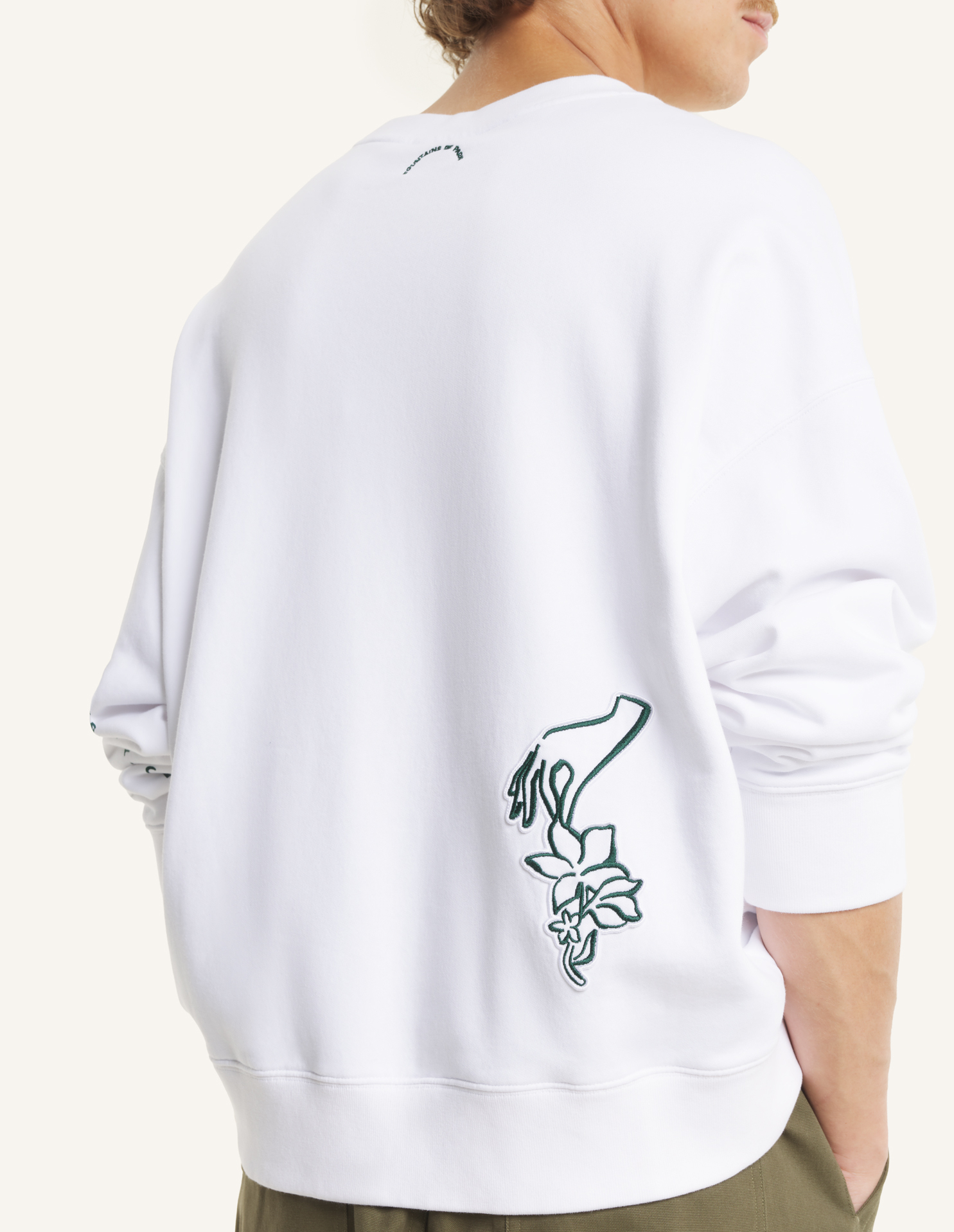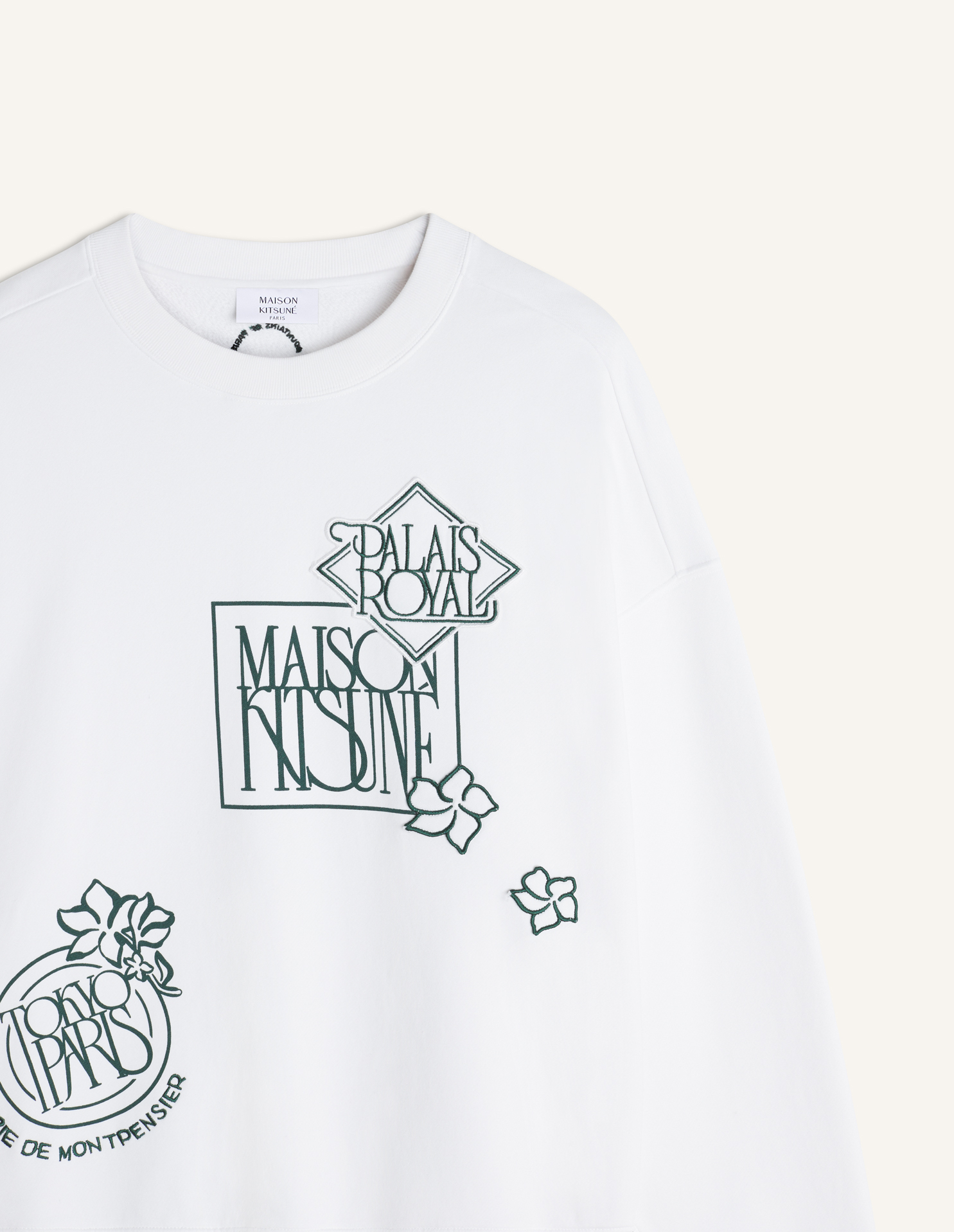 Oversize sweatshirt in cotton fleece. Art Nouveau Stamps embroidered and printed on the front and back.