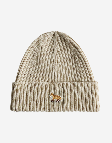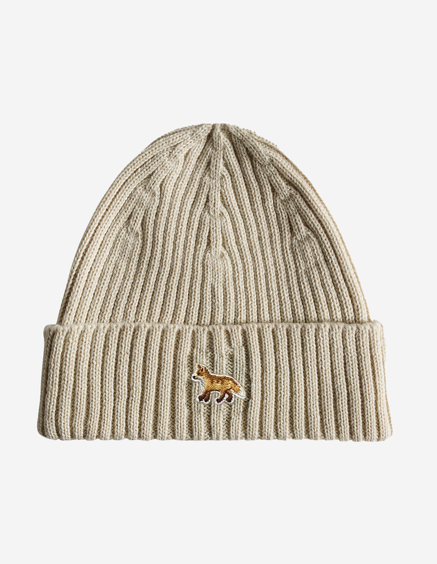 Cotton beanie with Baby Fox embroidered patch on the cuff.