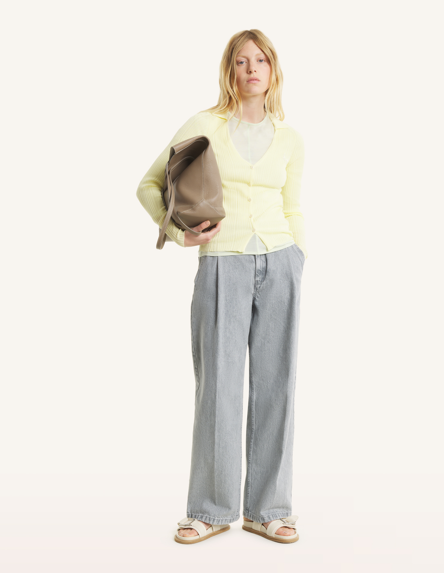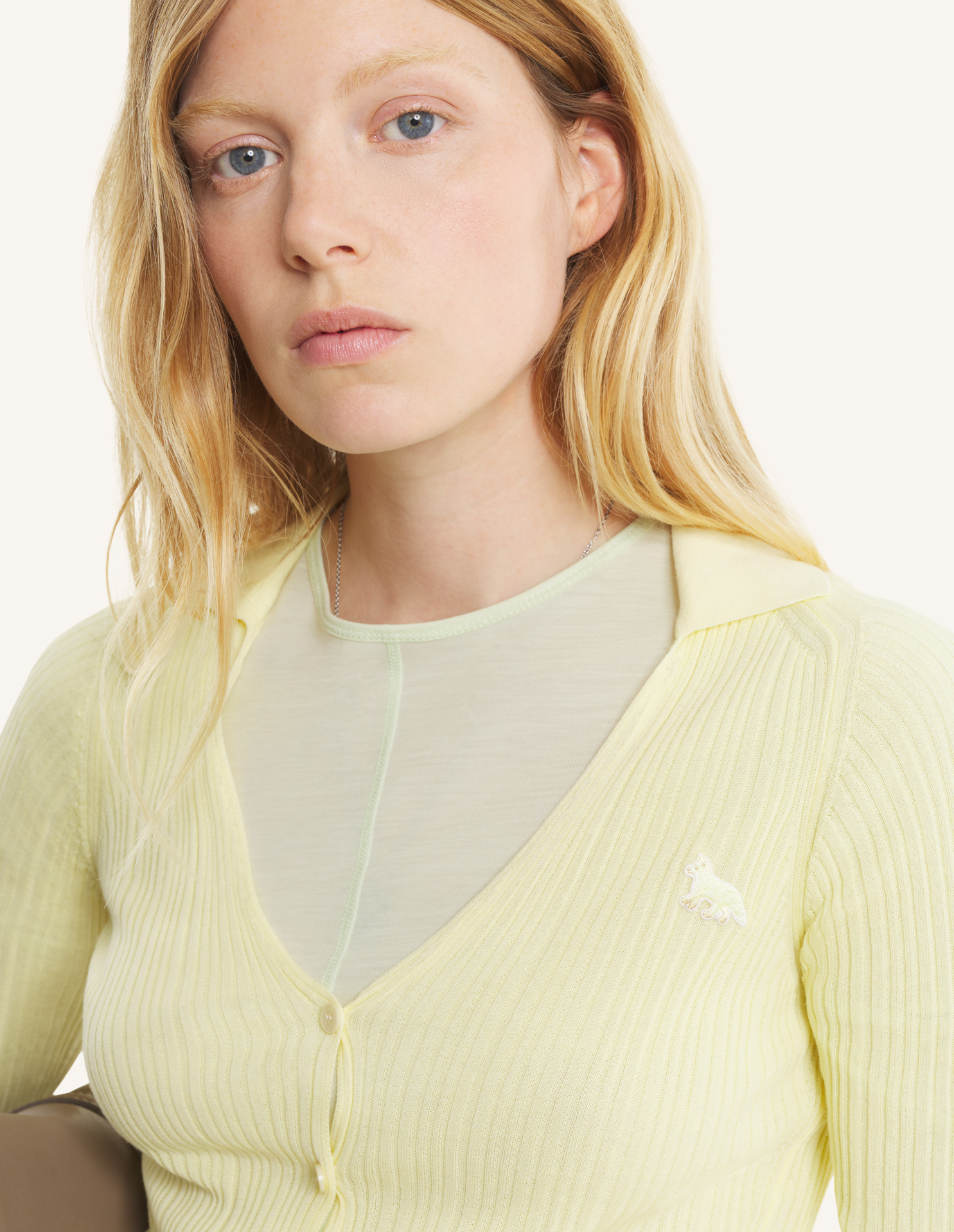 Cardigan in fine cotton blend rib. Fitted cut with Baby Fox embroidered patch on the chest.