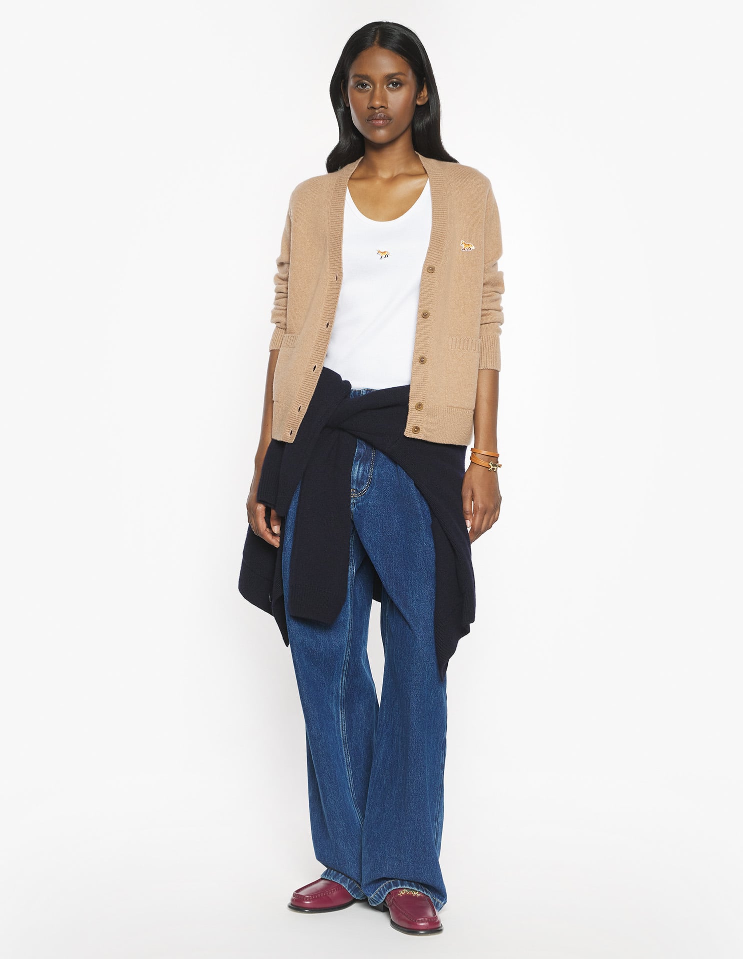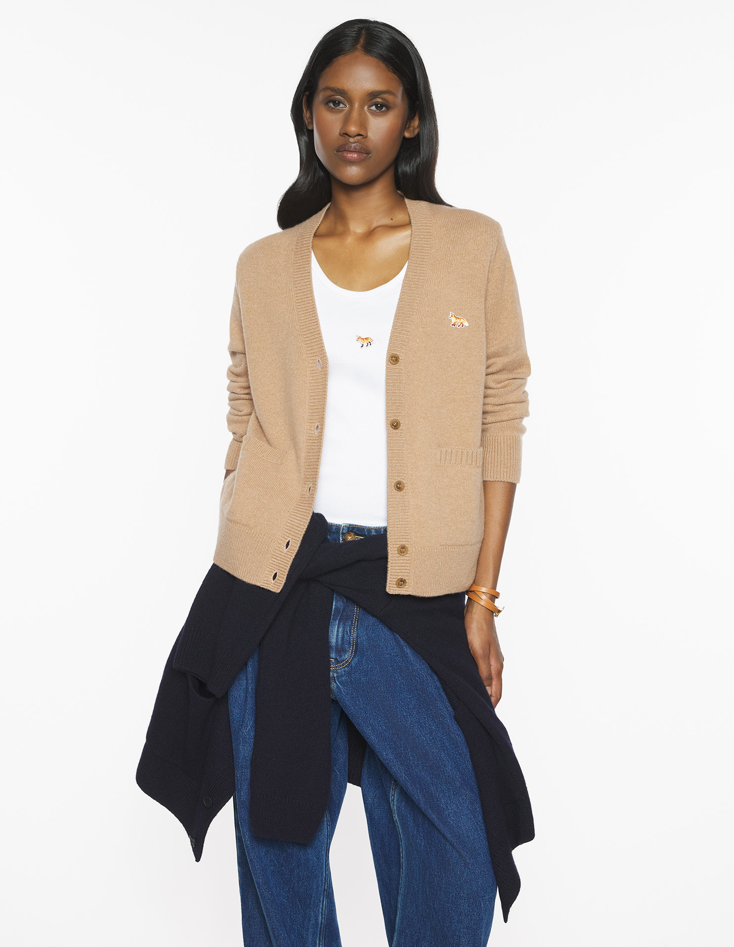 Lambswool cardigan. Boxy fit with Baby Fox embroidered patch.