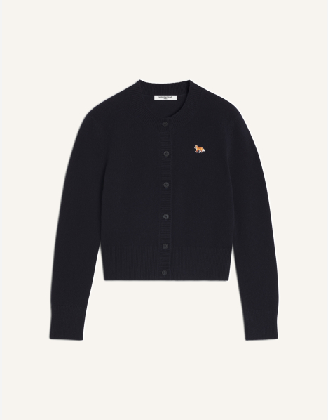 Lambswool cardigan. Fitted fit with Baby Fox embroidered patch.