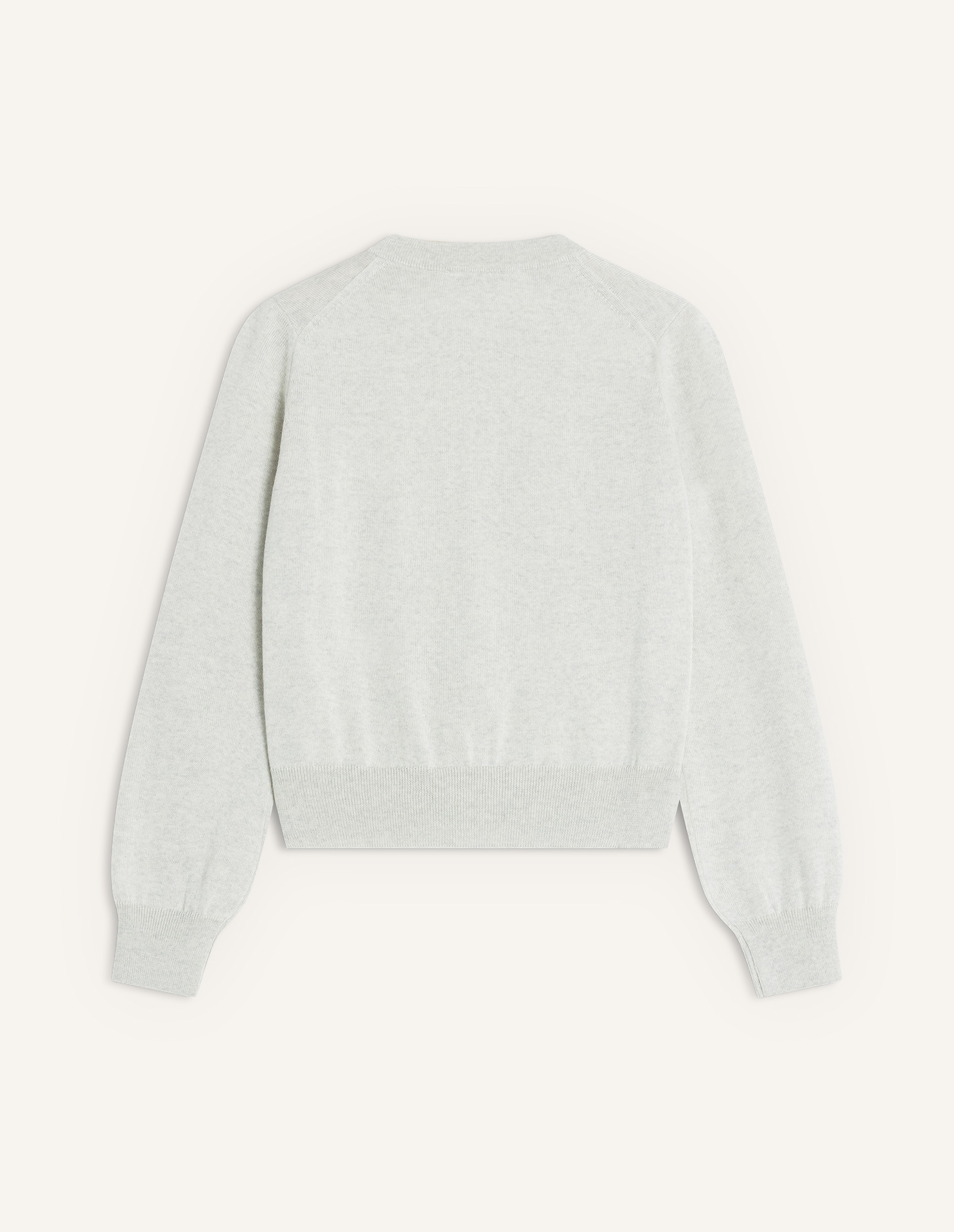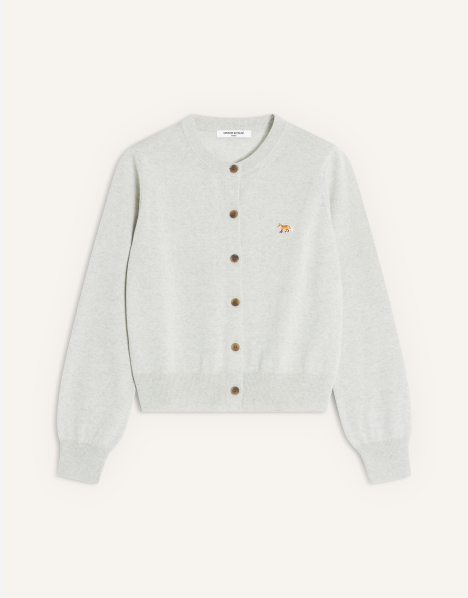Merino wool cardigan. Regular fit with Baby Fox embroidered patch on the chest.