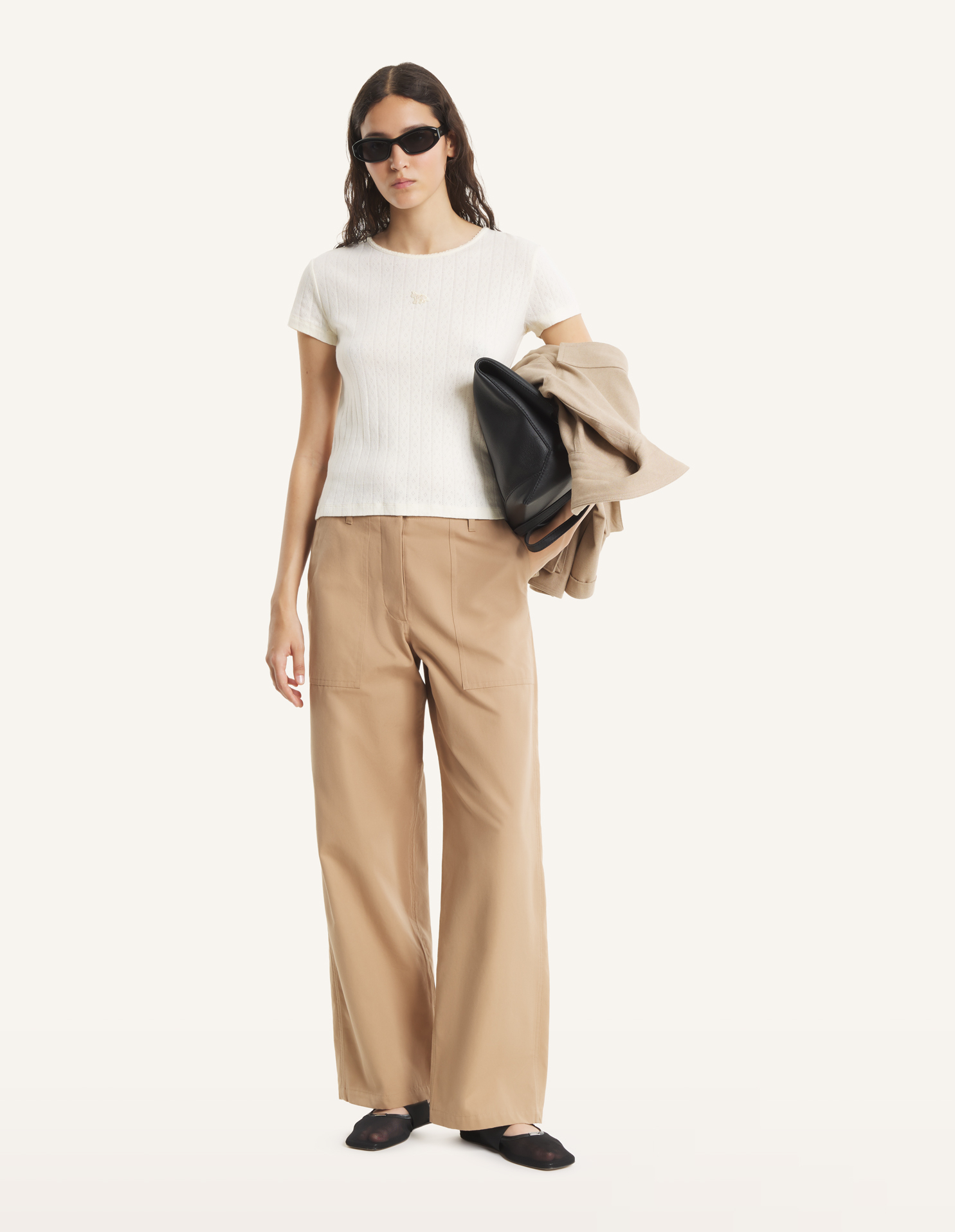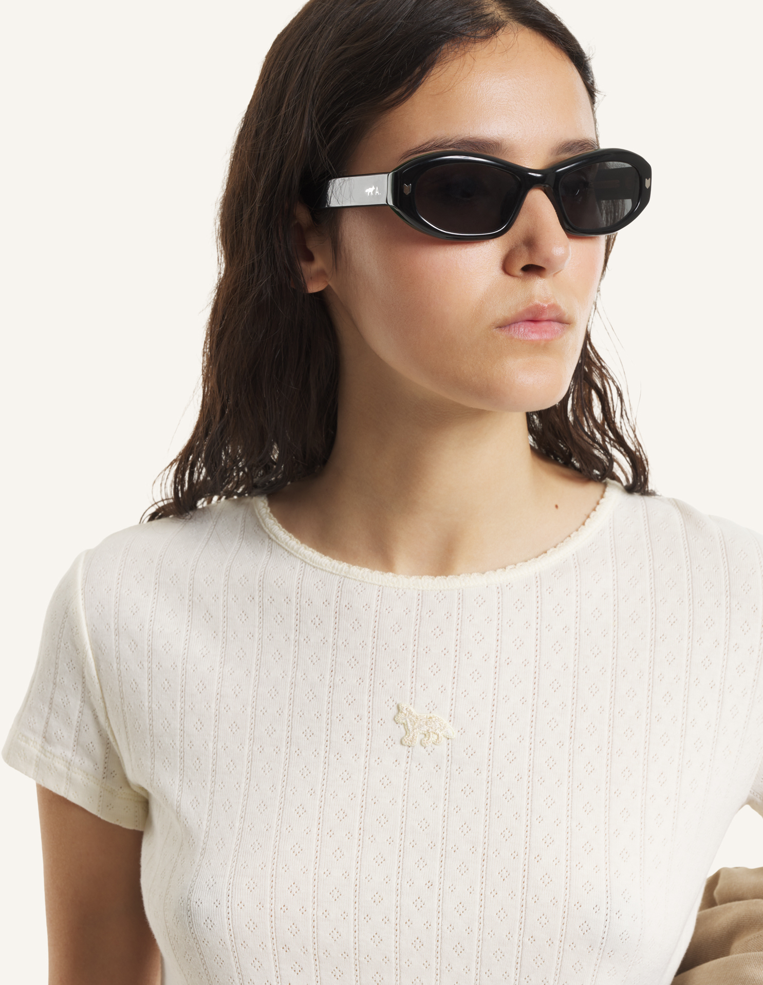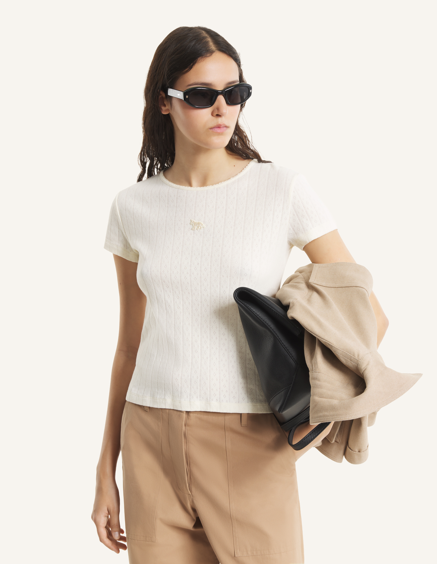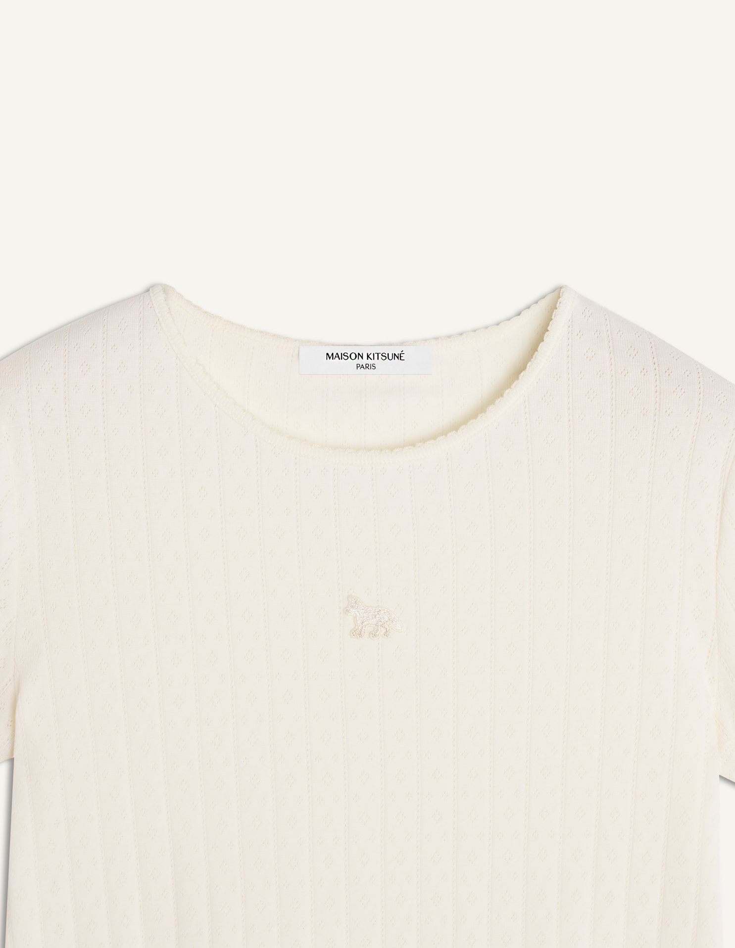 T-shirt in pointelle cotton jersey. Fitted cut with Baby Fox embroidered patch on the chest.