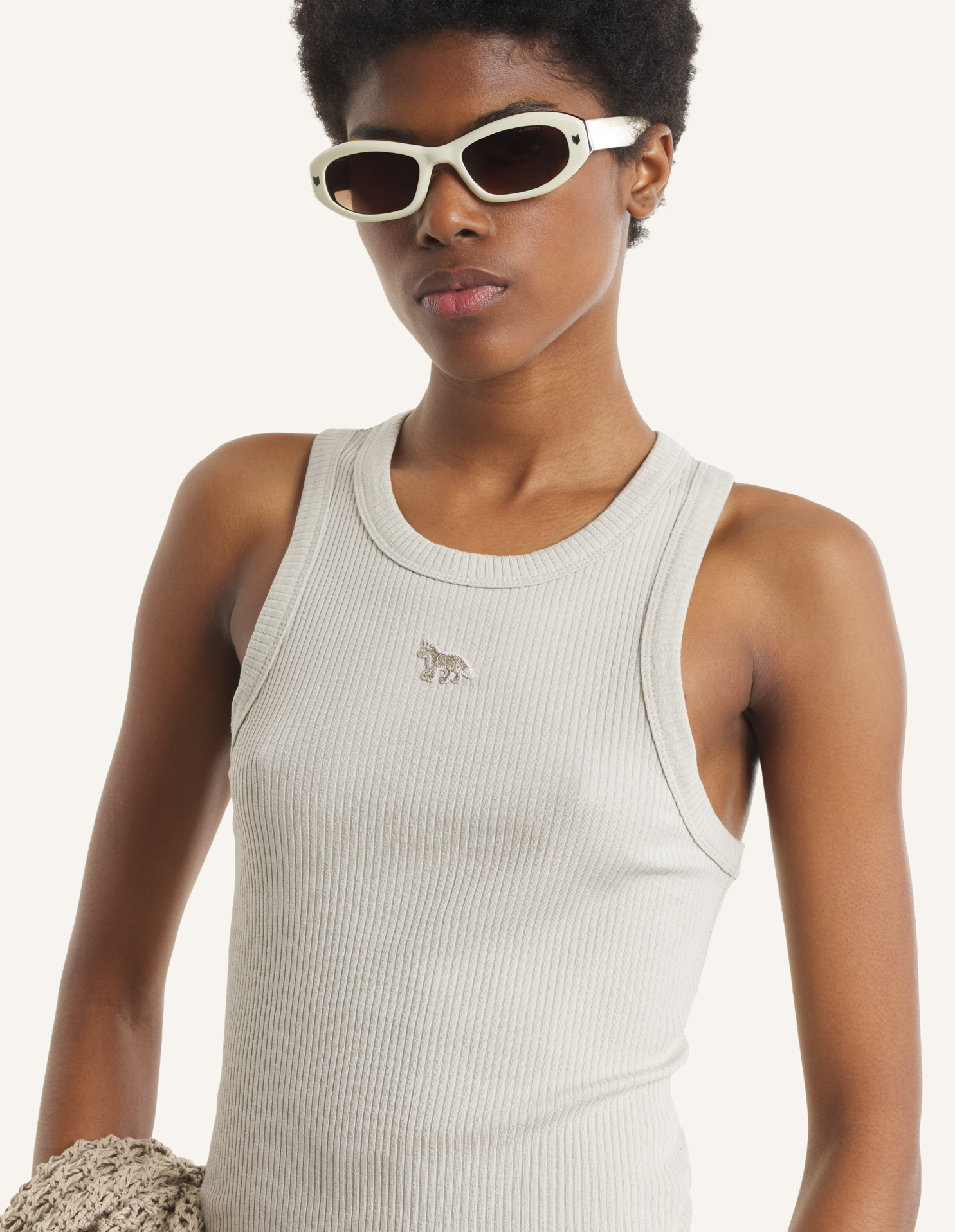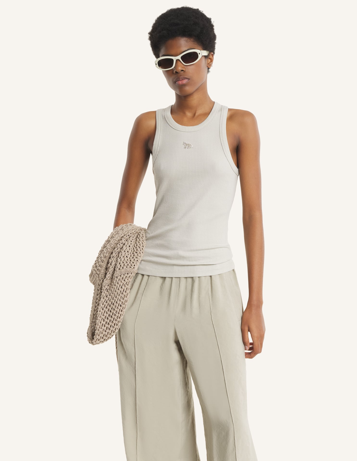 Tank top in refined rib. Fitted cut with Baby Fox embroidered patch on the chest.