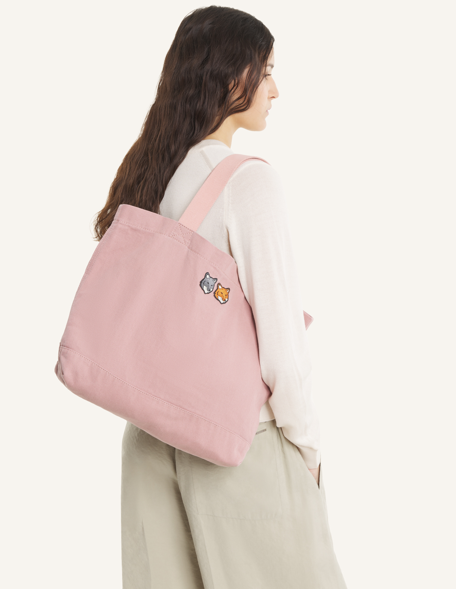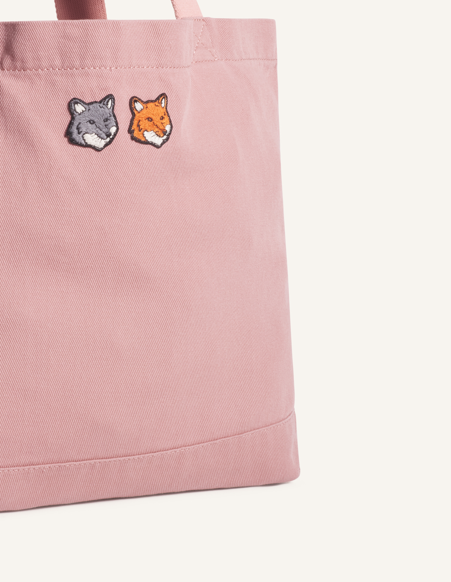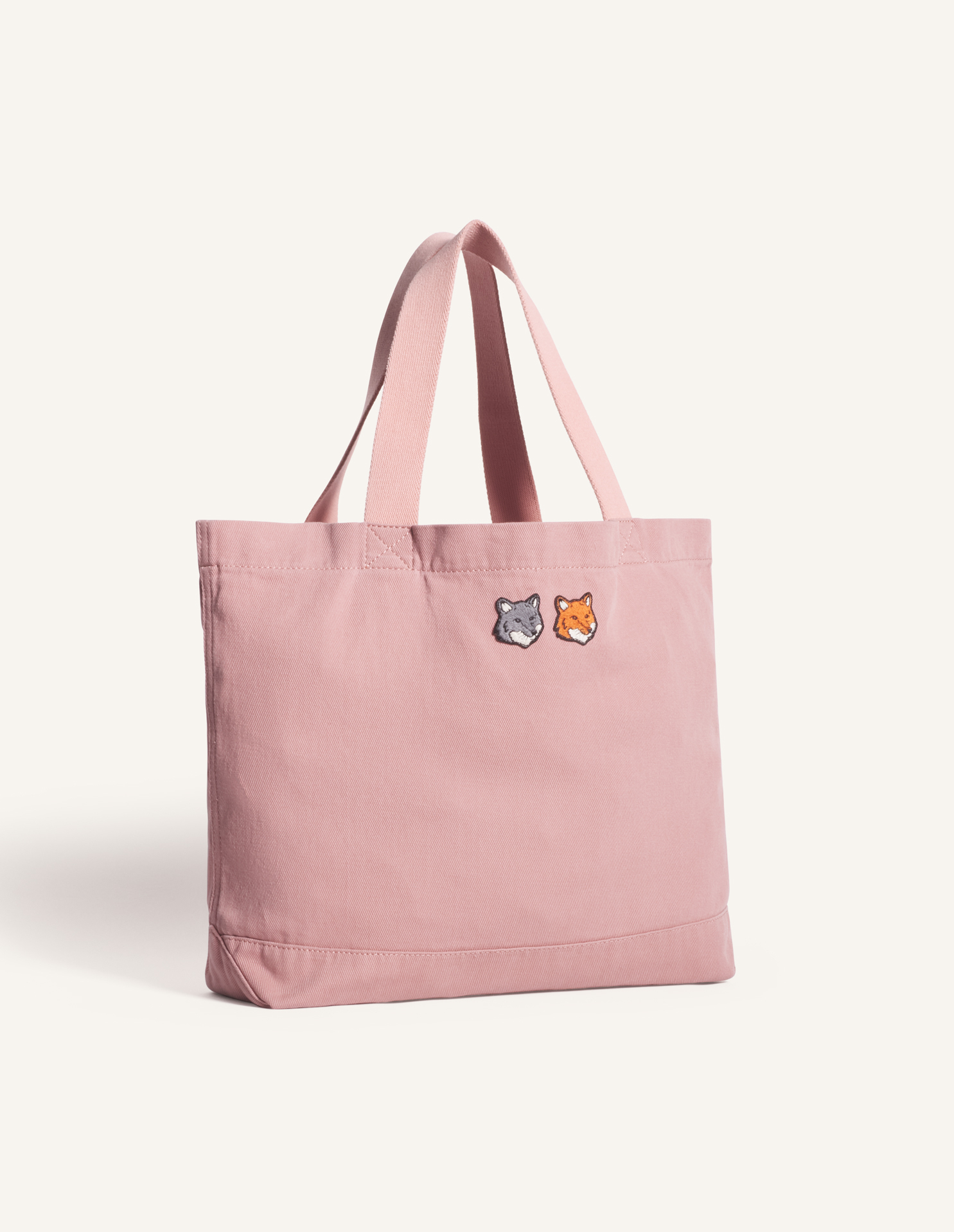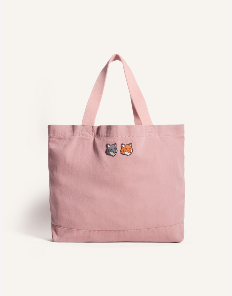 Tote bag in faded cotton canvas. Double Fox Head embroidered patches on the front.