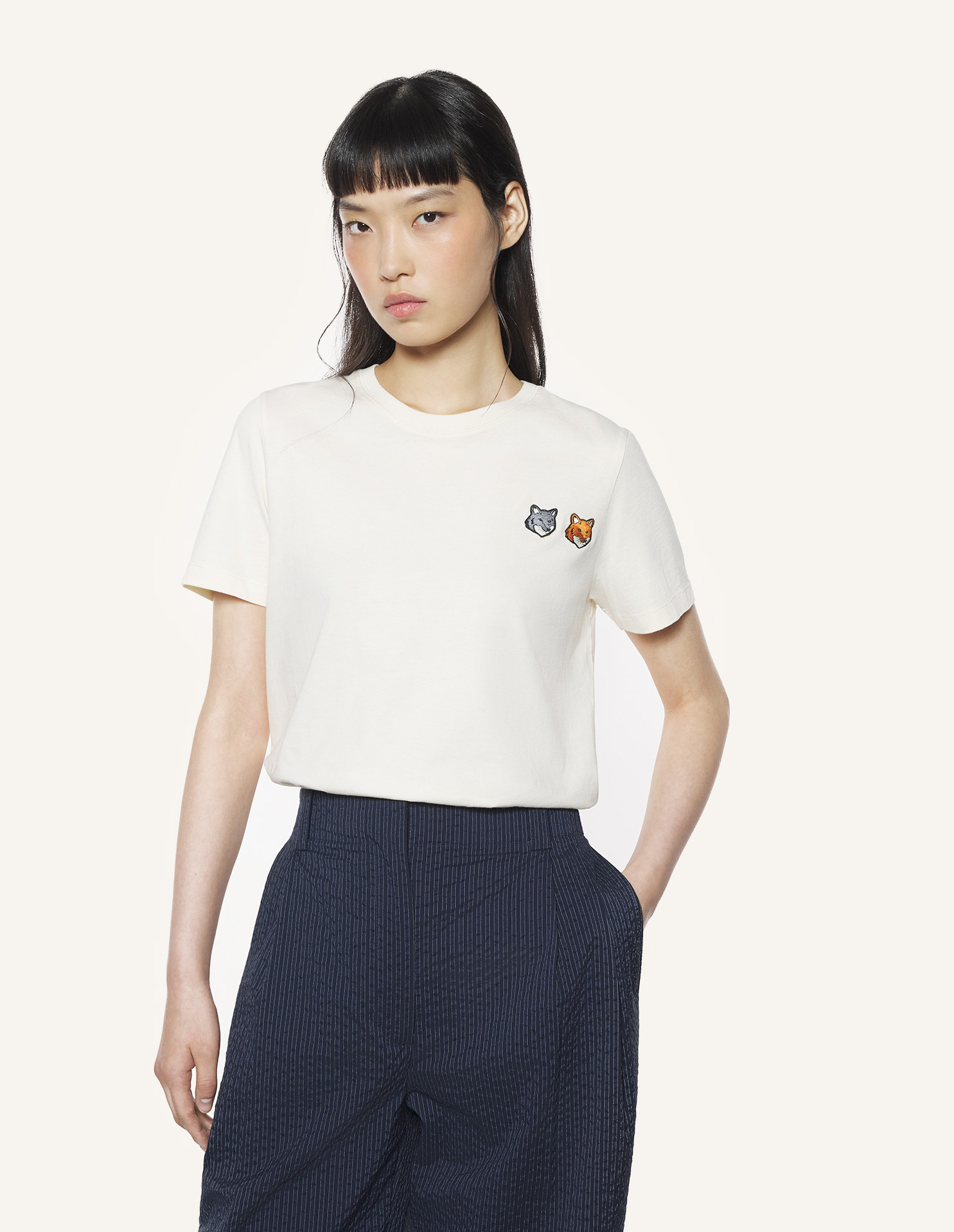 T-shirt in classic cotton jersey (180g). Regular fit with Double Fox Head embroidered patches on the chest.