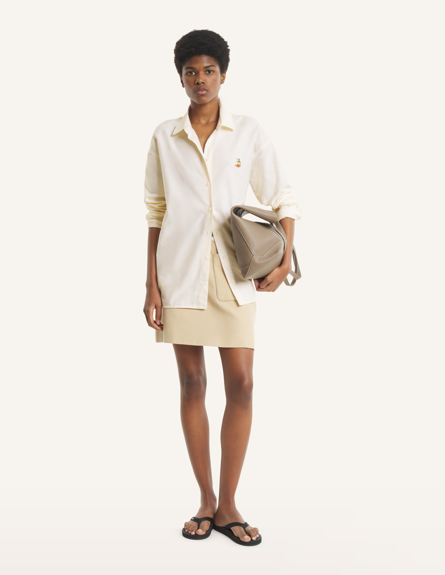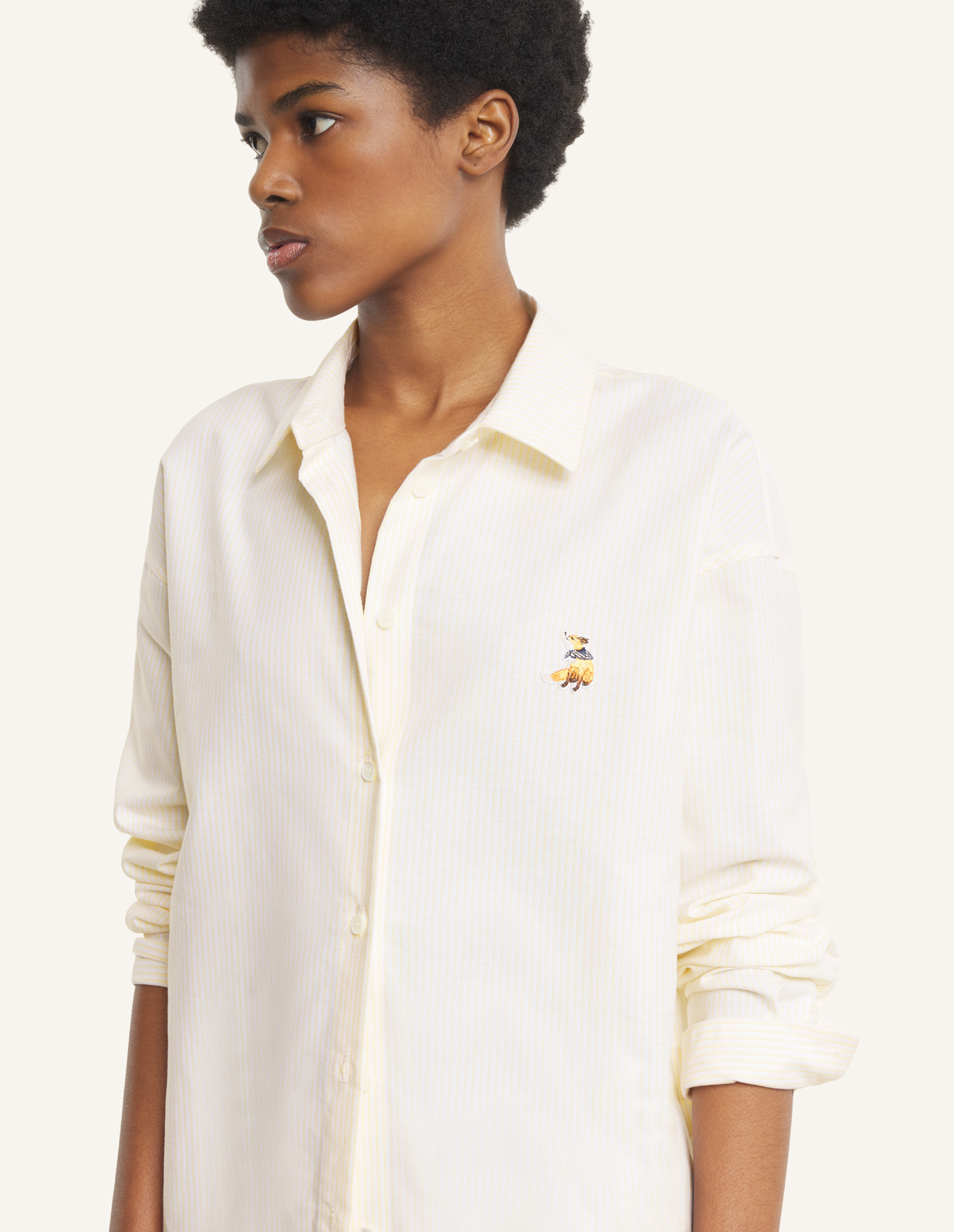 Casual shirt in striped oxford cotton. Dreaming Fox embroidered patch on the chest.